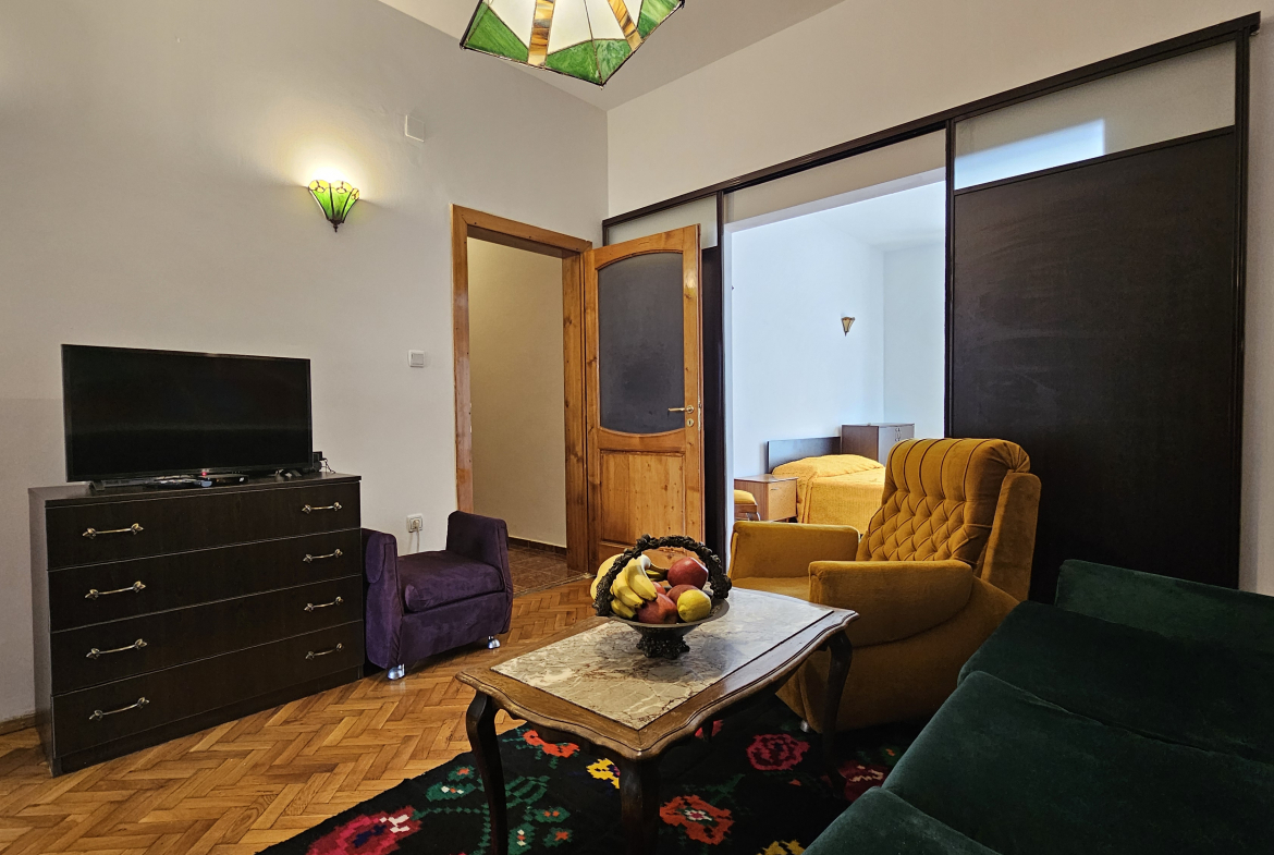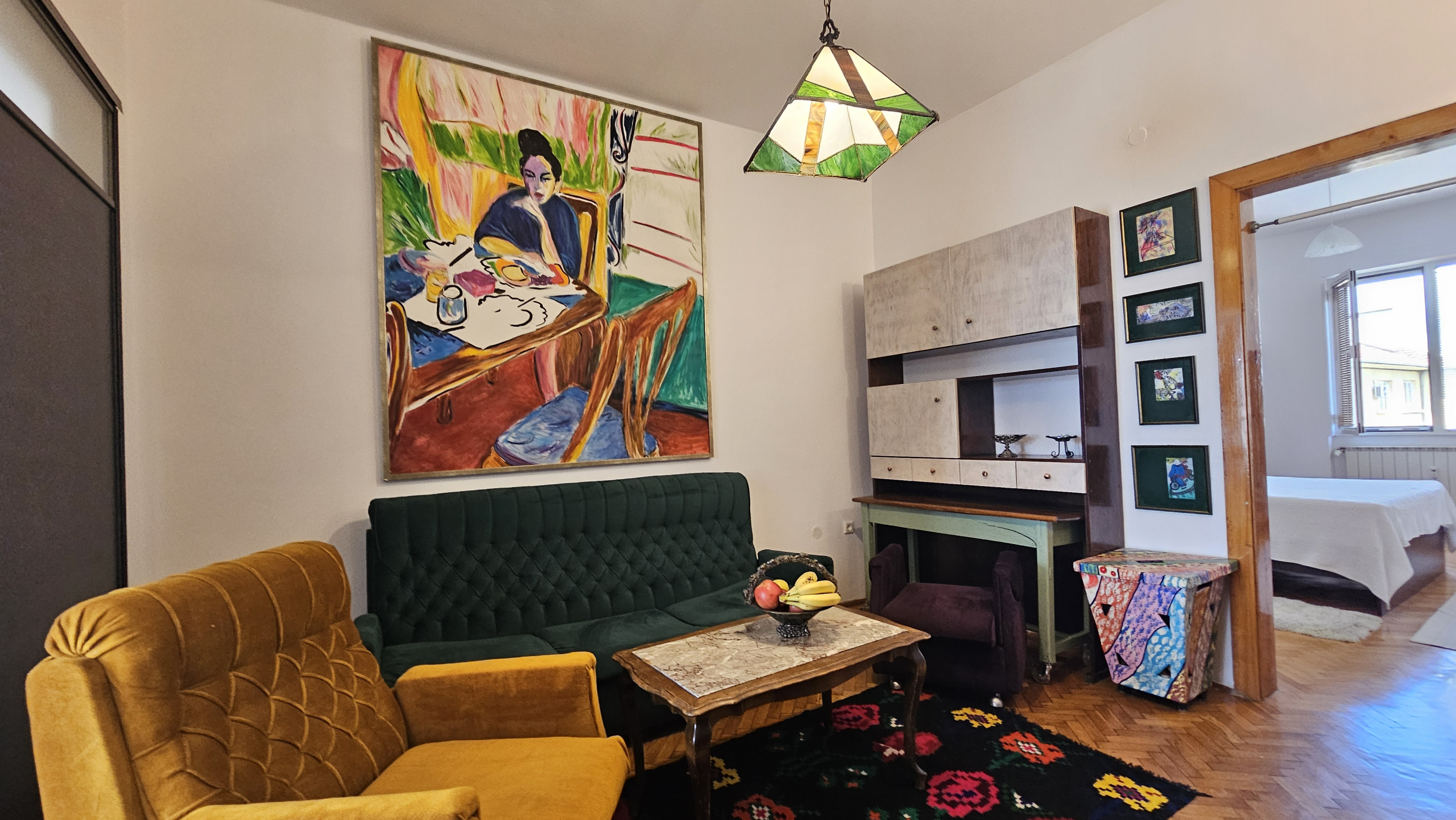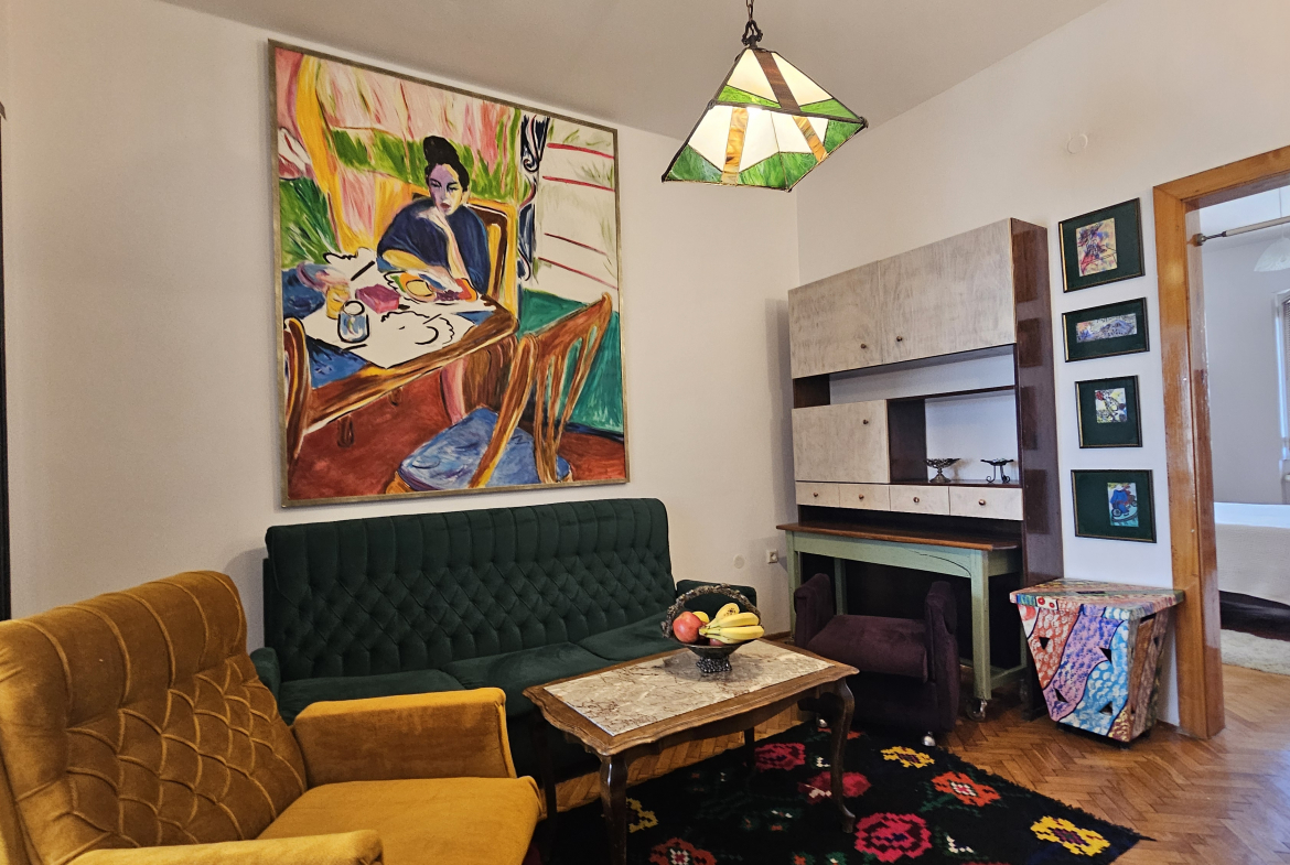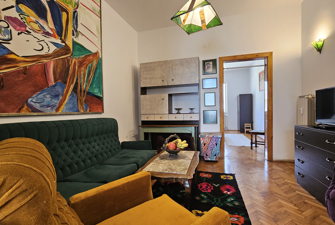 Artistic three-room apartment located in an attractive location next to the Sofia Opera House. With an area of 83 square meters, the apartment consists of the following rooms: