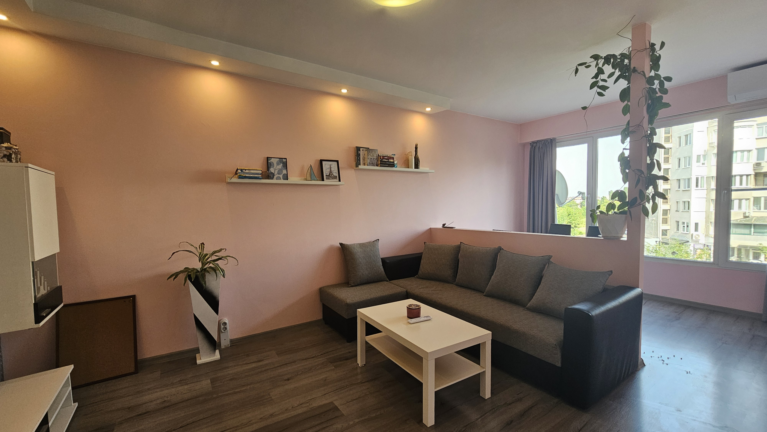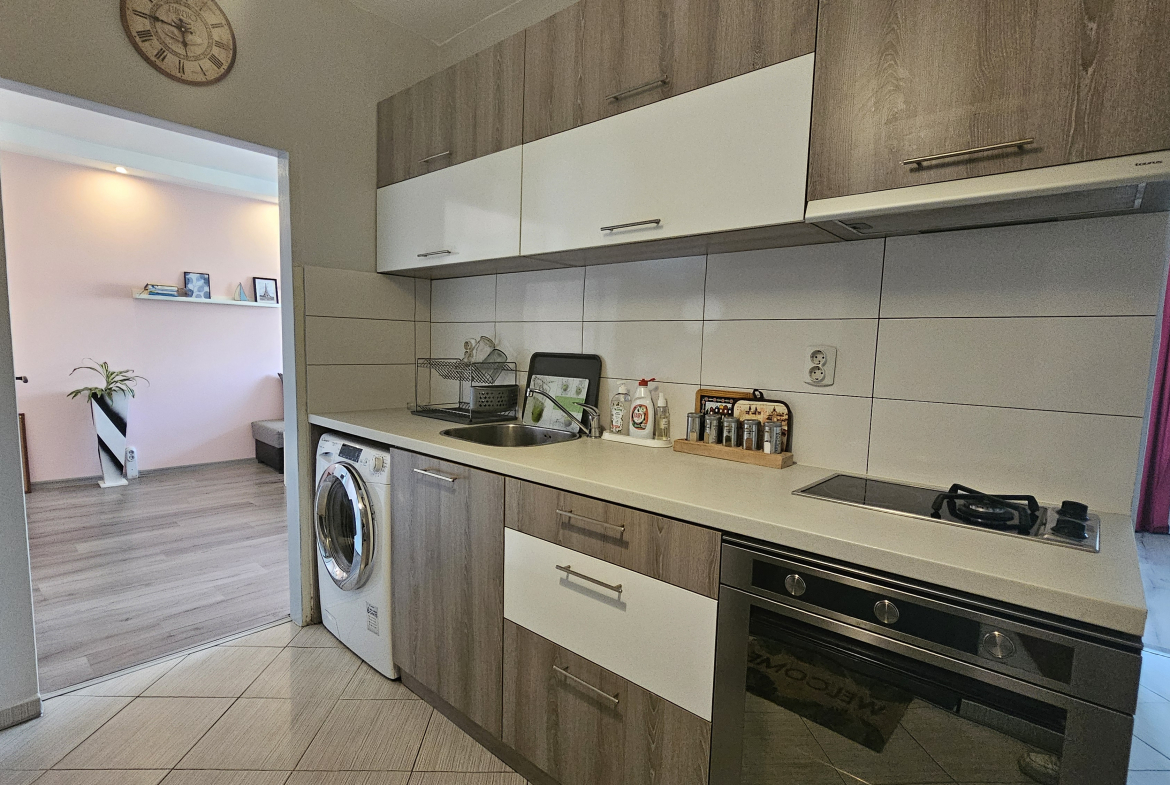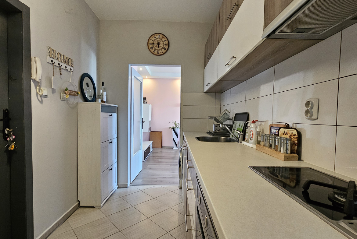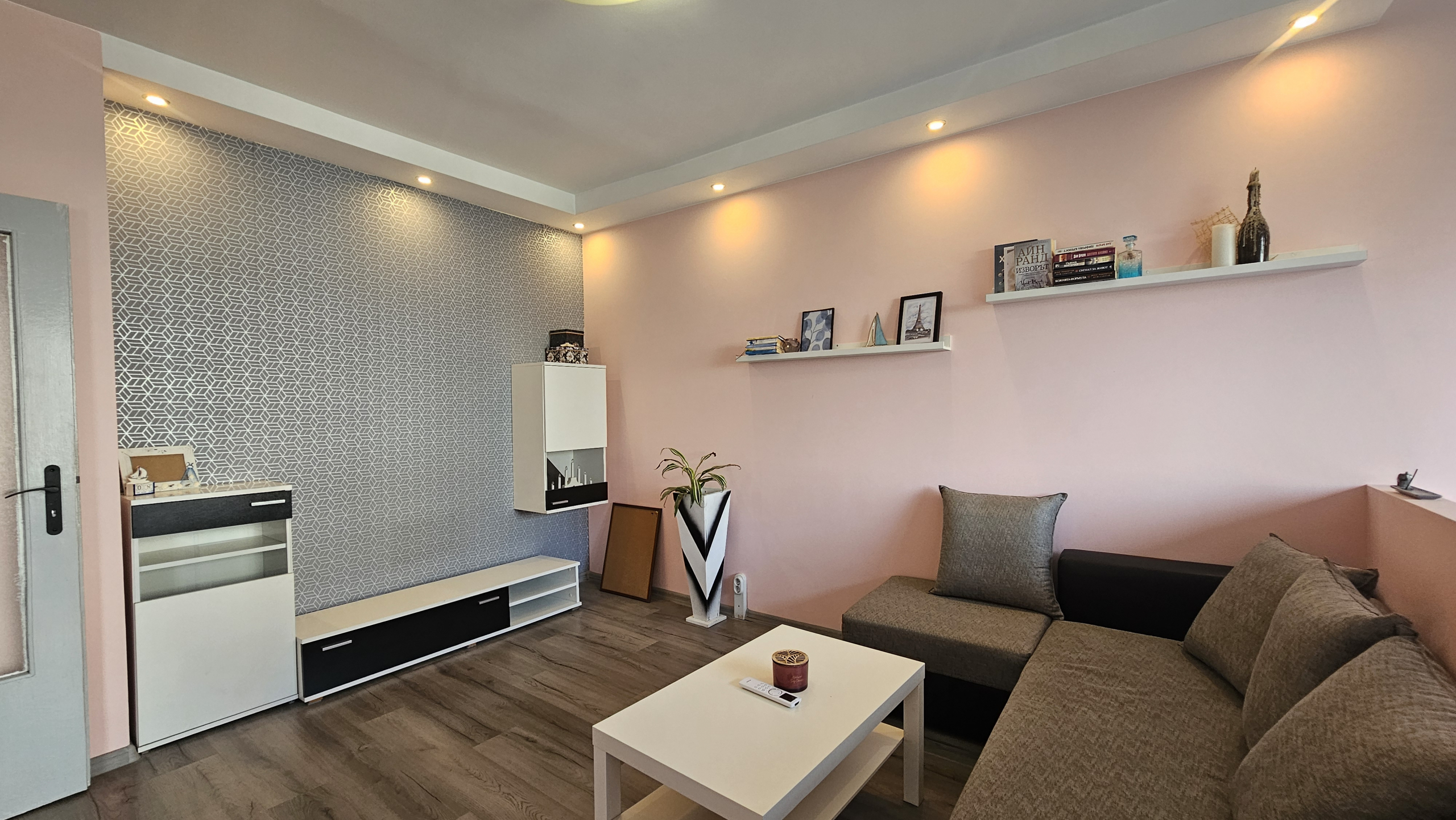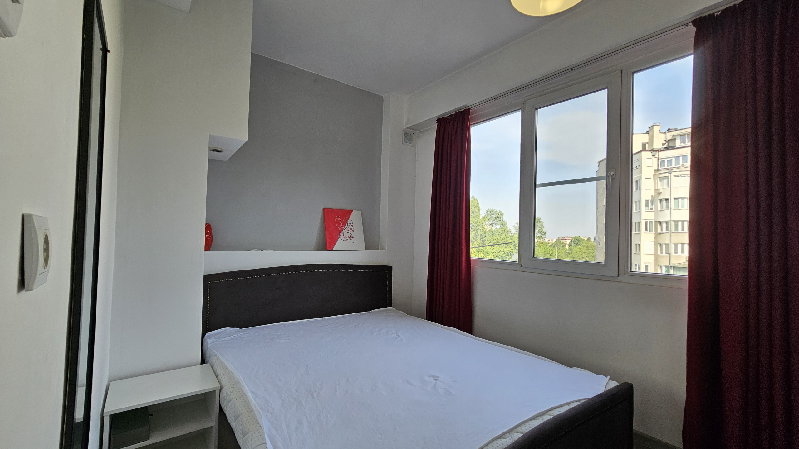 Neat and bright two-room apartment in a convenient location near the metro station in the city center. Lyulin 1. With an area of 50 square meters, the apartment is functionally divided into: a spacious living room, a fully equipped kitchenette, a cozy bedroom, equipped with a large mirror and a functional wardrobe, and a bathroom with a toilet.