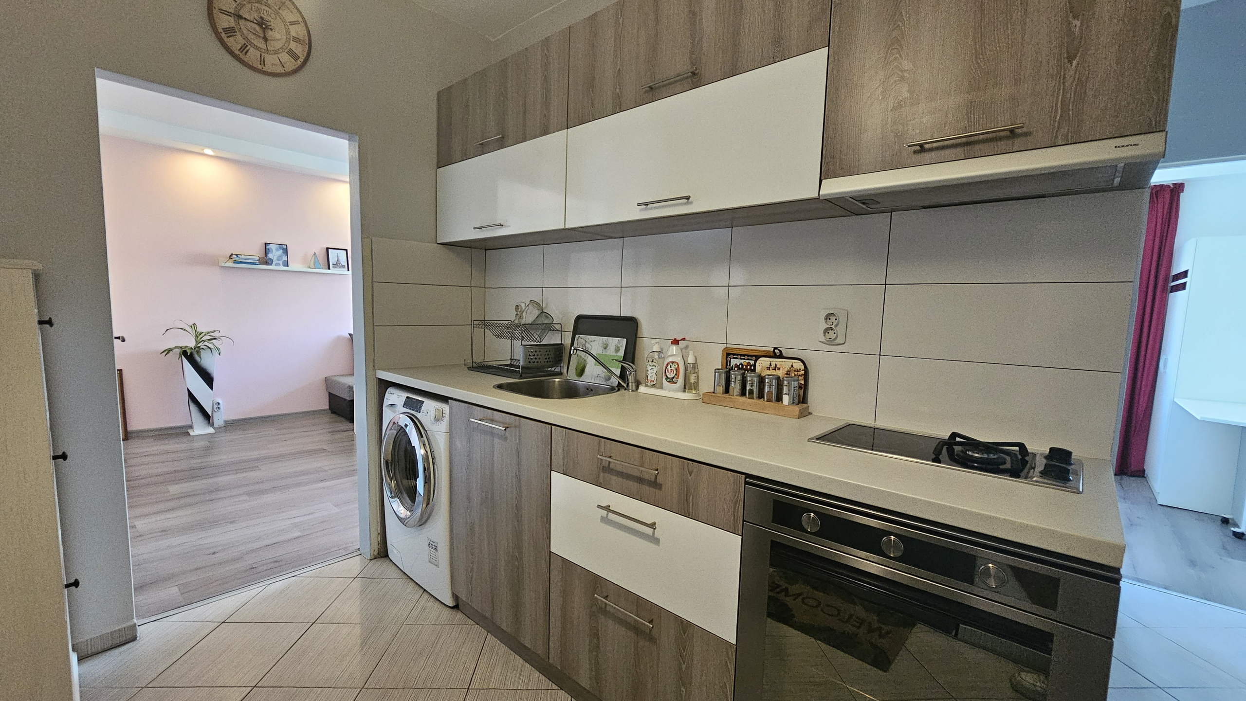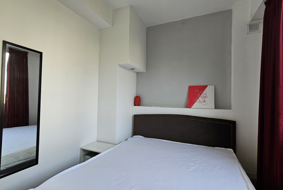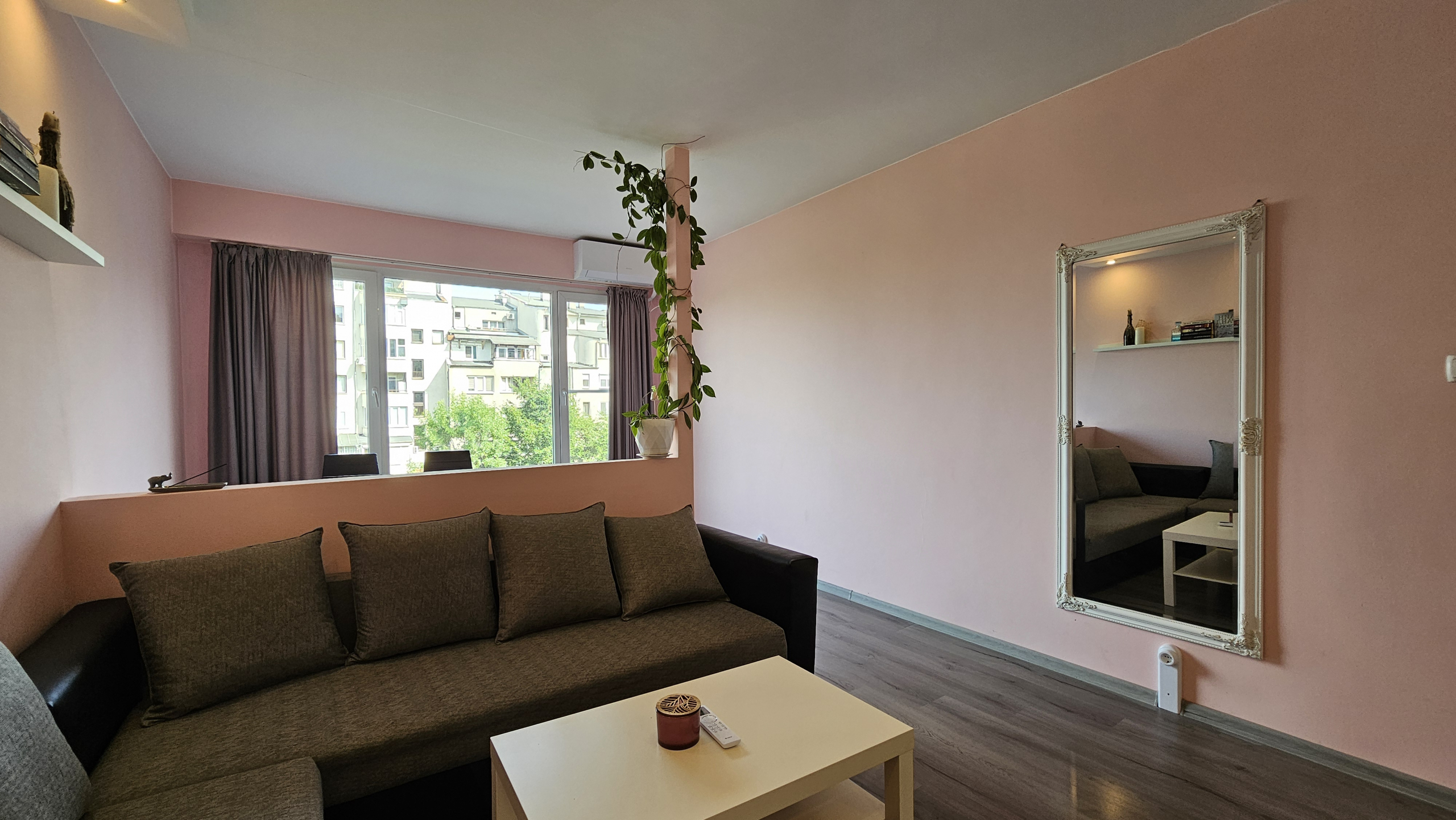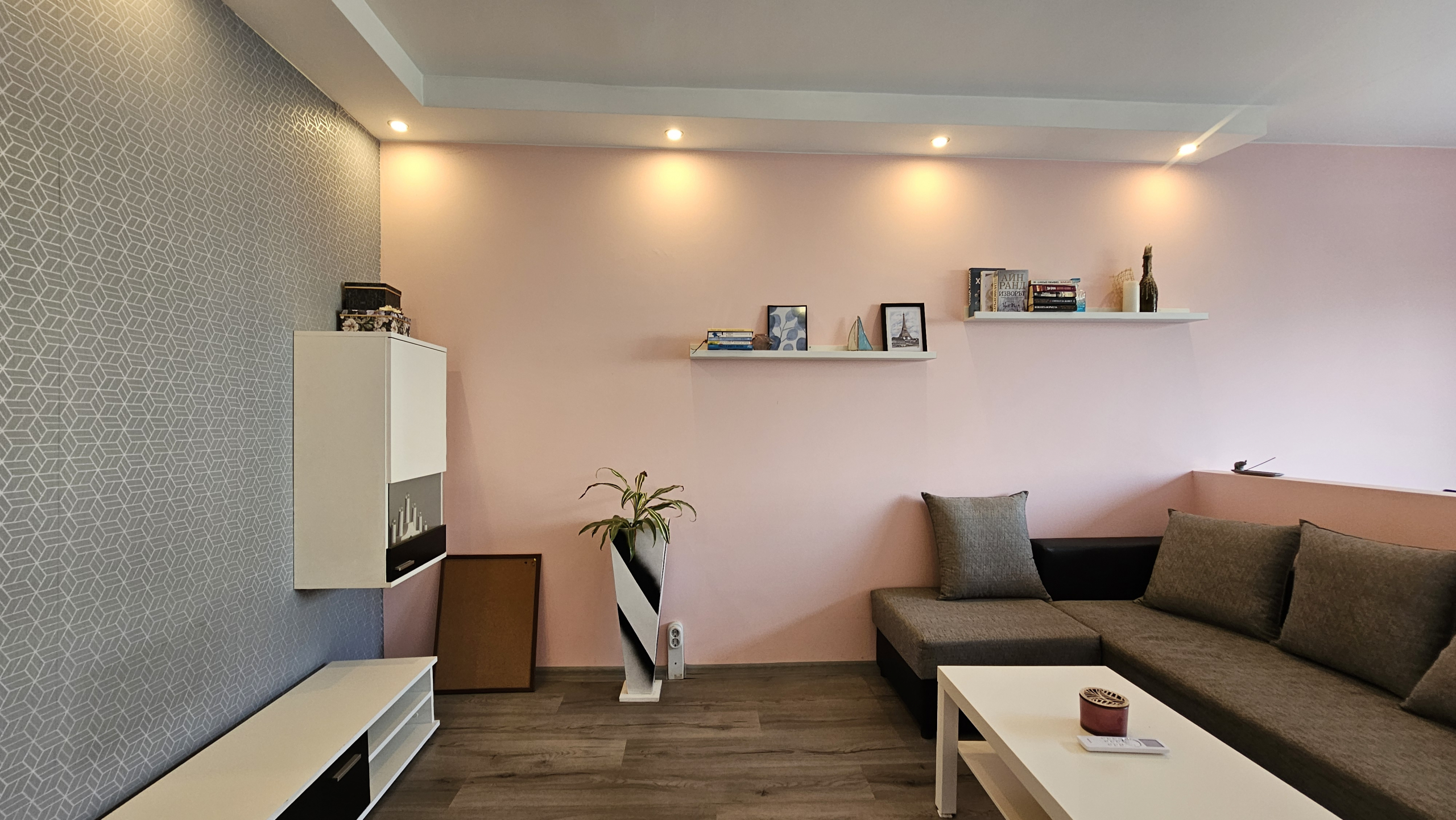 Neat and bright two-room apartment in a convenient location near the metro station in the city center. Lyulin 1. With an area of 50 square meters, the apartment is functionally divided into: a spacious living room, a fully equipped kitchenette, a cozy bedroom, equipped with a large mirror and a functional wardrobe, and a bathroom with a toilet.