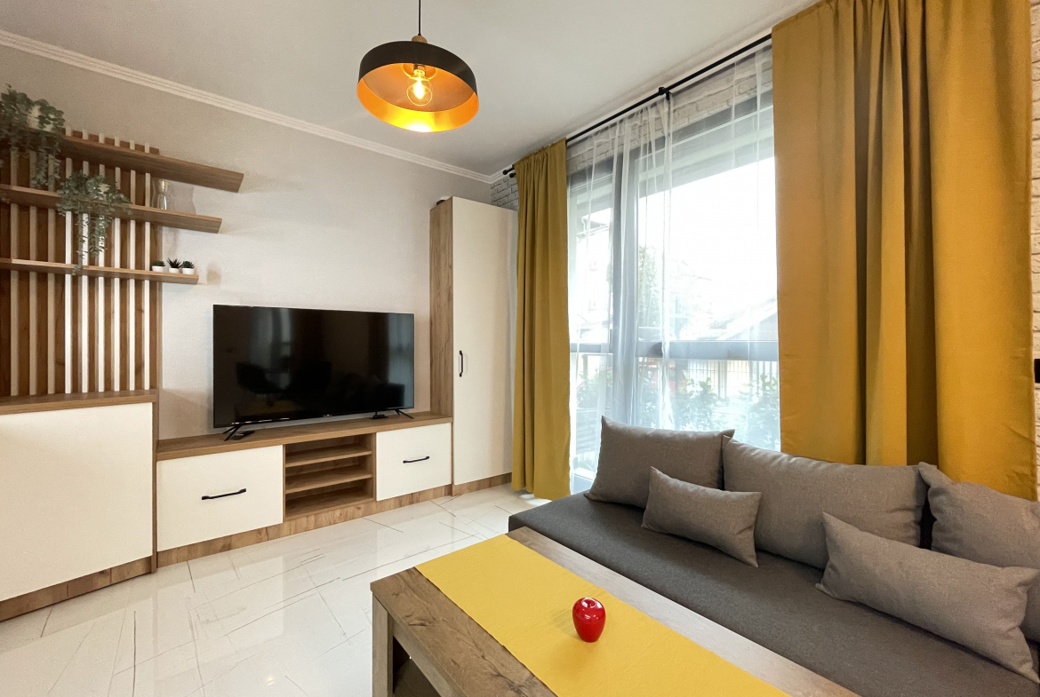 One-bedroom apartment in a brand new small cooperative in the most sought-after area of Sofia - Krastova Vada. Located on the ground floor with direct access to a garden - an ideal area for relaxation and outdoor recreation. Gas heating, underfloor heating and air conditioning. Modern furnishings - fully equipped kitchen and bathroom and fully furnished bedroom and living room with smart TV. The apartment is professionally managed, guaranteeing high-quality service.
