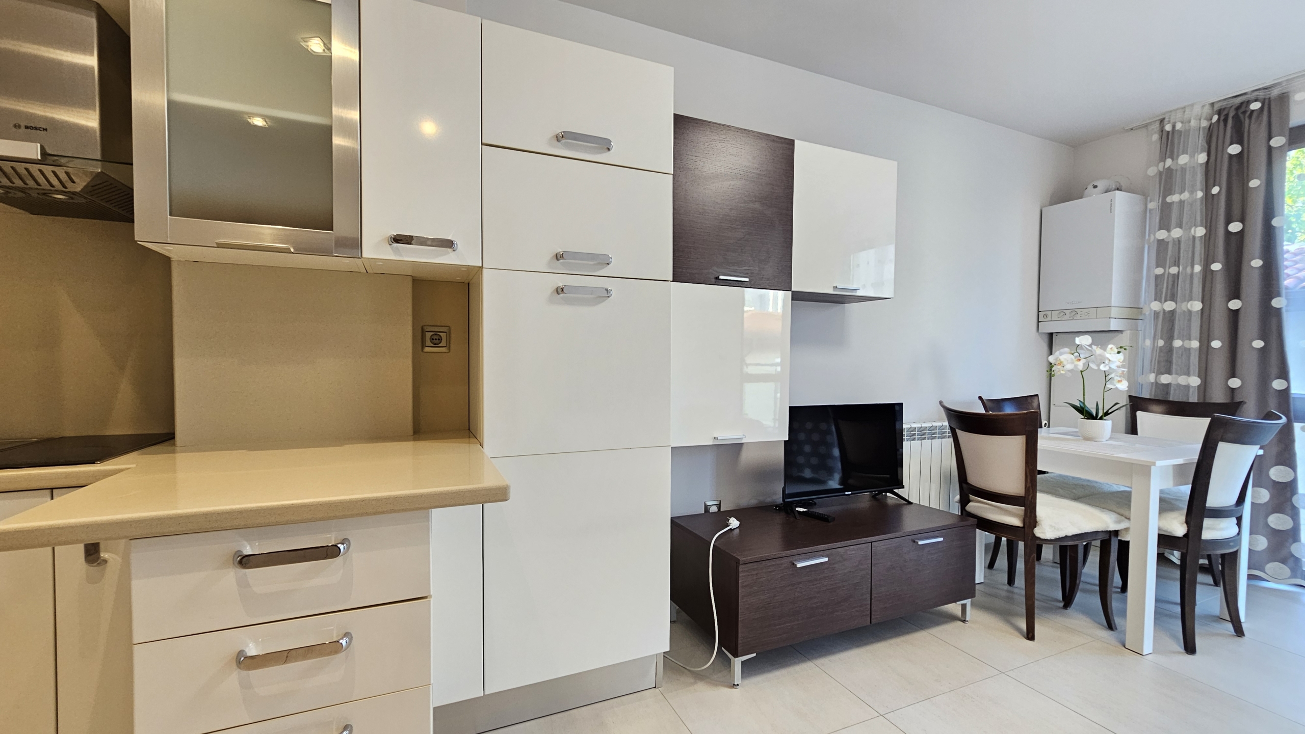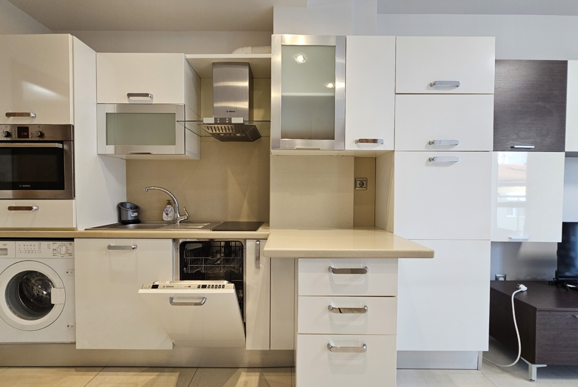 Newly furnished one-bedroom apartment with an area of 55 sq.m., located in the heart of the "Manastirski Livadi" district, right next to the "St. Sofia" Hospital. The apartment is located in a well-maintained building with an excellent location and convenient access to main boulevards such as "Bulgaria" and "Todor Kableshkov". Nearby there are public transport stops (buses and trams), numerous shops, restaurants, pharmacies and fitness centers.