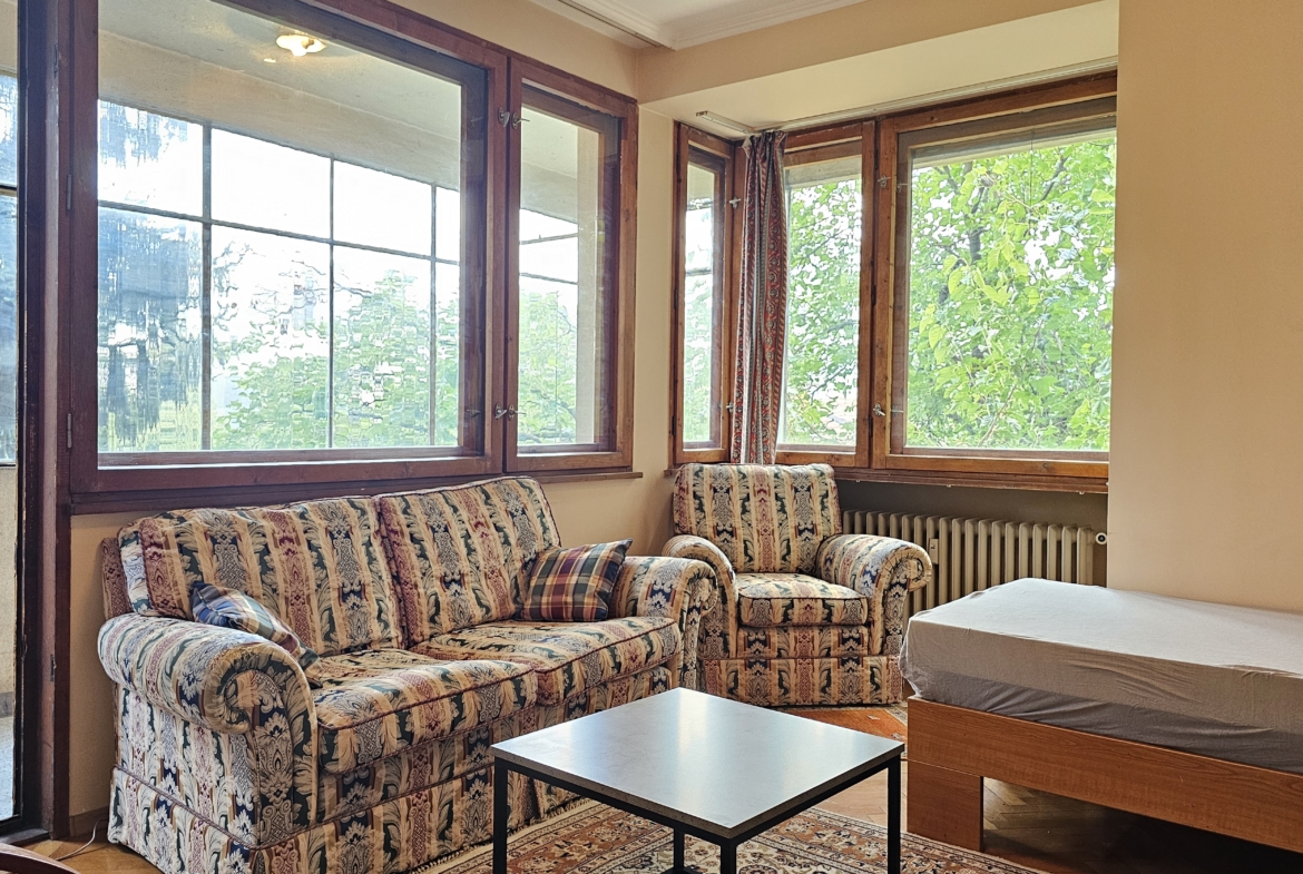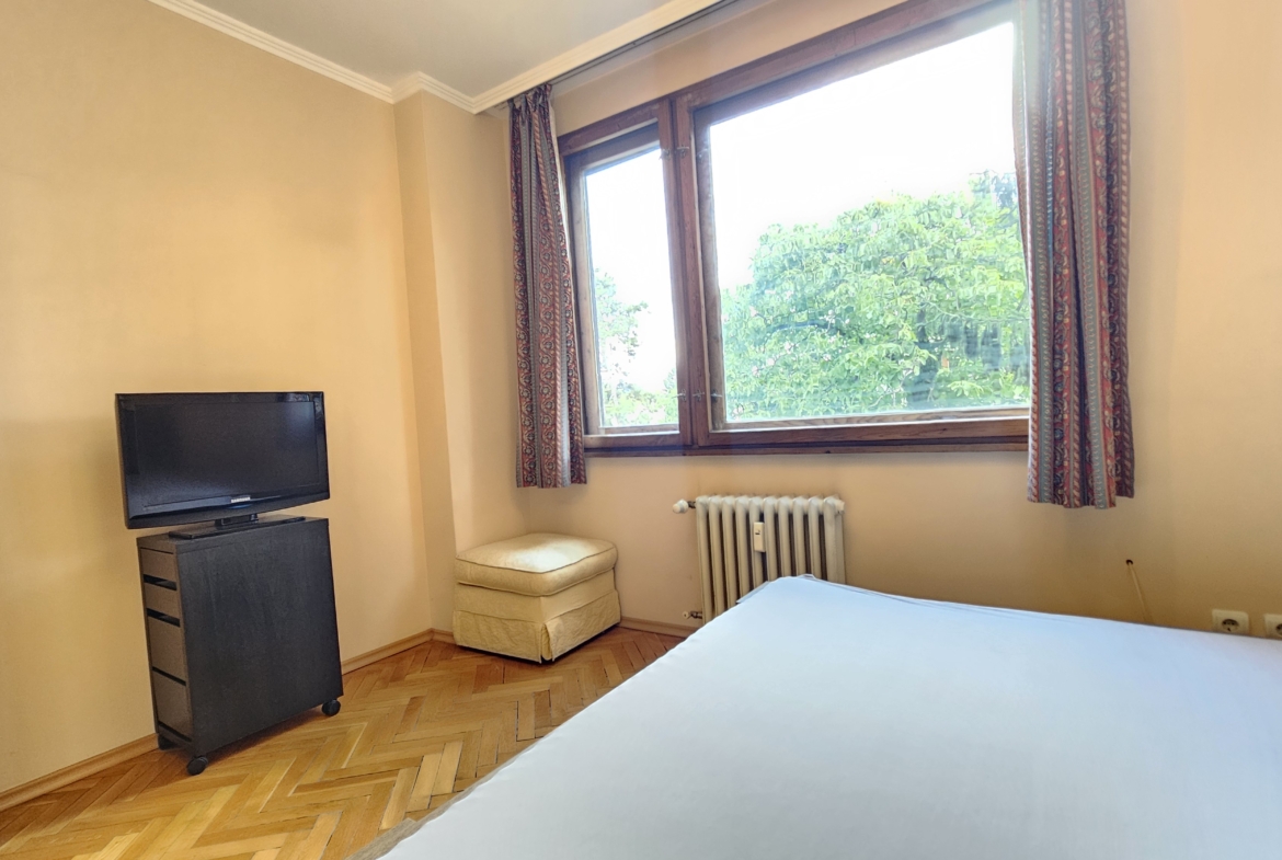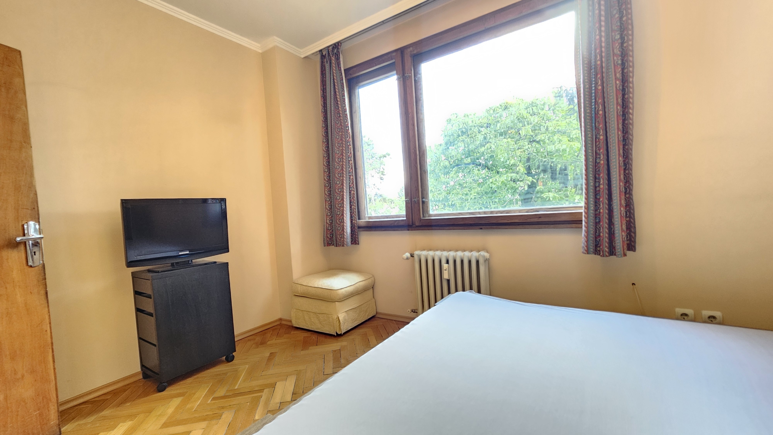 One-bedroom apartment with an area of 65 sq.m., located in one of the quietest and greenest neighborhoods of Sofia - Izgrev district. The apartment is located right opposite the Russian Embassy and just steps away from Borisova Garden, which provides peace, fresh air and an excellent living environment.