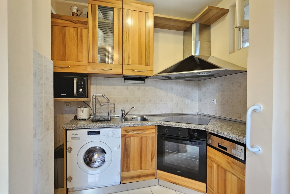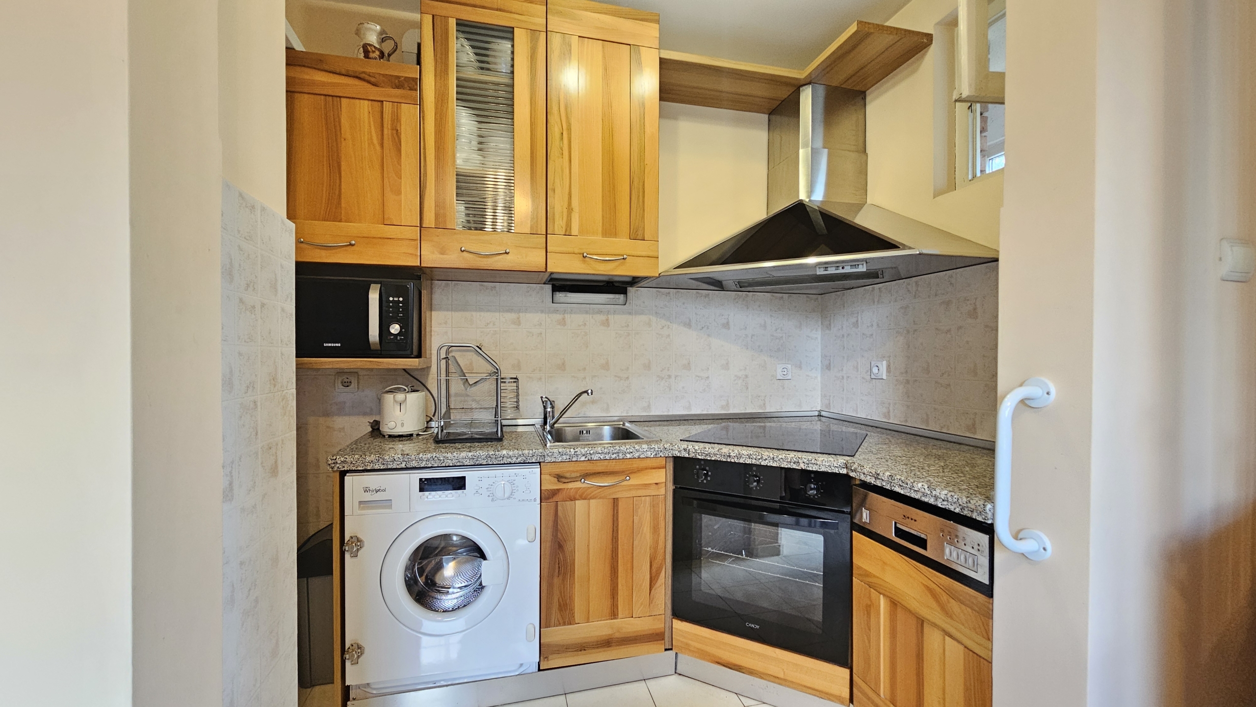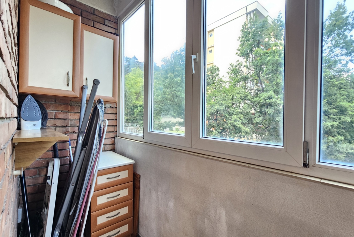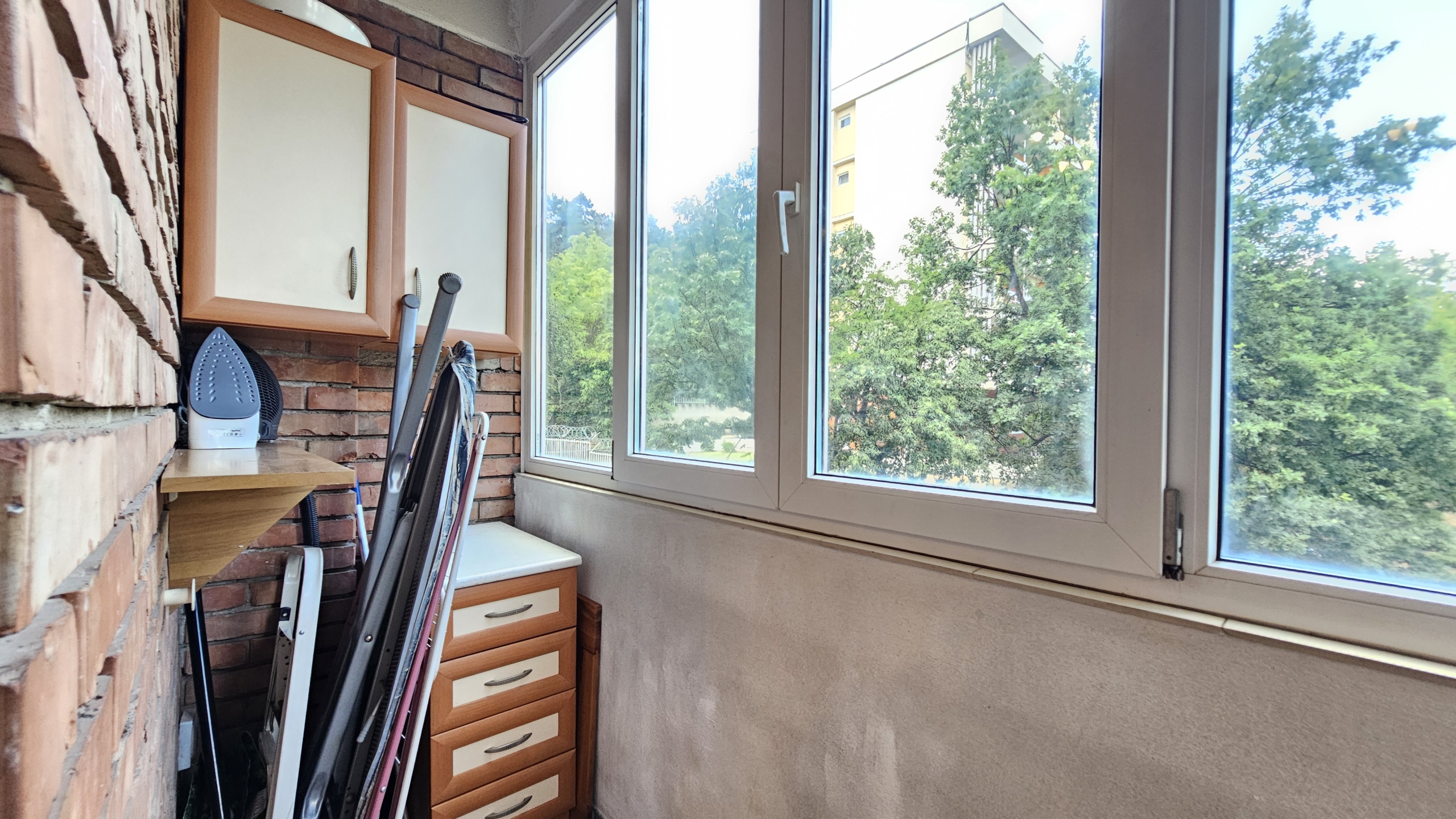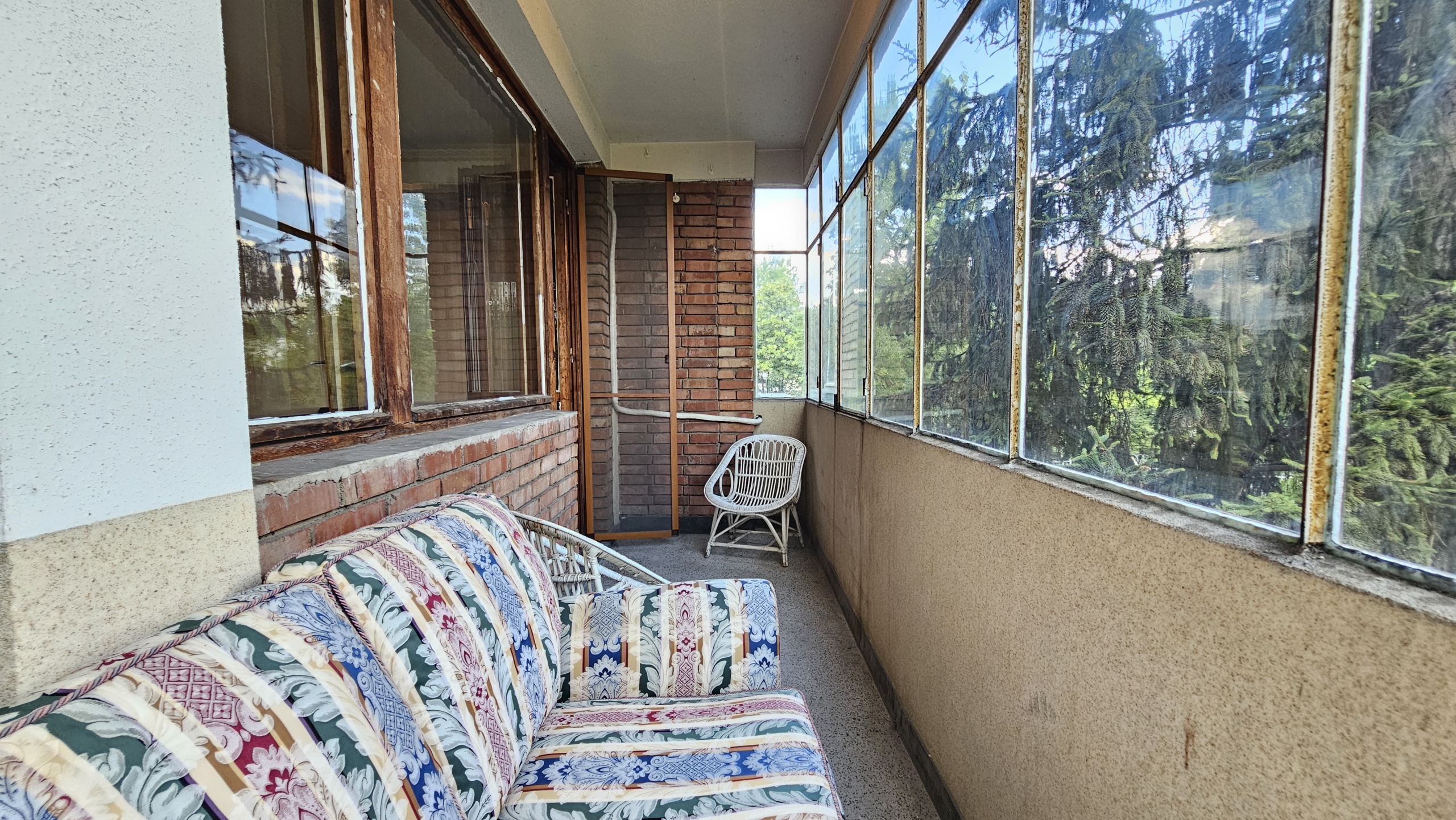 The layout includes a bright living room with sofas, a fully equipped kitchen, a cozy bedroom, a bathroom with toilet and a spacious glazed balcony - ideal for morning coffee. Some of the electrical appliances have been replaced, and the apartment has been refreshed with new paint.