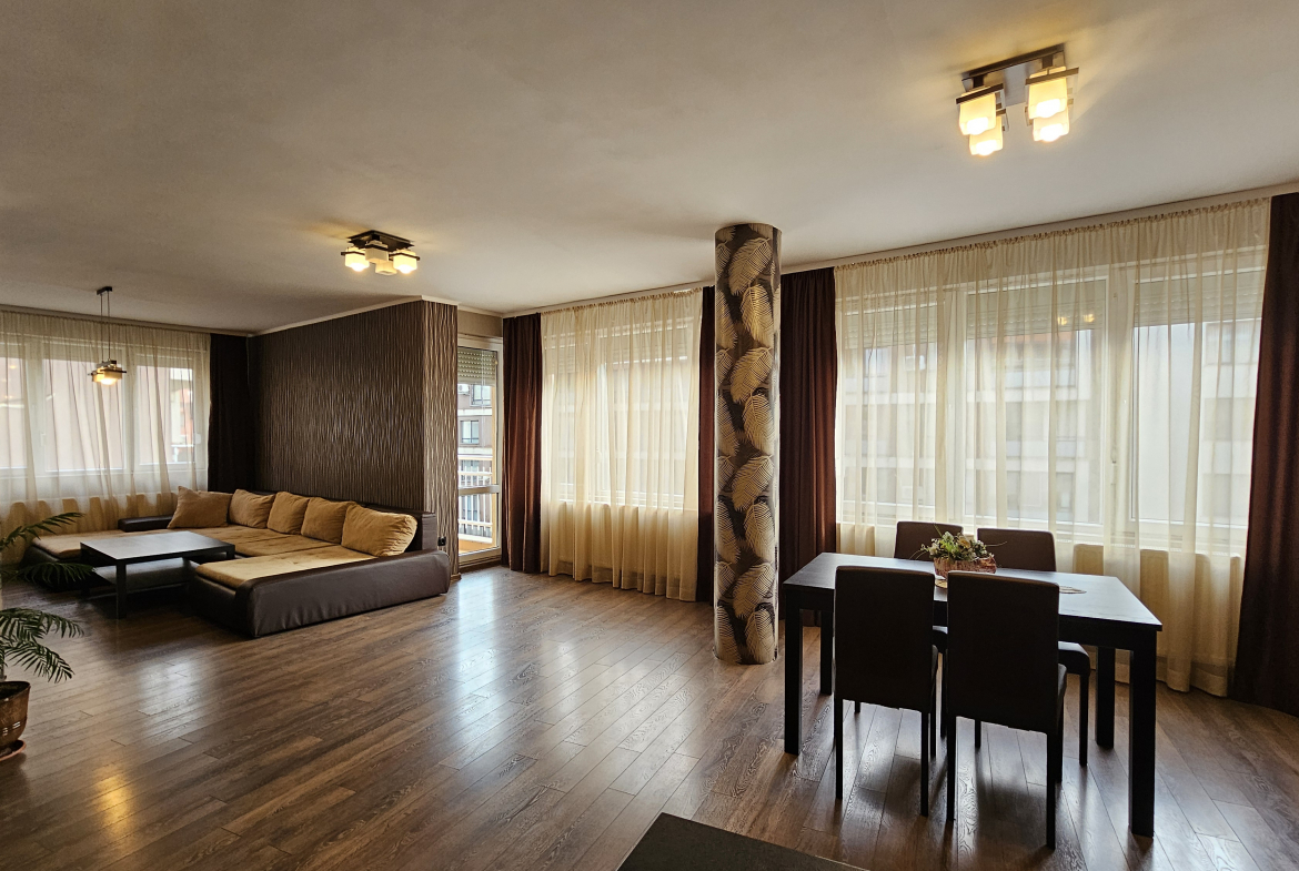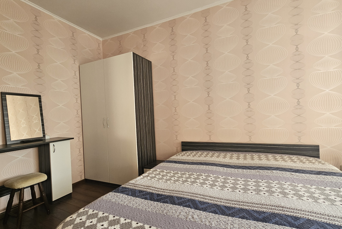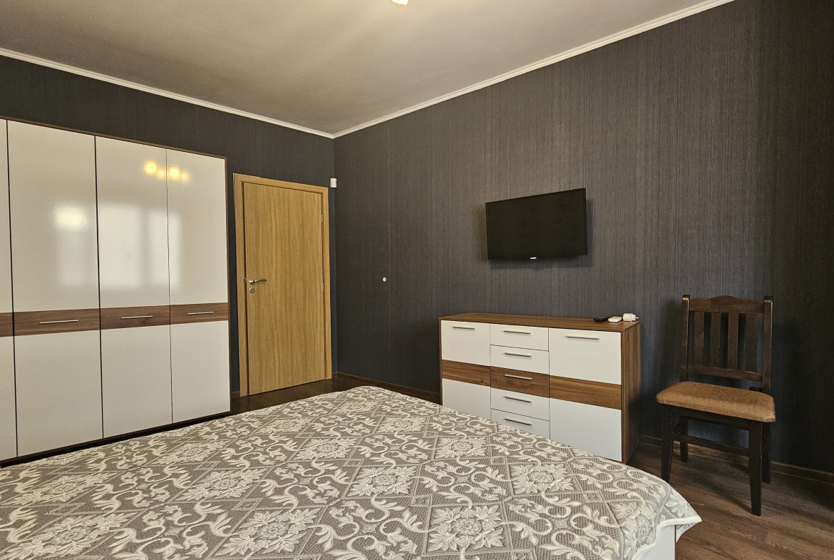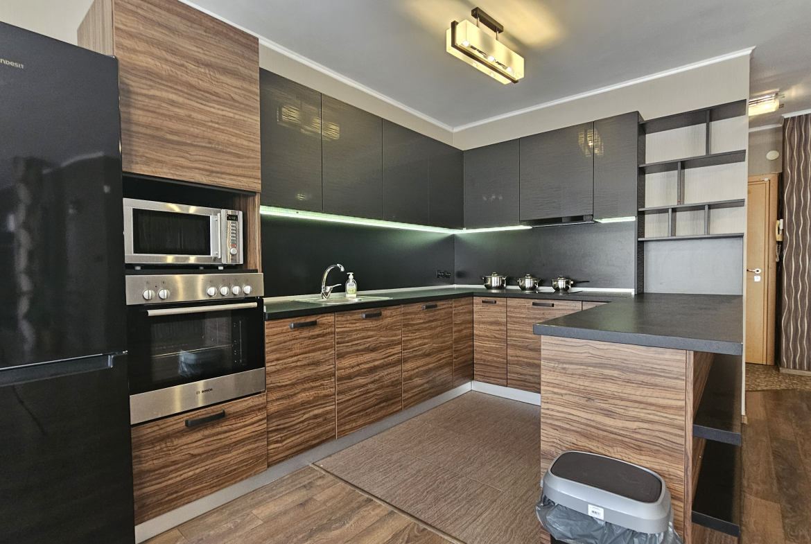 Space and comfort in a fully and modernly furnished three-room apartment in a new building in a convenient location in the residential area. Monastery meadows. The apartment is on the third floor and has an area of 140 square meters, including an entrance hall, a spacious living room with sofas and a TV with a dining area and a kitchenette, two cozy fully equipped bedrooms, a bathroom with a toilet and two terraces with a view of the surroundings. Electric heating with air conditioners. Fully furnished and equipped with new furniture and electrical appliances, ensuring maximum comfort and coziness.