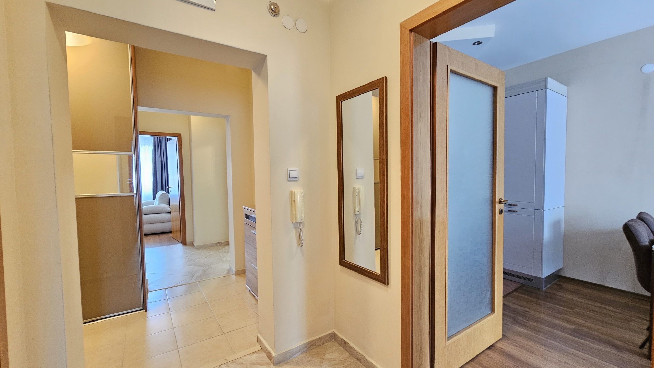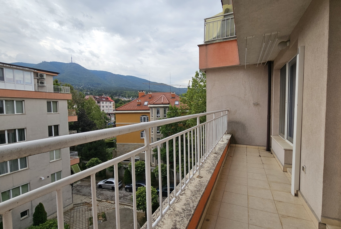 Spacious four-bedroom apartment for rent in the quiet and green Karpuzitsa district. The property has a net area of 100 sq m and is distinguished by an excellent layout, which allows for a comfortable separation of a living area, a dining room and a separate office space. The apartment has separate bedrooms, two bathrooms with toilets and two terraces, which provide natural light and pleasant opportunities for relaxation. One of the terraces also reveals an impressive panoramic view of Vitosha Mountain.