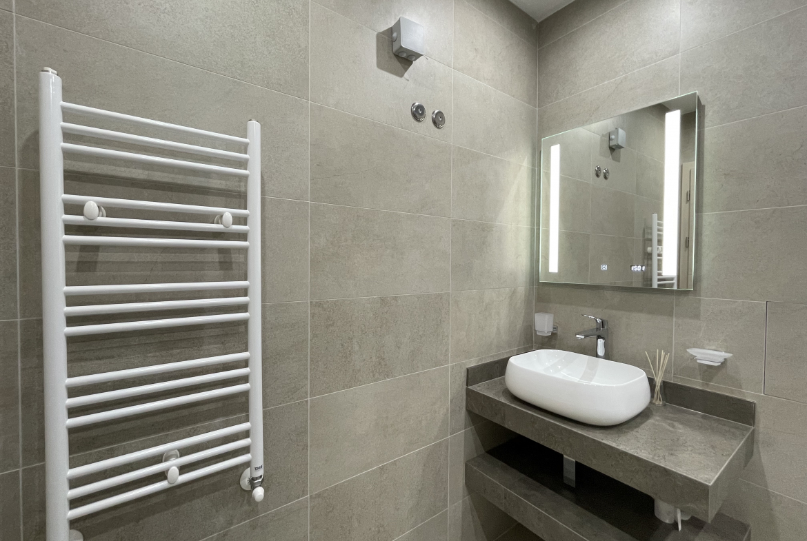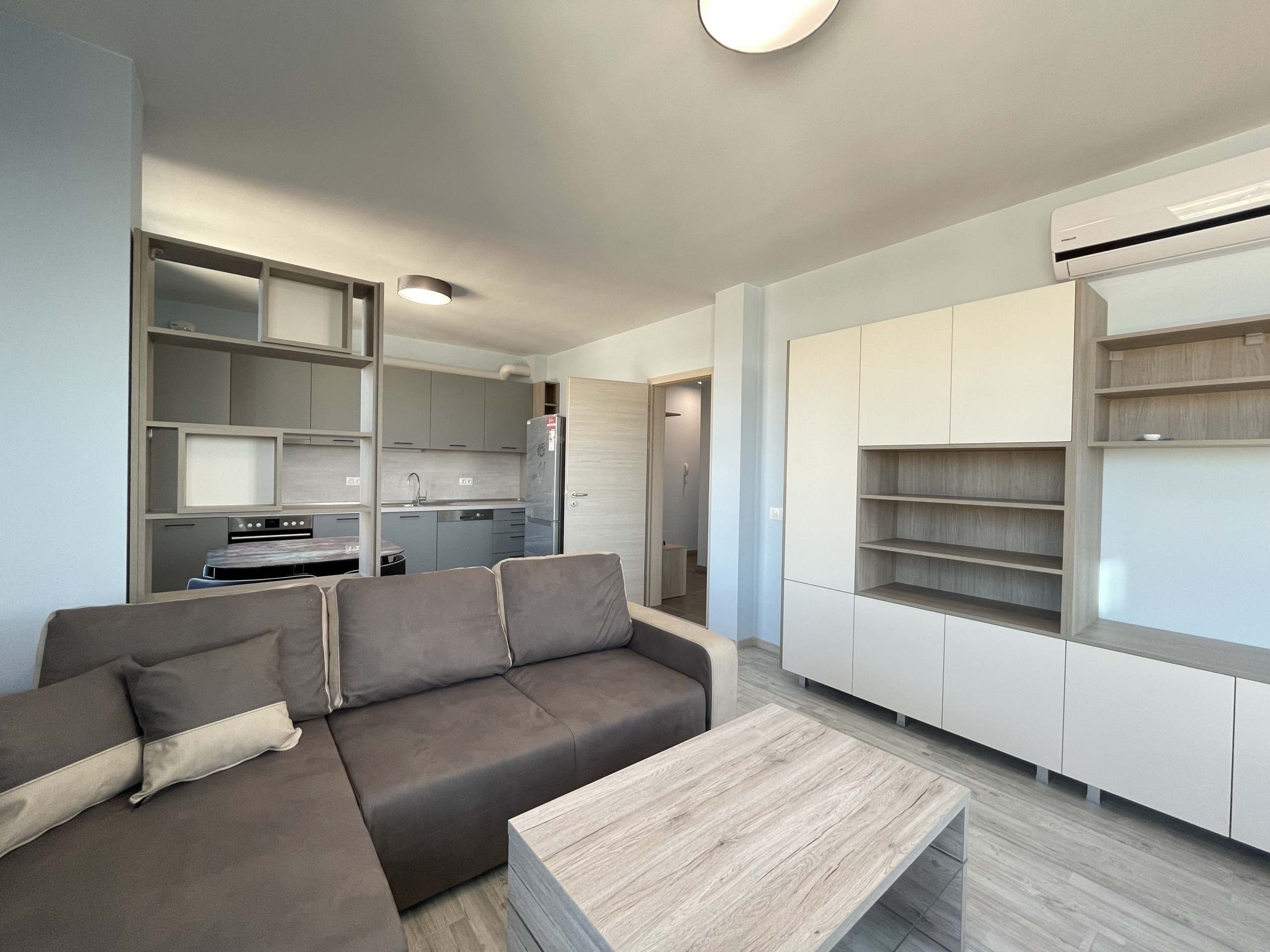 The heating is gas, and an air conditioner is additionally installed in the living room for additional comfort during the summer months. The apartment is fully furnished and equipped with all necessary appliances - stove, hobs, dishwasher, washing machine, dryer and refrigerator.