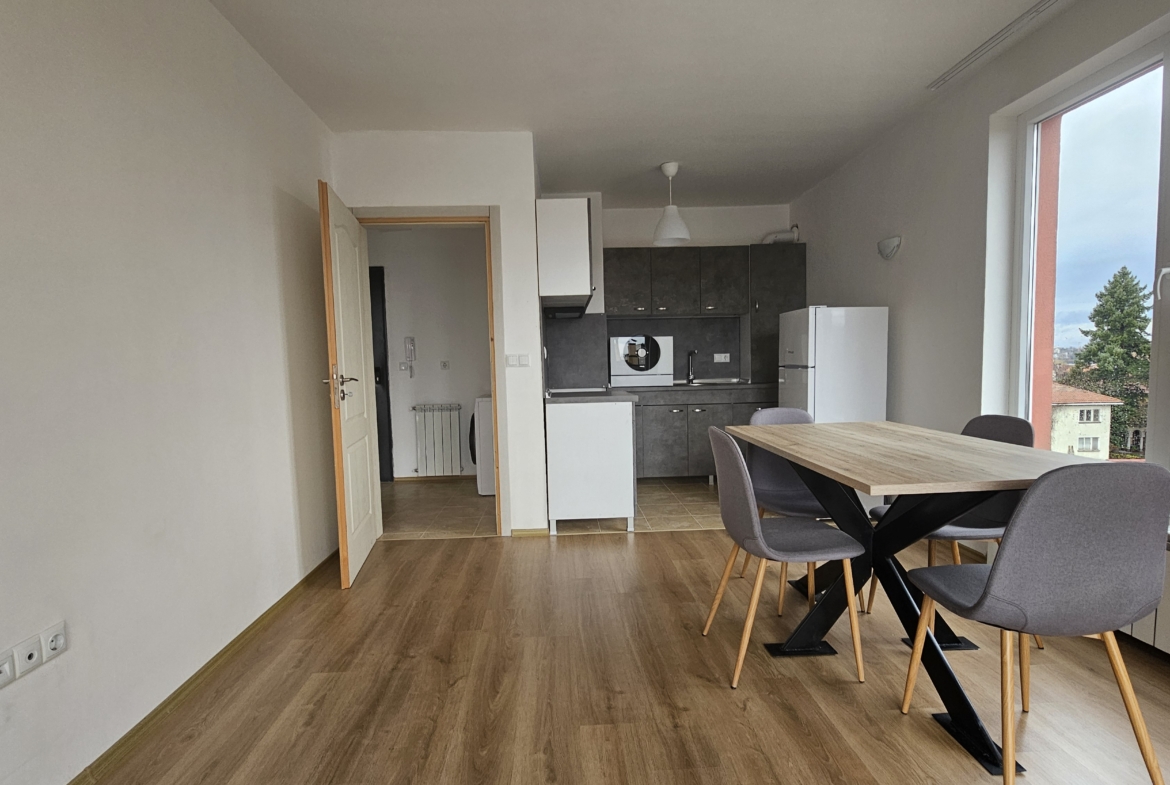 Semi-furnished one-bedroom apartment, located in a modern new building on 7 Marinkovitsa Street. The property has an area of 56 sq.m., functionally distributed between: