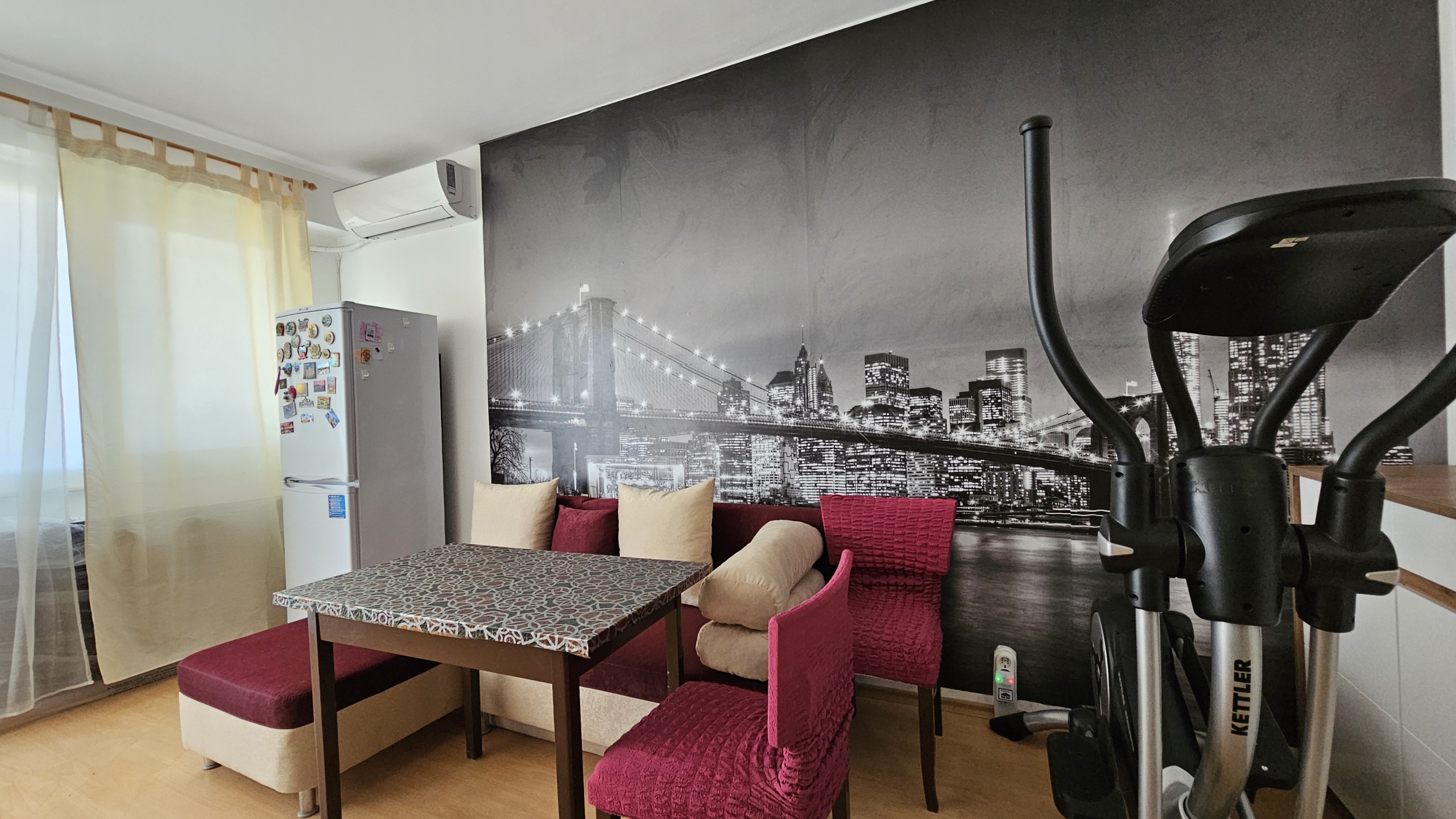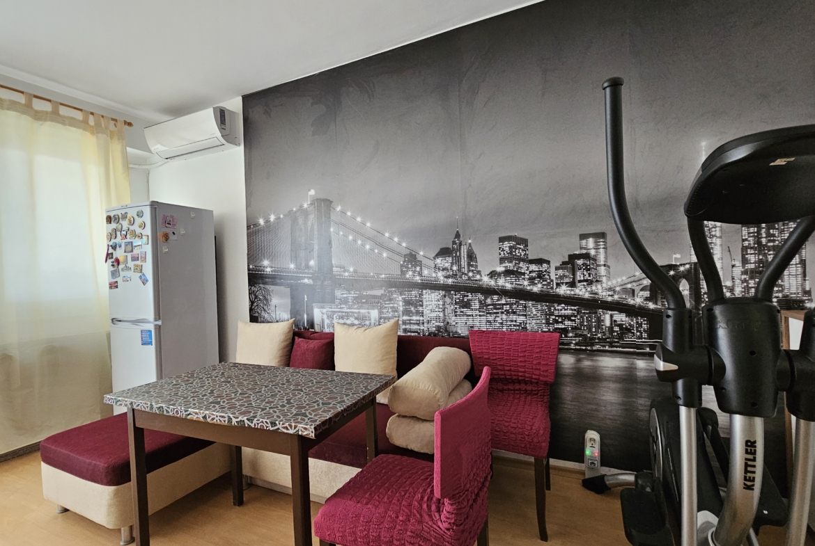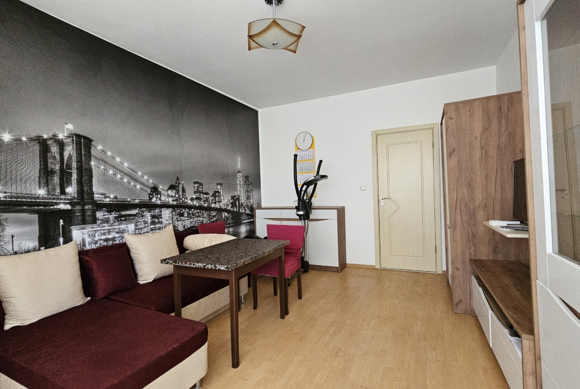 Cozy and bright one-bedroom apartment in Druzhba 1 residential area, located 5 minutes walk from the metro station. The apartment offers convenience and comfort, including a bright living room, a functional kitchen, a cozy bedroom, a bathroom with toilet and a terrace with a pleasant view of the surroundings. The apartment is fully furnished and well-distributed, providing enough space for all the needs of its future residents. Available for rent after 01.10.2024.