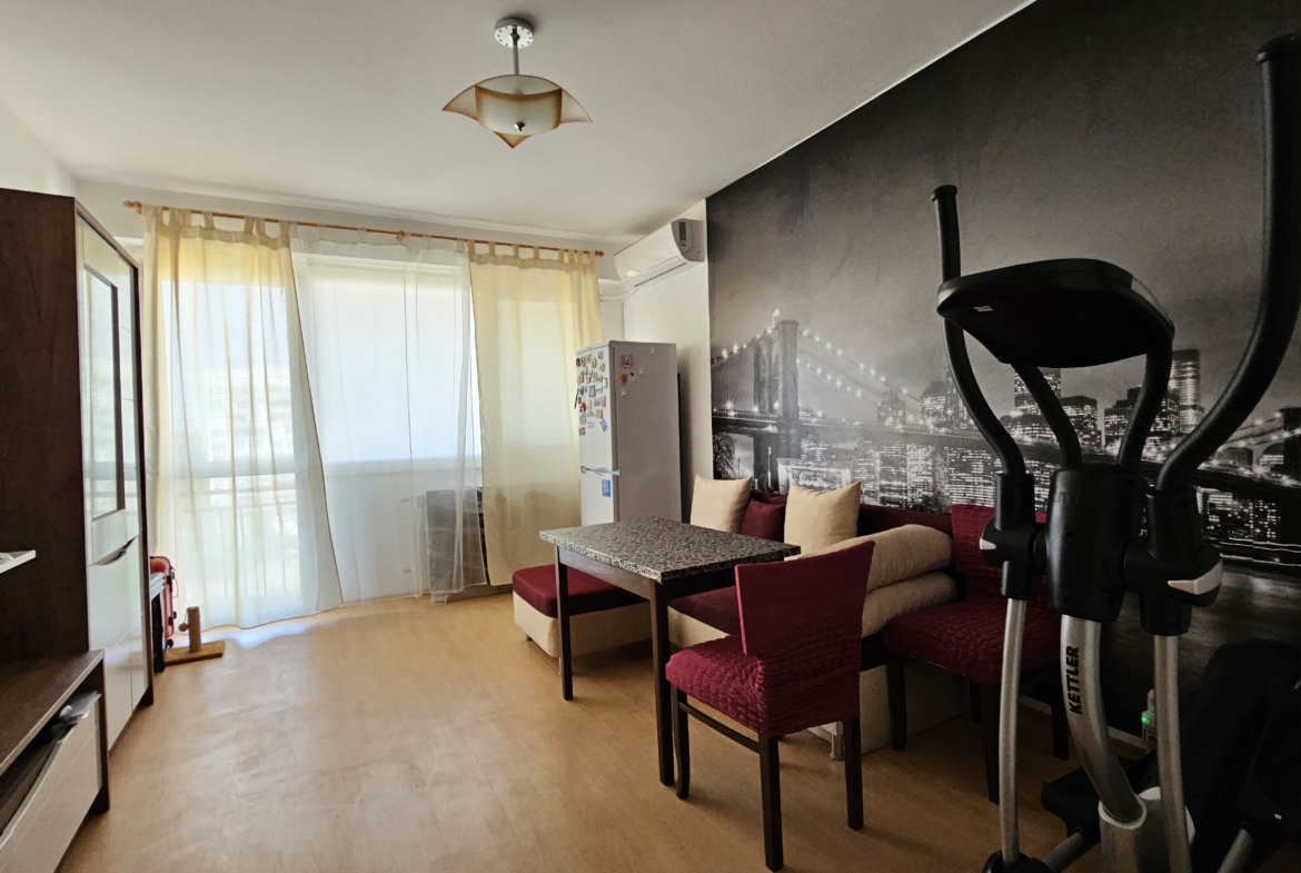 Spacious and bright one-bedroom apartment in Druzhba 1 residential area, located 5 minutes walk from the metro station. The apartment offers convenience and comfort, including a functional kitchen and a cozy bedroom. The apartment is ideal for a family or couple looking for a balance between the urban lifestyle and the tranquility of the neighborhood. The apartment has a good layout, providing enough space for all the needs of its future residents. There is also a terrace overlooking the neighborhood, which is suitable for evening gatherings. The apartment will be available for rent after 01.10.2024!
