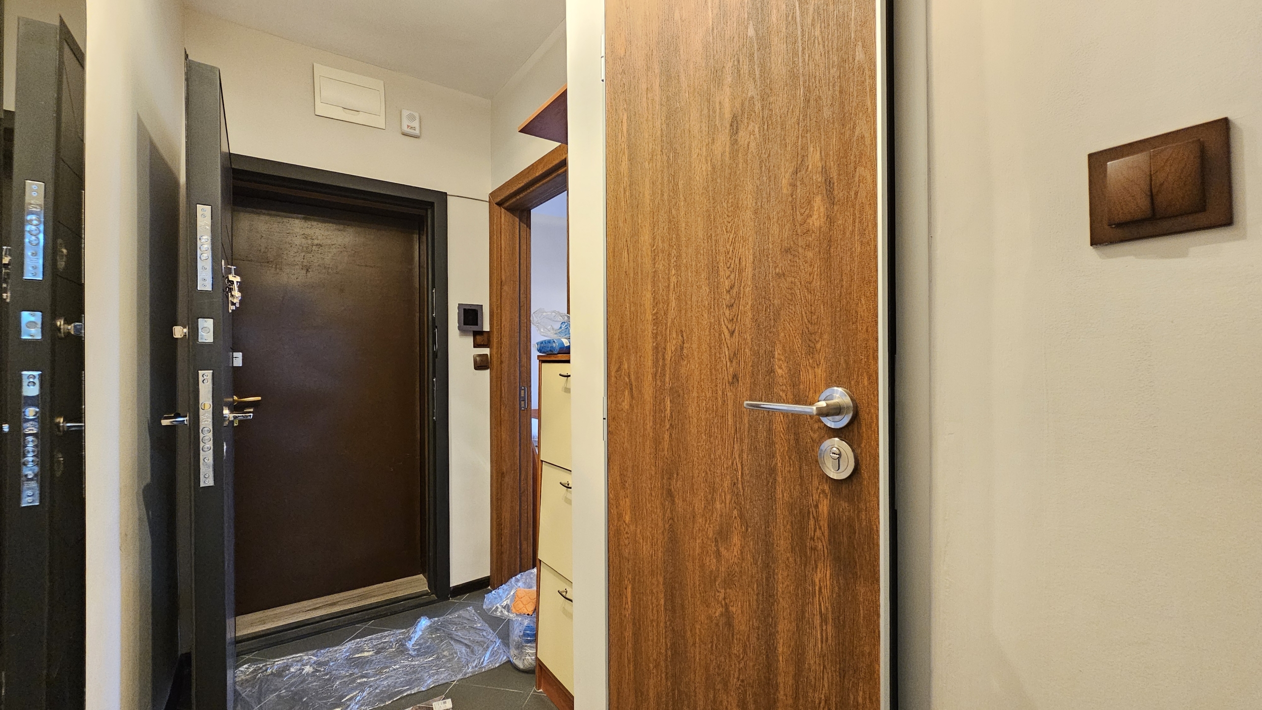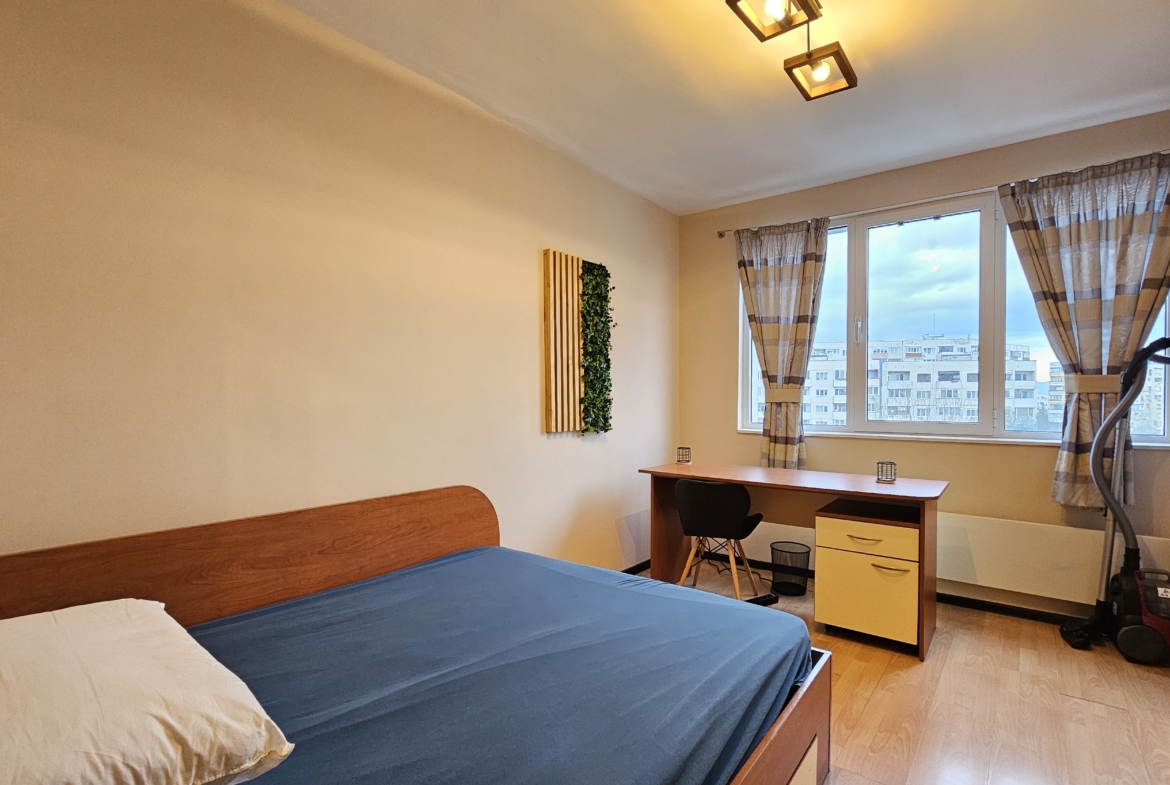 The apartment is located on a quiet street, close to key city amenities. It is located 400 m. from the Mizia metro station, and within walking distance of the New Bulgarian University (NBU). There are large hypermarkets nearby such as Billa, Kaufland, Fantastico, as well as numerous small shops.