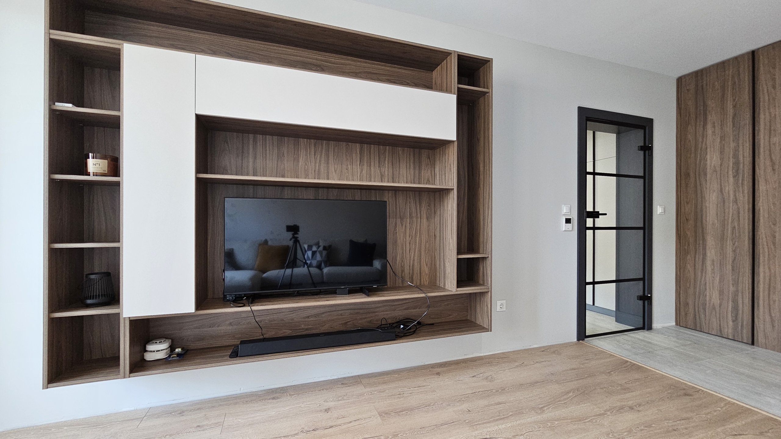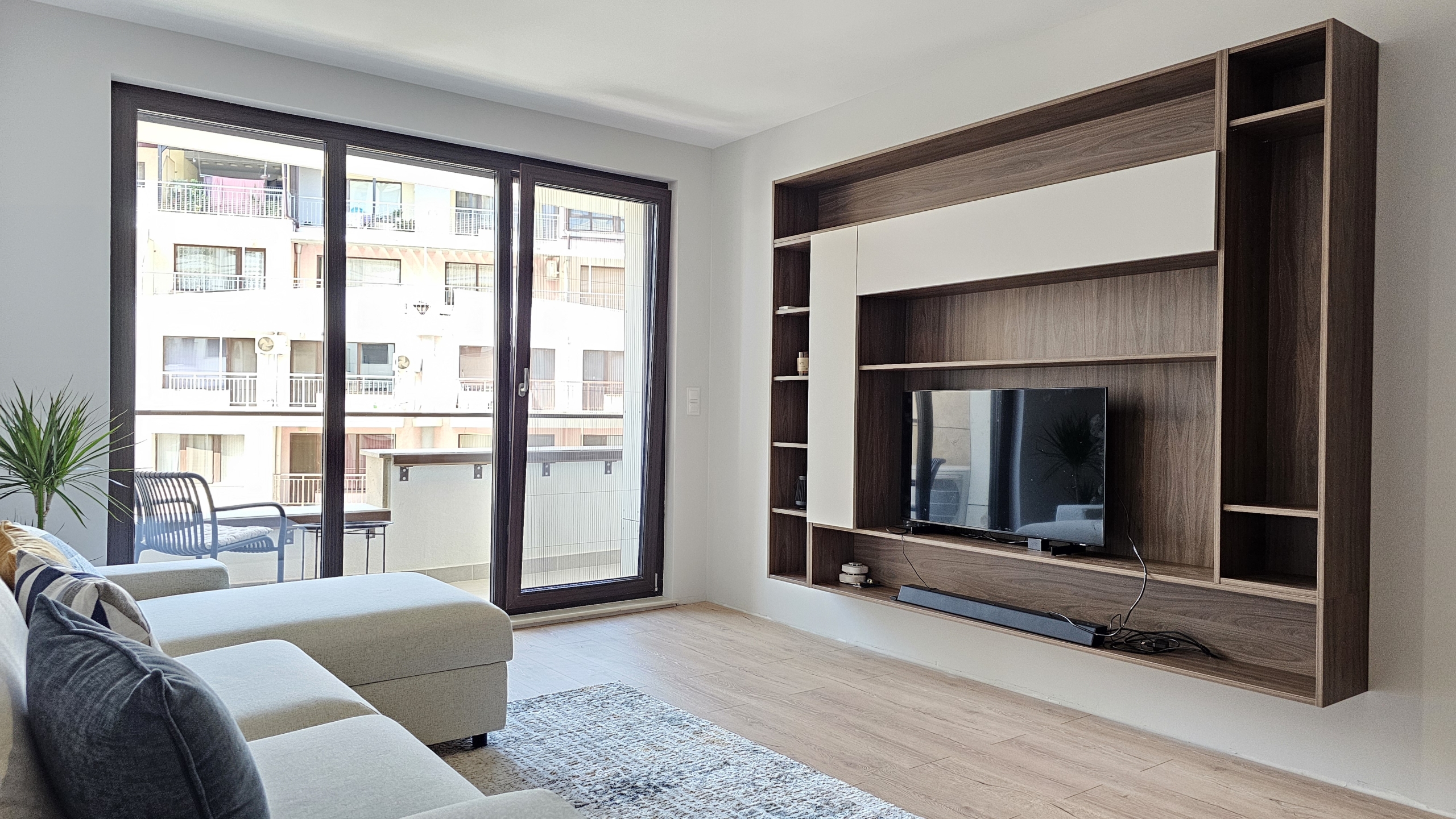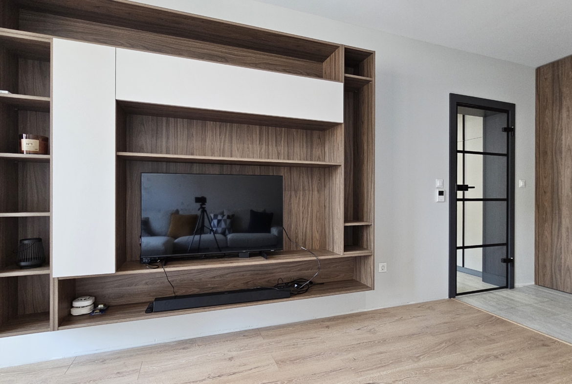 The apartment is finished with high-class custom-made furniture, central heating, air conditioning and the distribution is as follows: