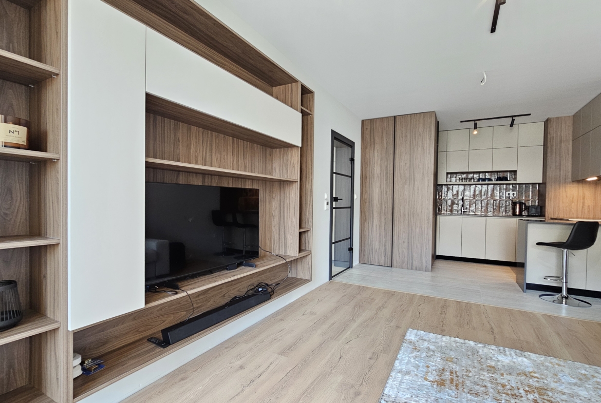 - Spacious living room with fully equipped kitchenette and terrace. French windows add extra light and space.