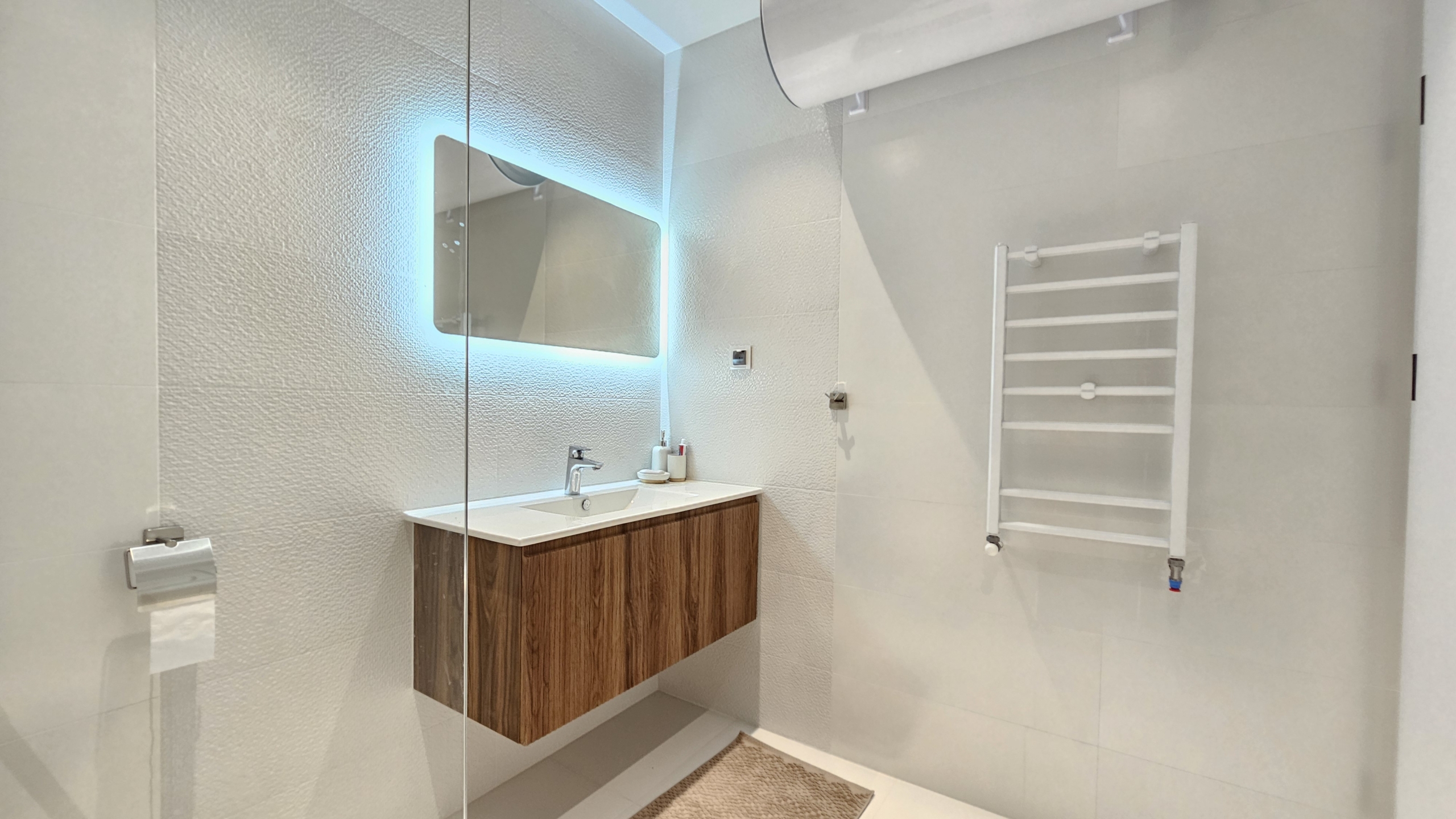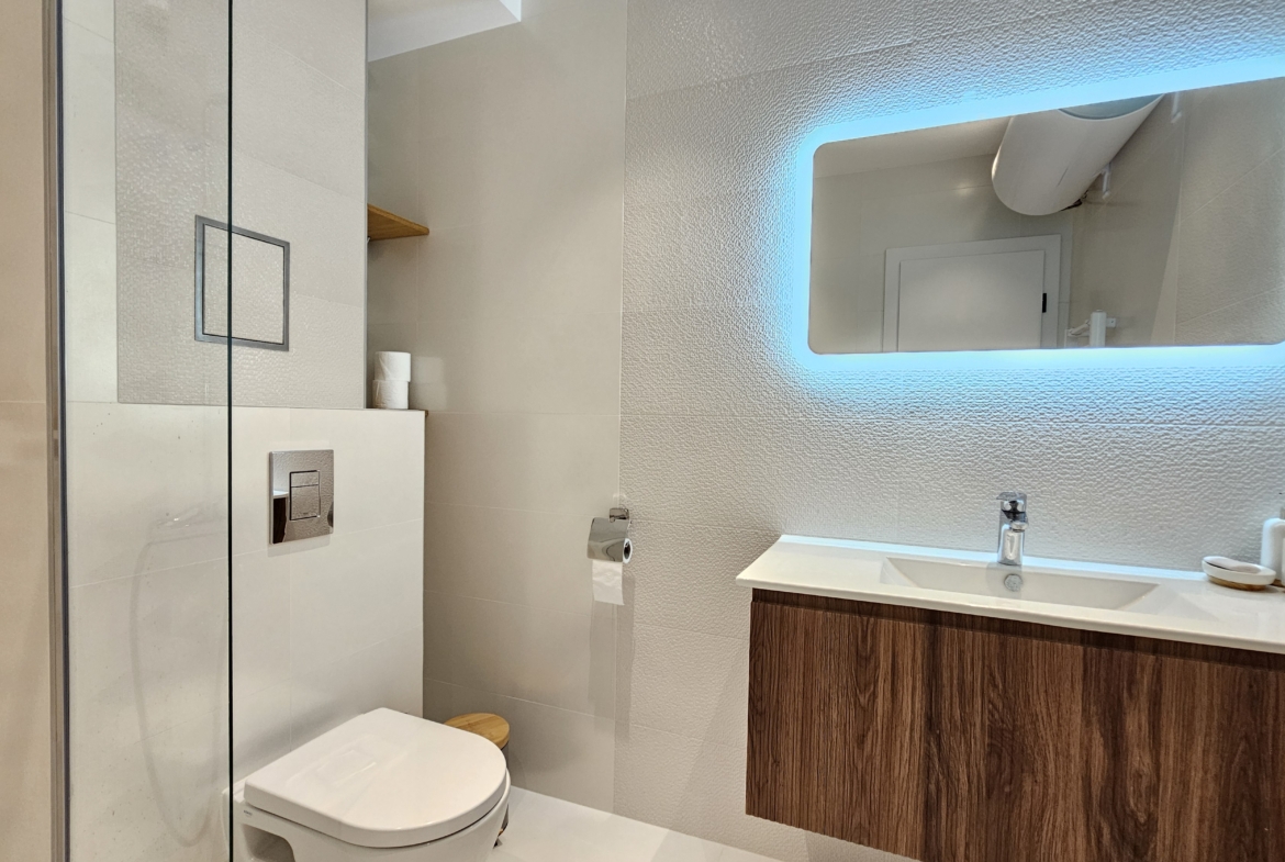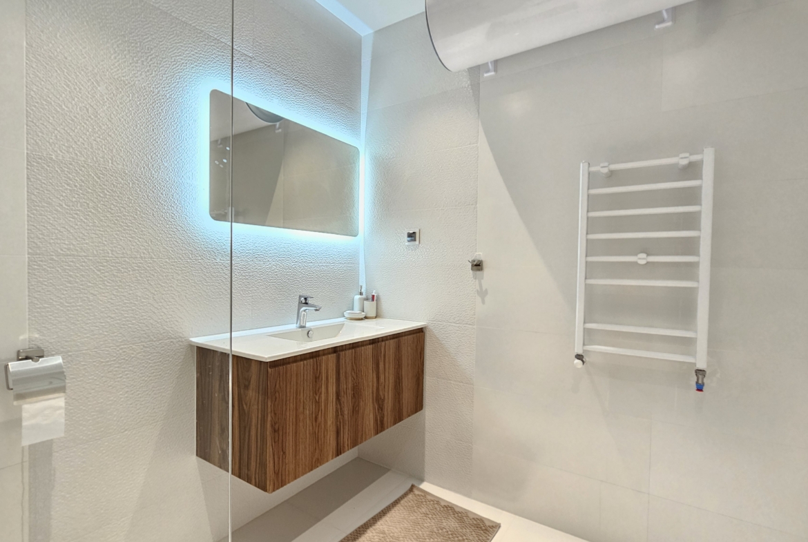 -The bathroom is spacious and functional, with a shower cabin