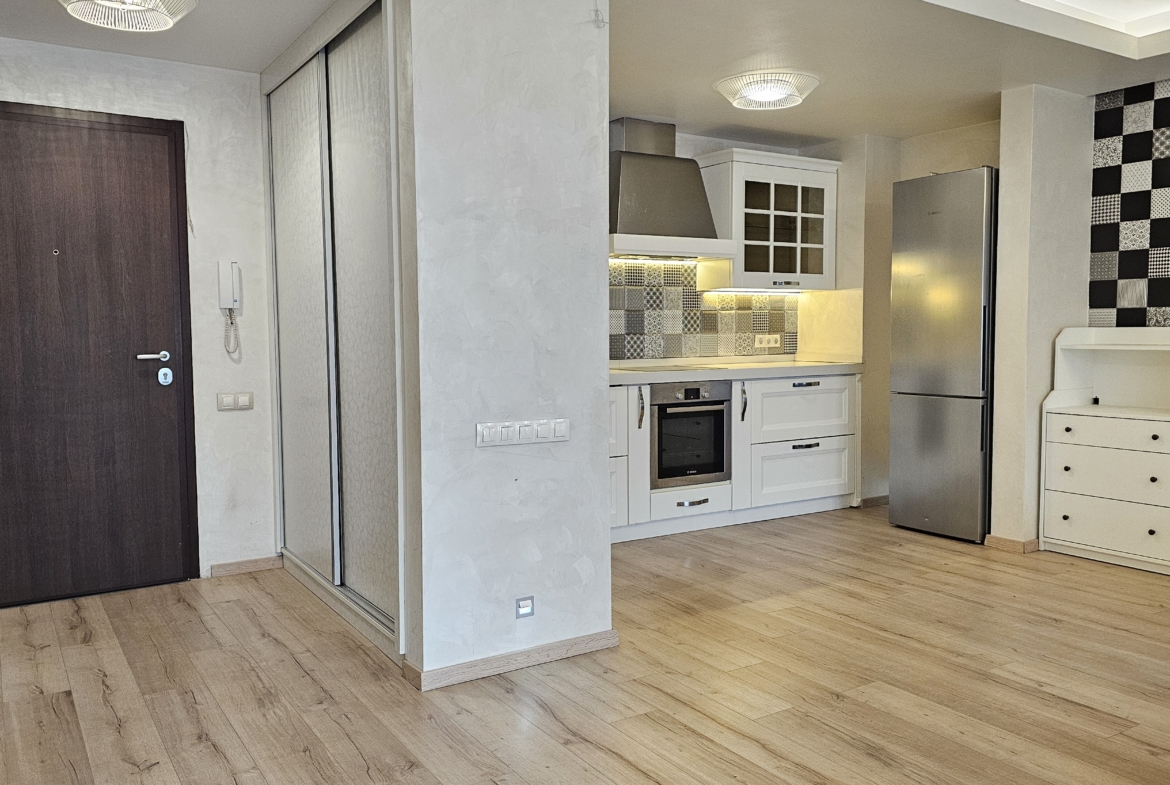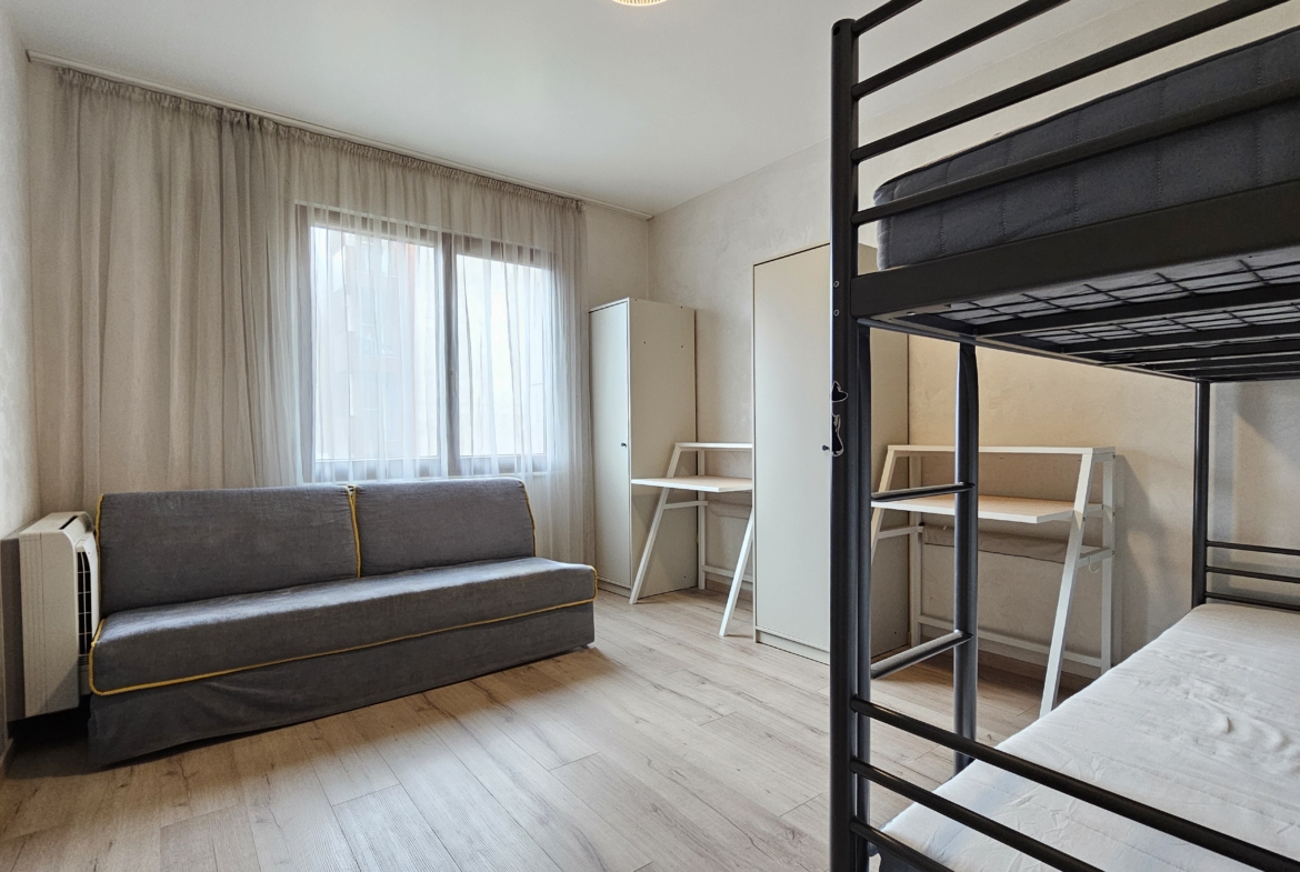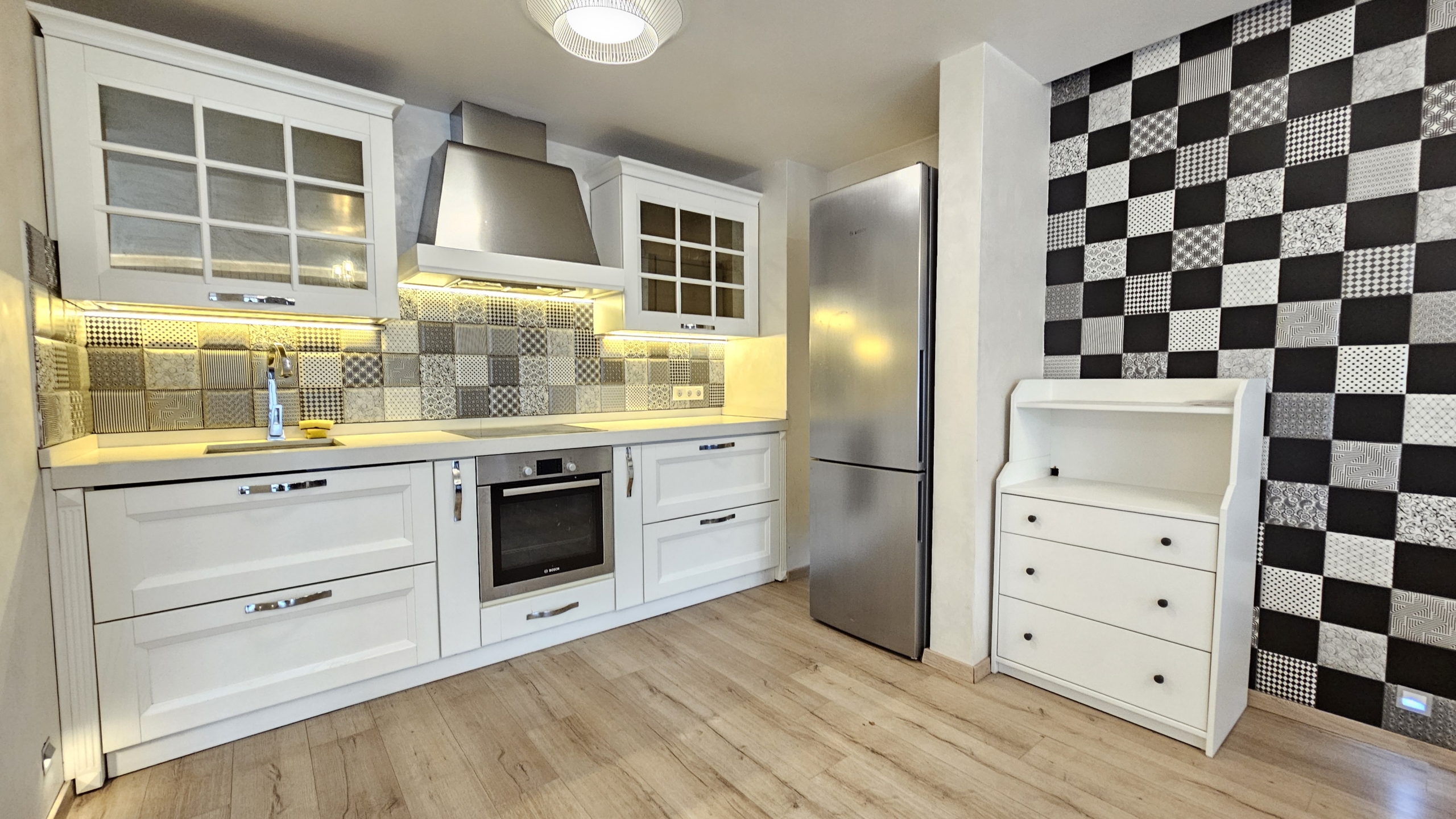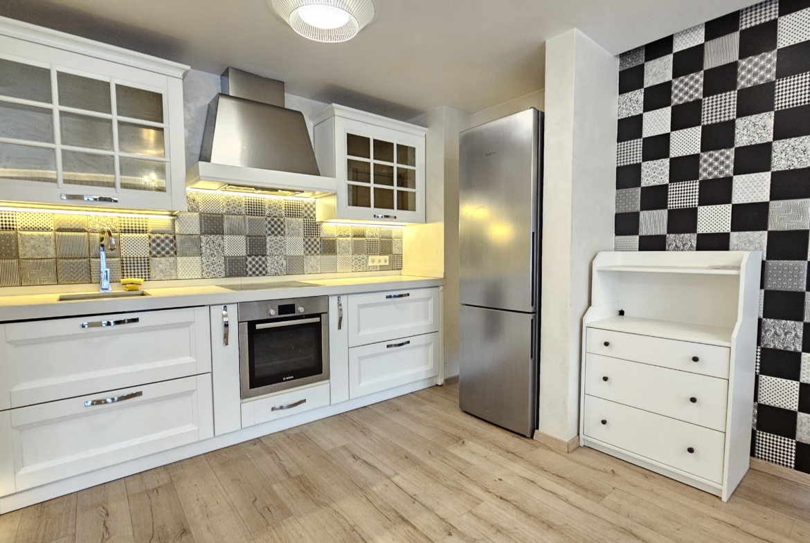 The apartment is fully furnished with attention to detail and equipped with all necessary electrical appliances. The large windows and southern exposure provide an abundance of natural light and a pleasant atmosphere throughout the day.