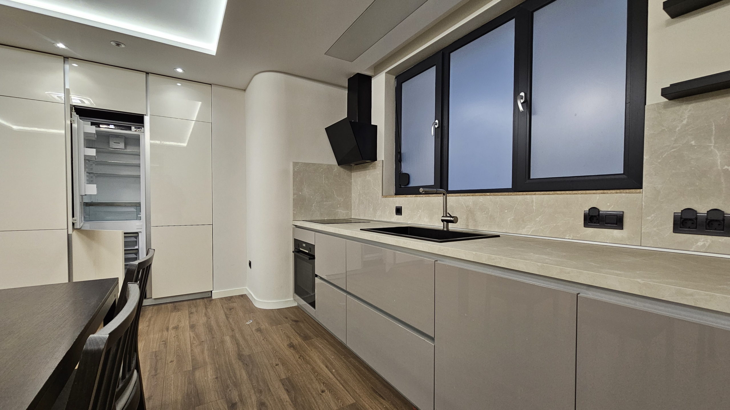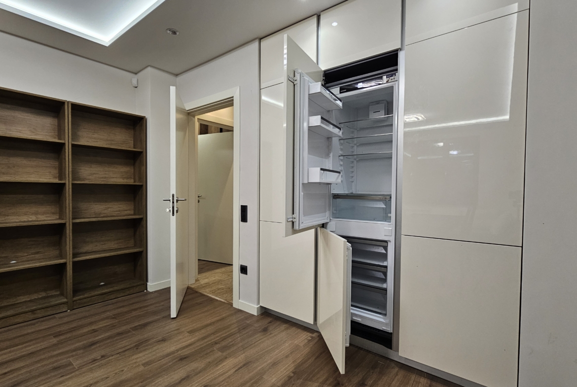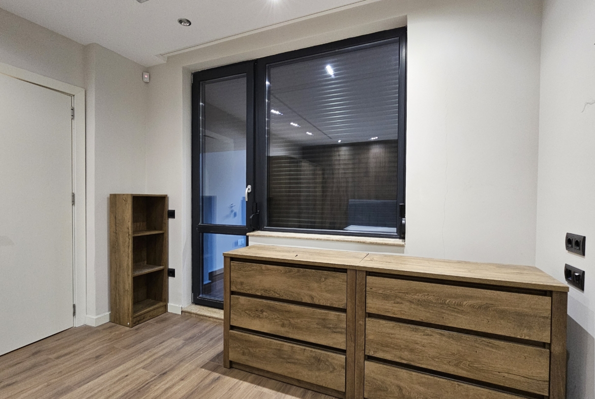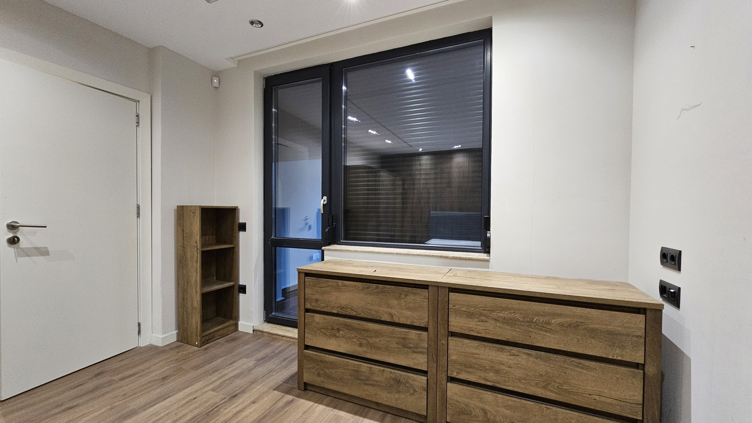 The apartment is equipped with access control, external roller blinds and luxurious common areasThere is a possibility of renting above-ground garage with two parking spaces (40 sq m in total) for €150 per month.