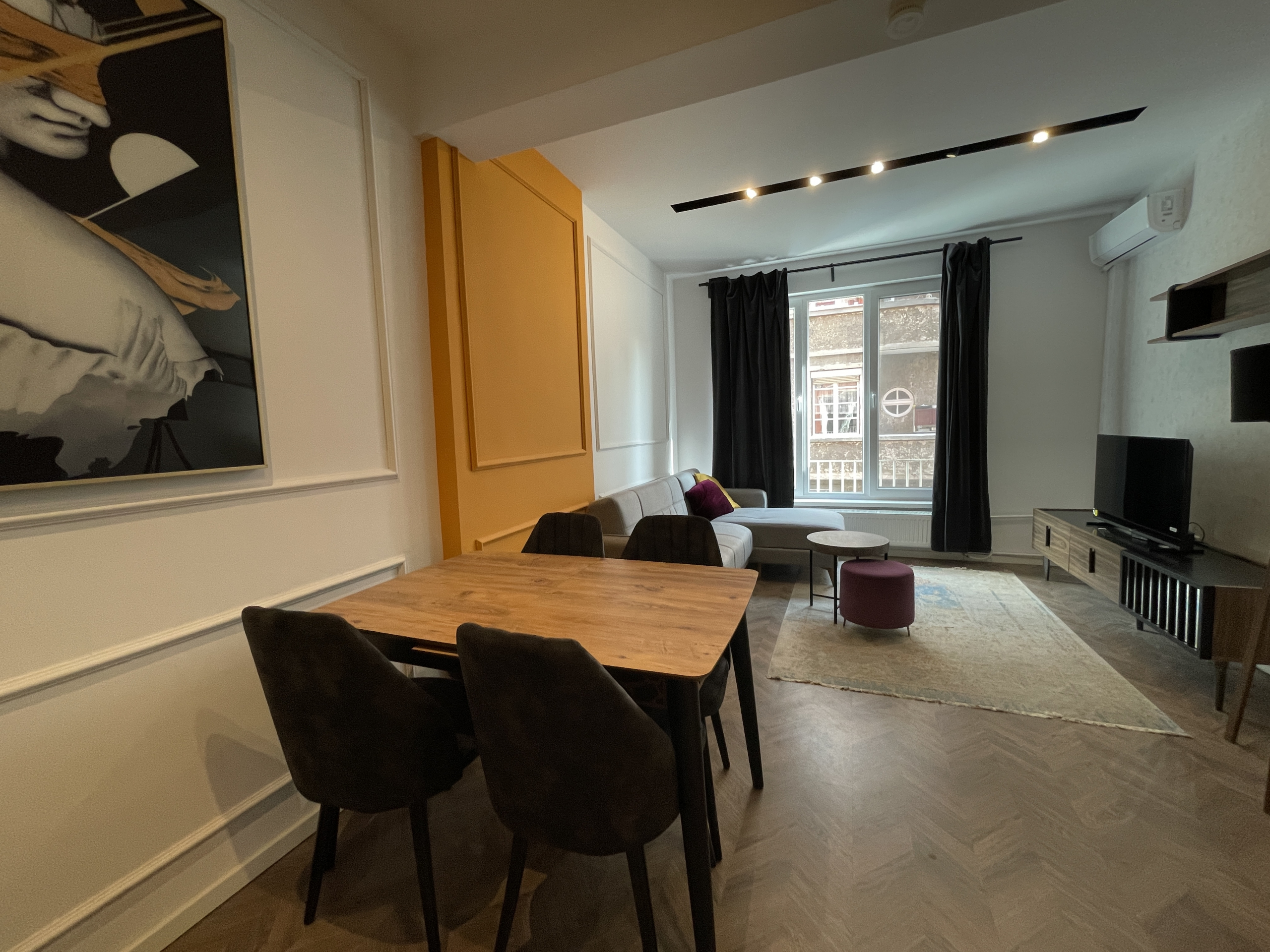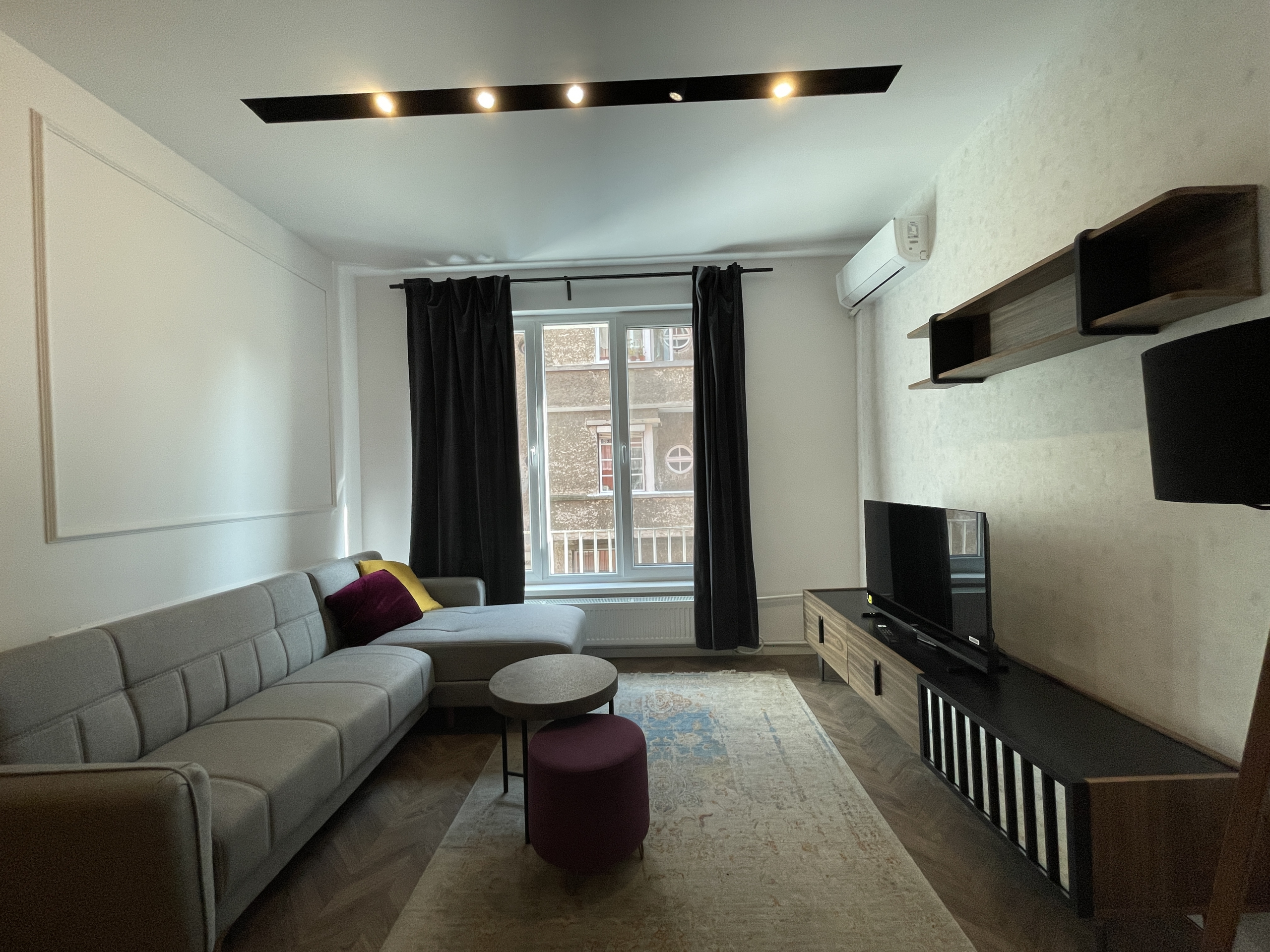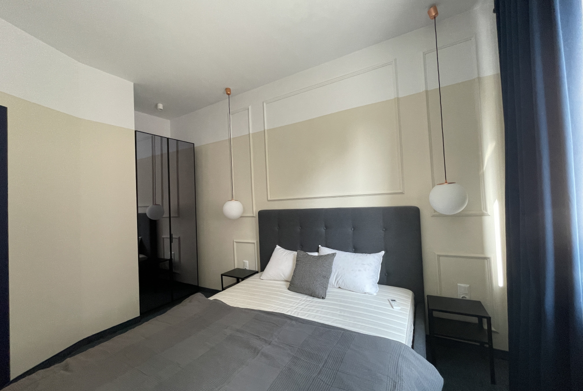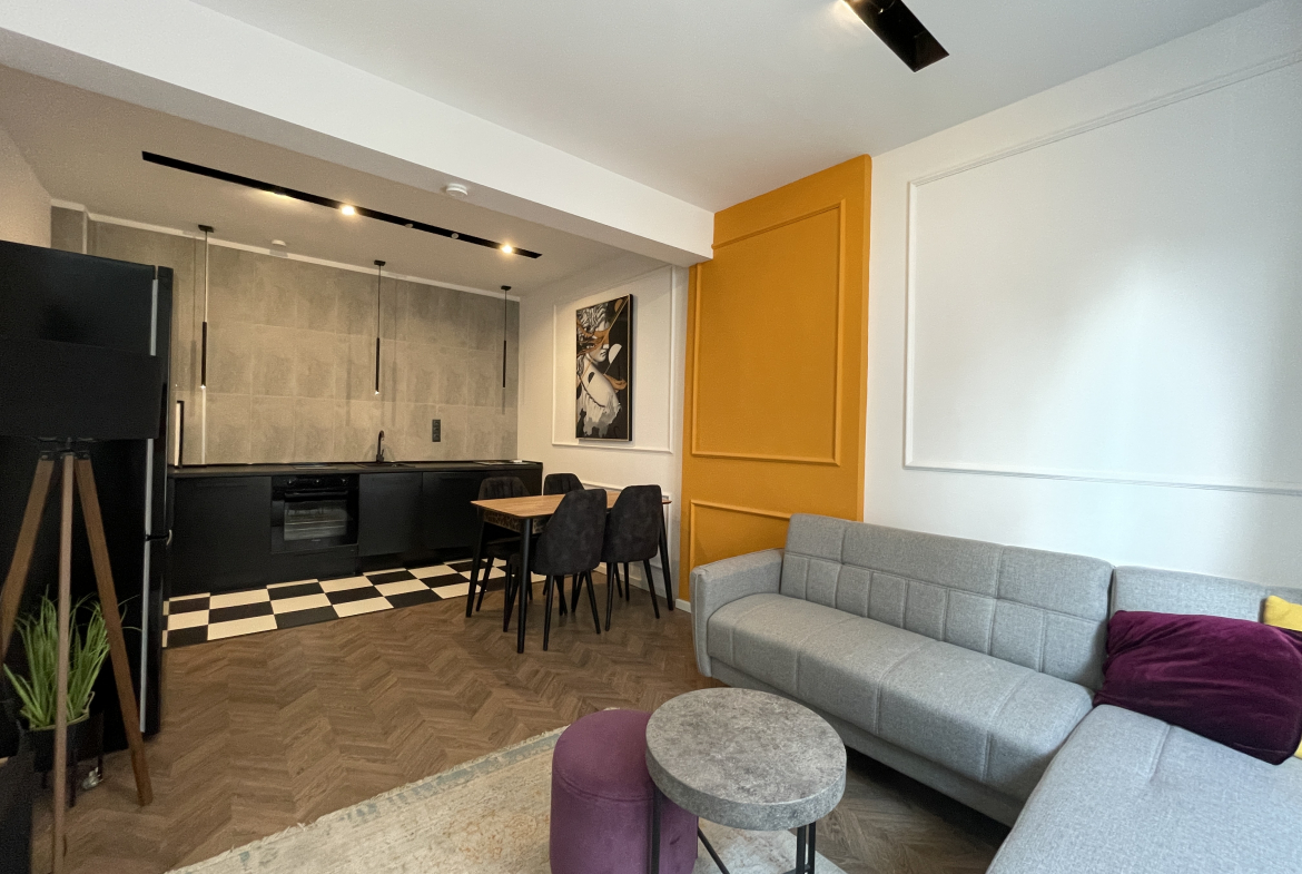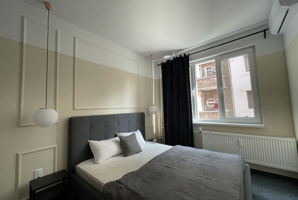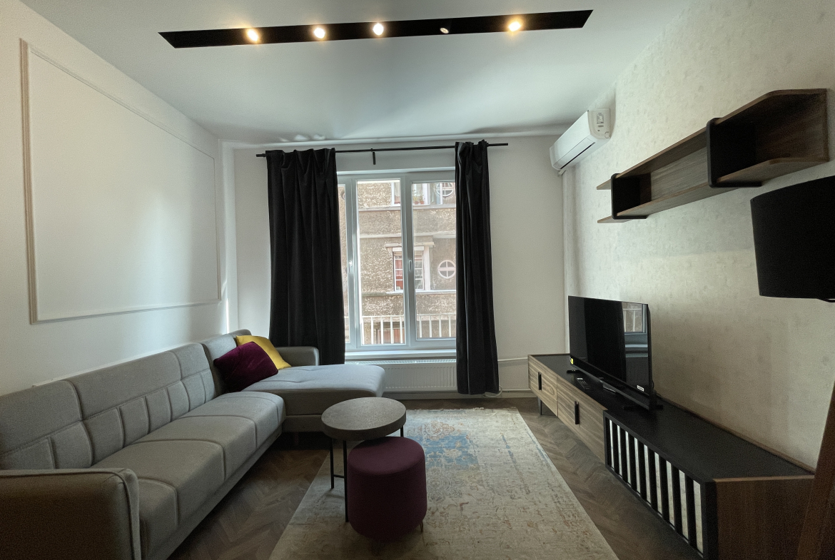 Bright newly furnished apartment in a TOP location in the center of Sofia. The apartment has an area of 69 square meters, functionally divided into a living room with a fully equipped kitchen, 2 bedrooms, 1 bathroom with a toilet and a terrace with a pleasant city view. Newly furnished with attention to every detail! Excellently maintained common areas!