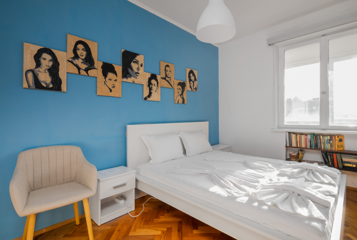 Aртистичен едностаен апартамент с площ от 55 кв.м., разположен в ТОП центъра на София, на бул. "Мария Луиза", само на крачки от ЦУМ и метростанция "Сердика". Имотът е с функционално разпределение, създаващо усещане за пространство и уют.