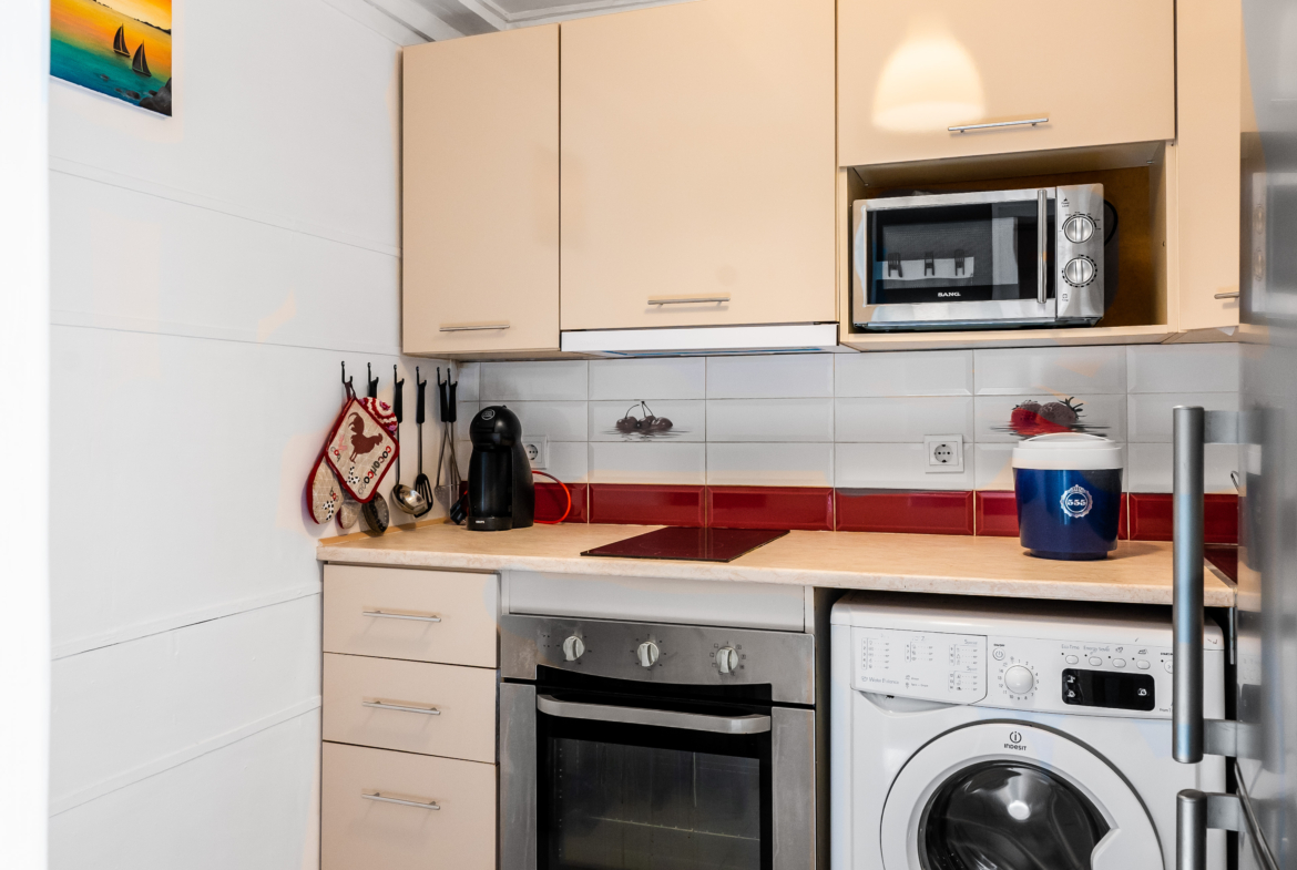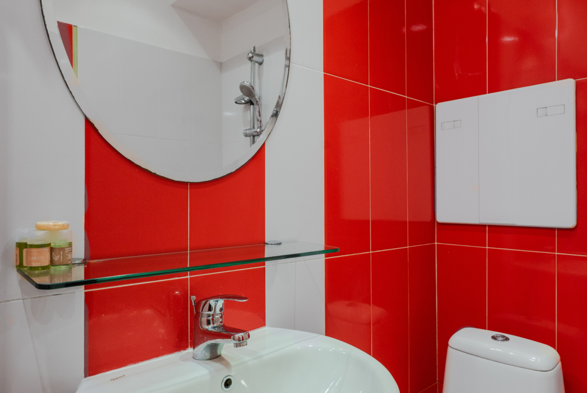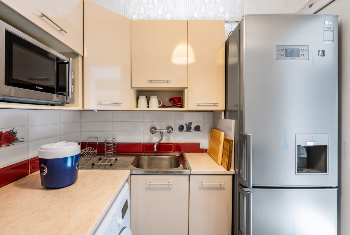 Апартаментът разполага с просторна, светла всекидневна с интегрирана спална зона, декорирана в елегантен и съвременен стил, съчетаващ уют с артистичен привкус. Кухнята е самостоятелна и напълно оборудвана с всички необходими електроуреди и посуда, осигуряващи удобство и комфорт за всяко домакинство. Банята с тоалетна е стилна и практична, а от балкона се открива приятна гледка.
