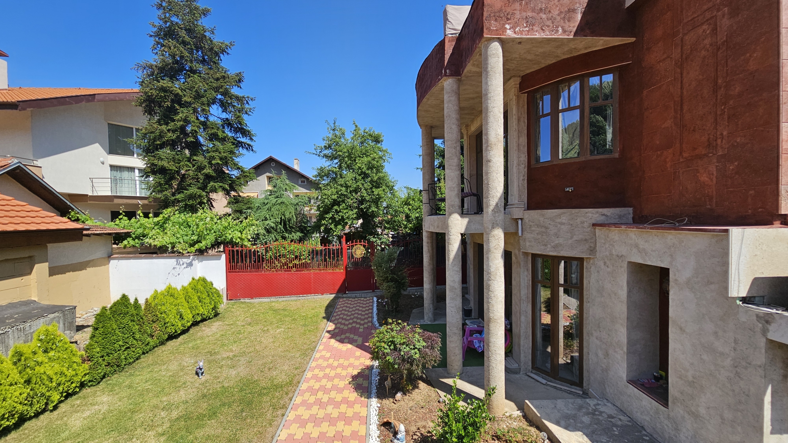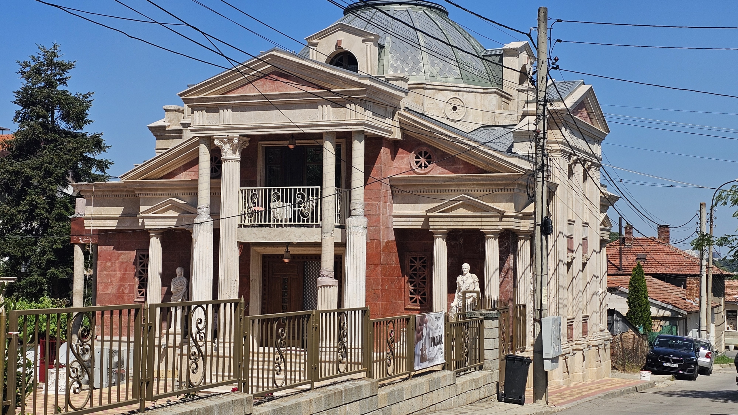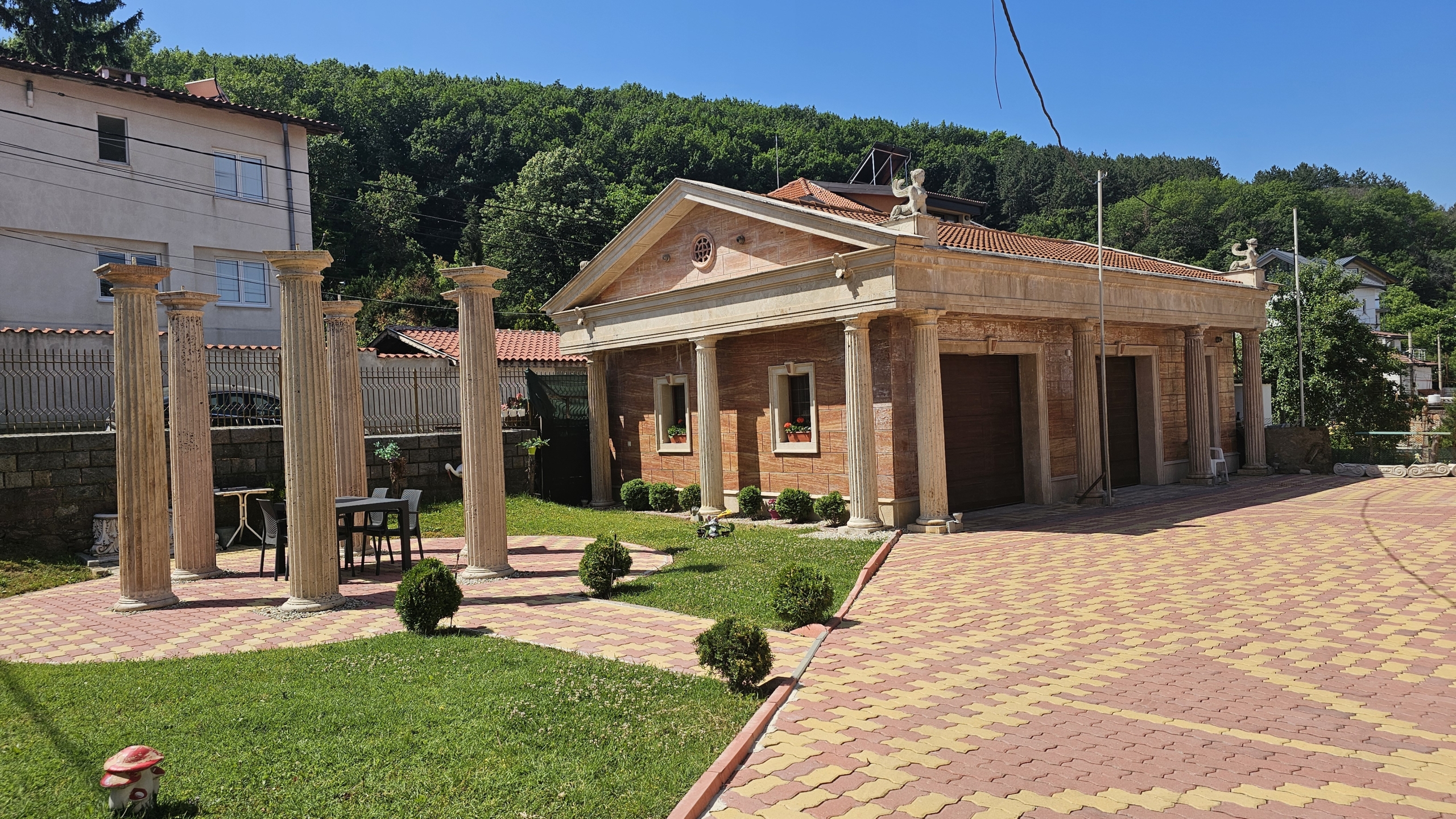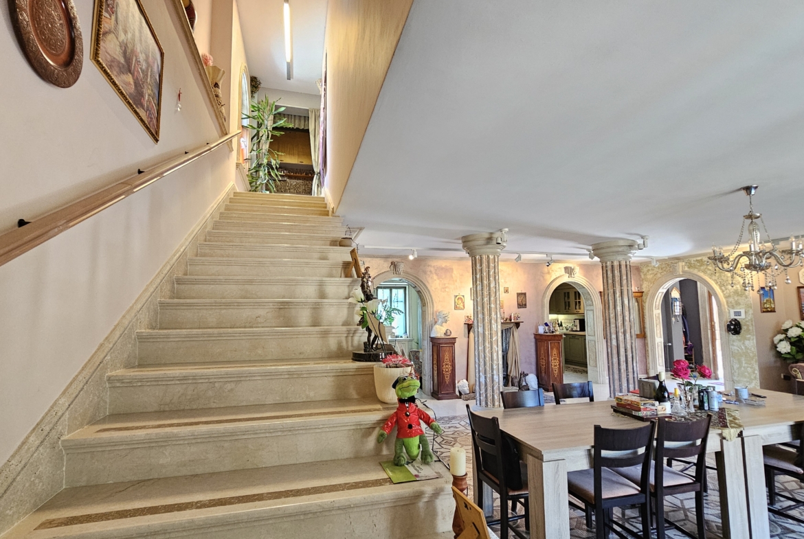 Изключителен имот с характер – луксозна къща в римски стил, разположена в тих и престижен район с бърз достъп до града. Съчетава елегантна архитектура, висококачествени материали и впечатляващи удобства, което я прави идеален избор както за живеене, така и за бутикова инвестиция.