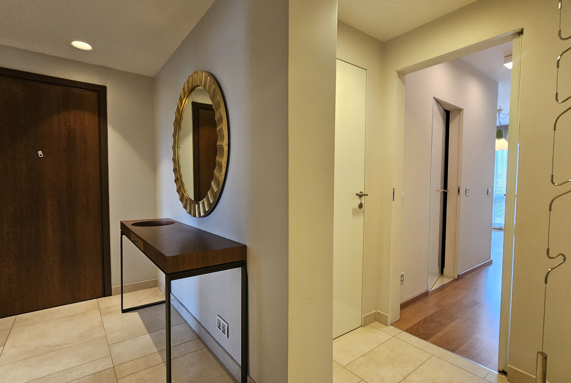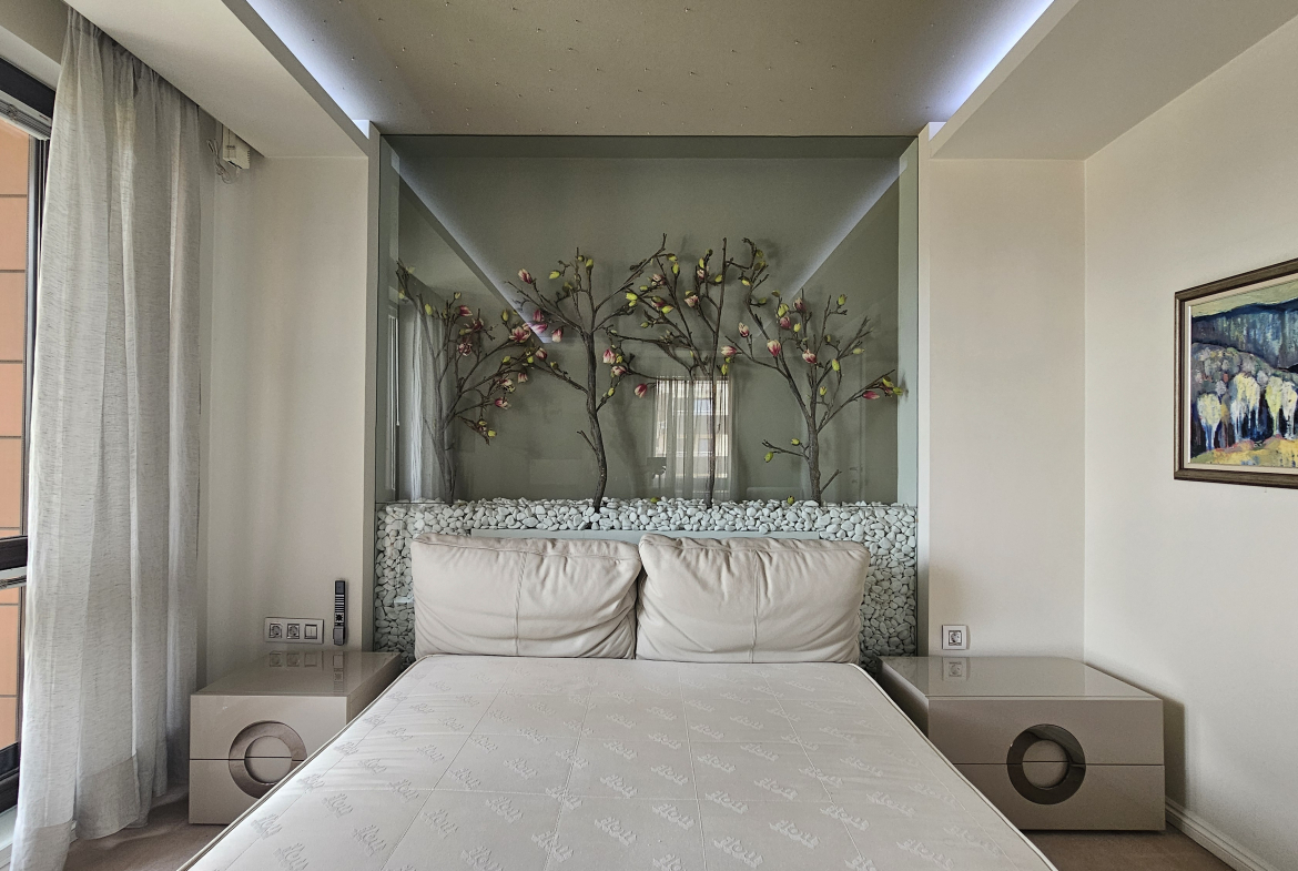 Апартаментът е стилно и функционално обзаведен, готов за незабавно нанасяне, в модерна сграда с портиер, който осигурява допълнителна сигурност и удобство за жителите. Апартаментът е напълно обзаведен и оборудван, като таксата за поддръжка се заплаща отделно.
