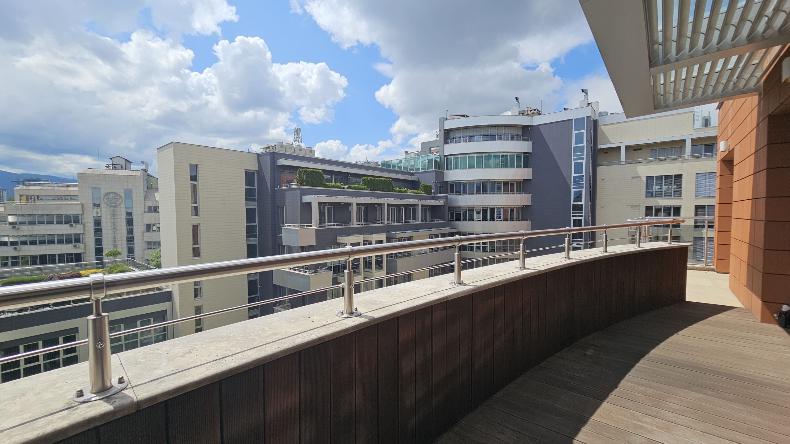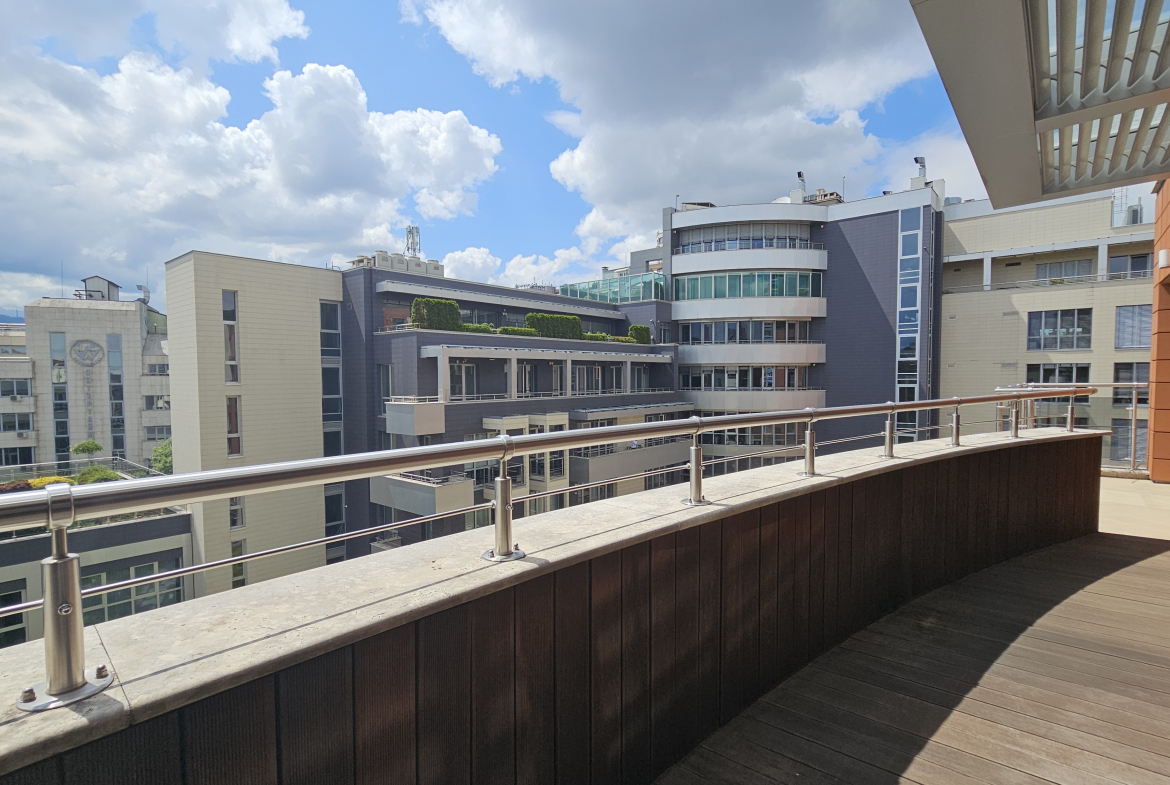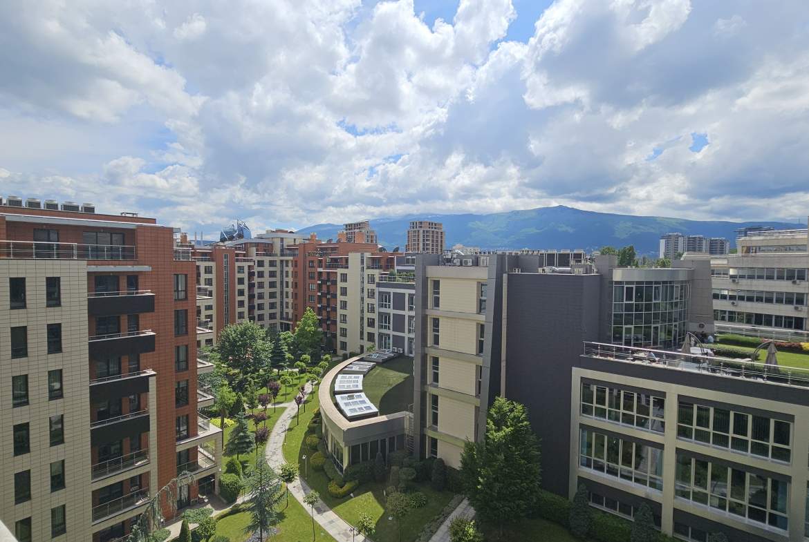 • Три тераси: Апартаментът разполага с три тераси, които предоставят възможност за отдих на открито и наслаждаване на прекрасните гледки към Витоша и вътрешните градини в комплекса