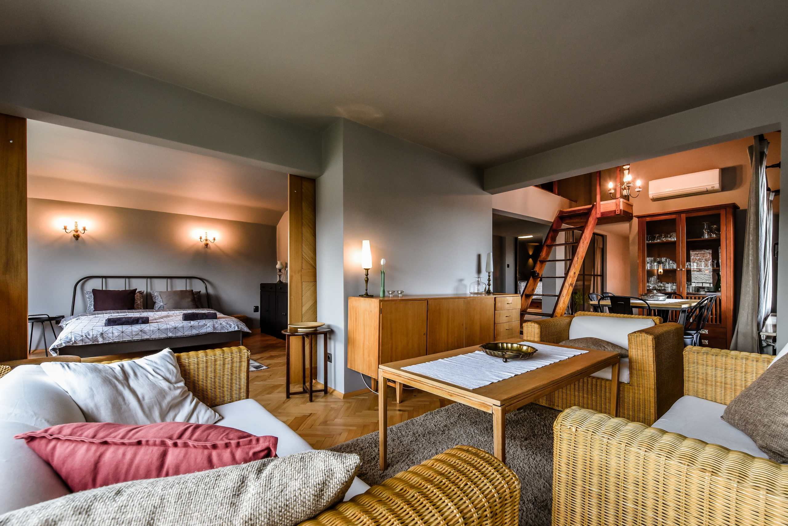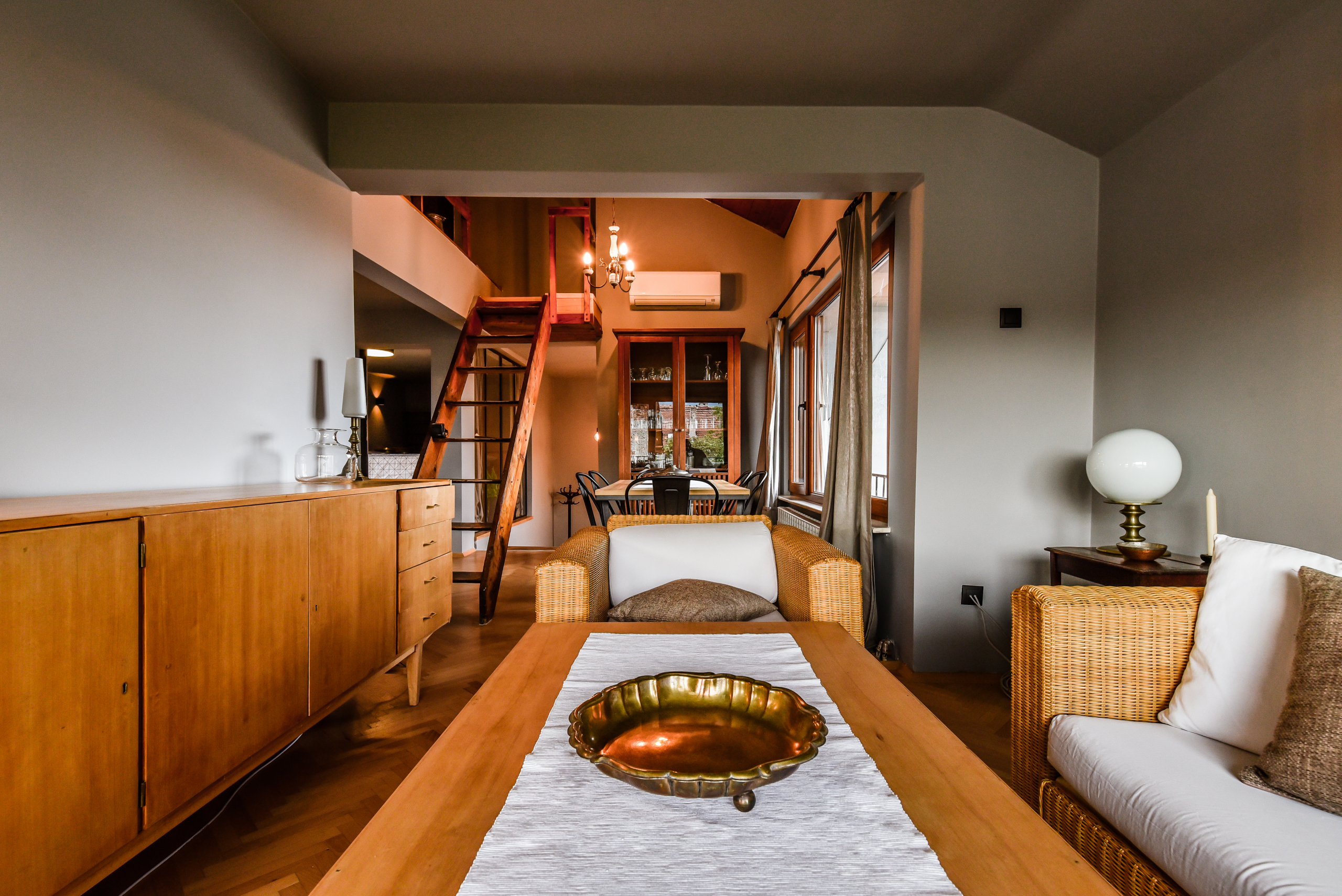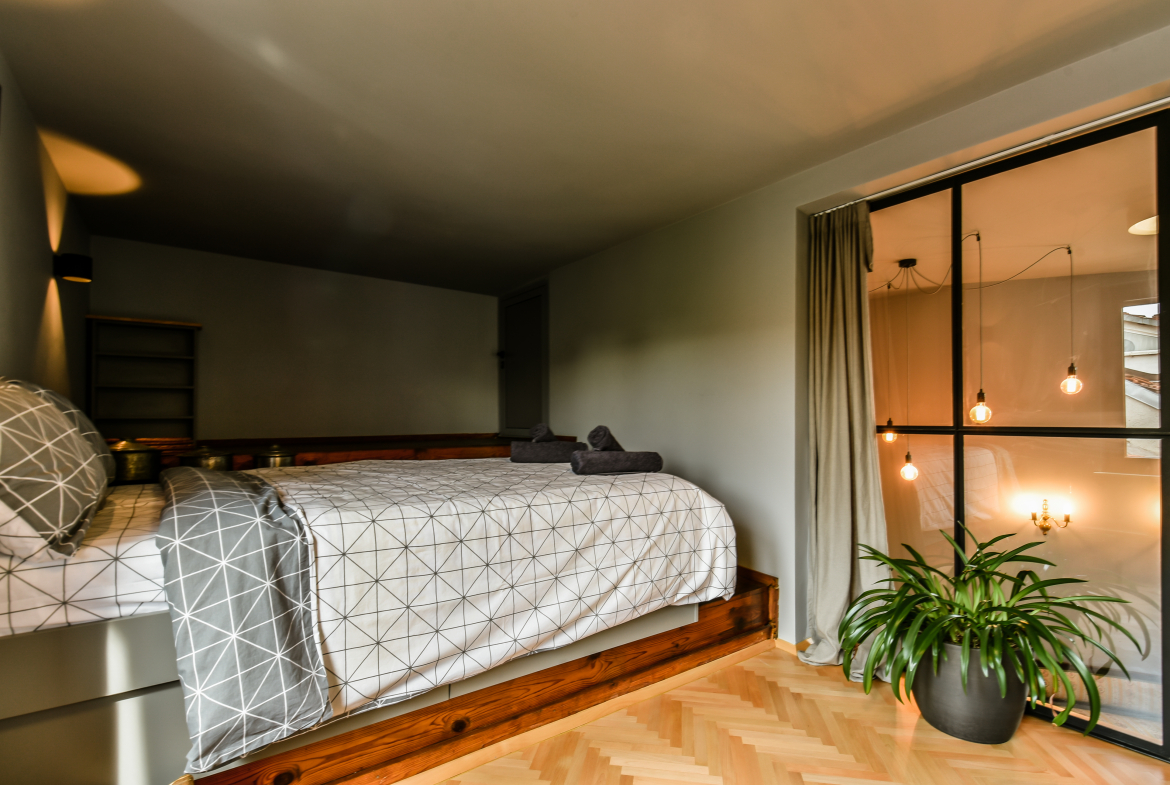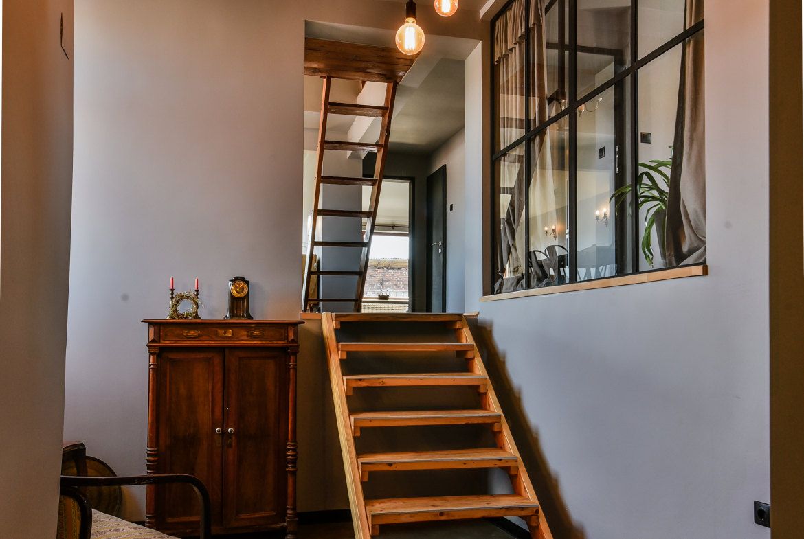 Модерно обзаведен тризонет в идеалния център на София с артистичен интериор! Жилището обединява стил, простор и функционалност на три нива със следното разпределение: