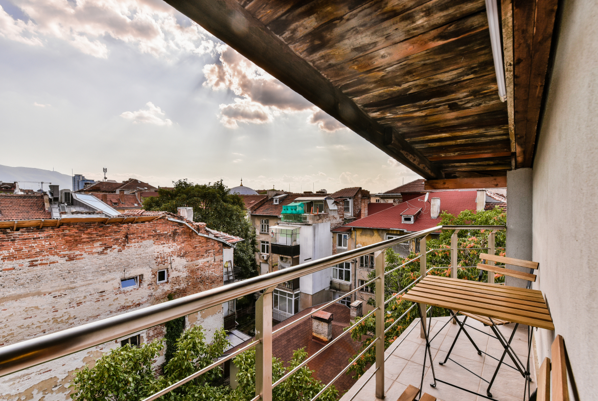 • Достъп до хубав балкон, оборудван с масичка и столове