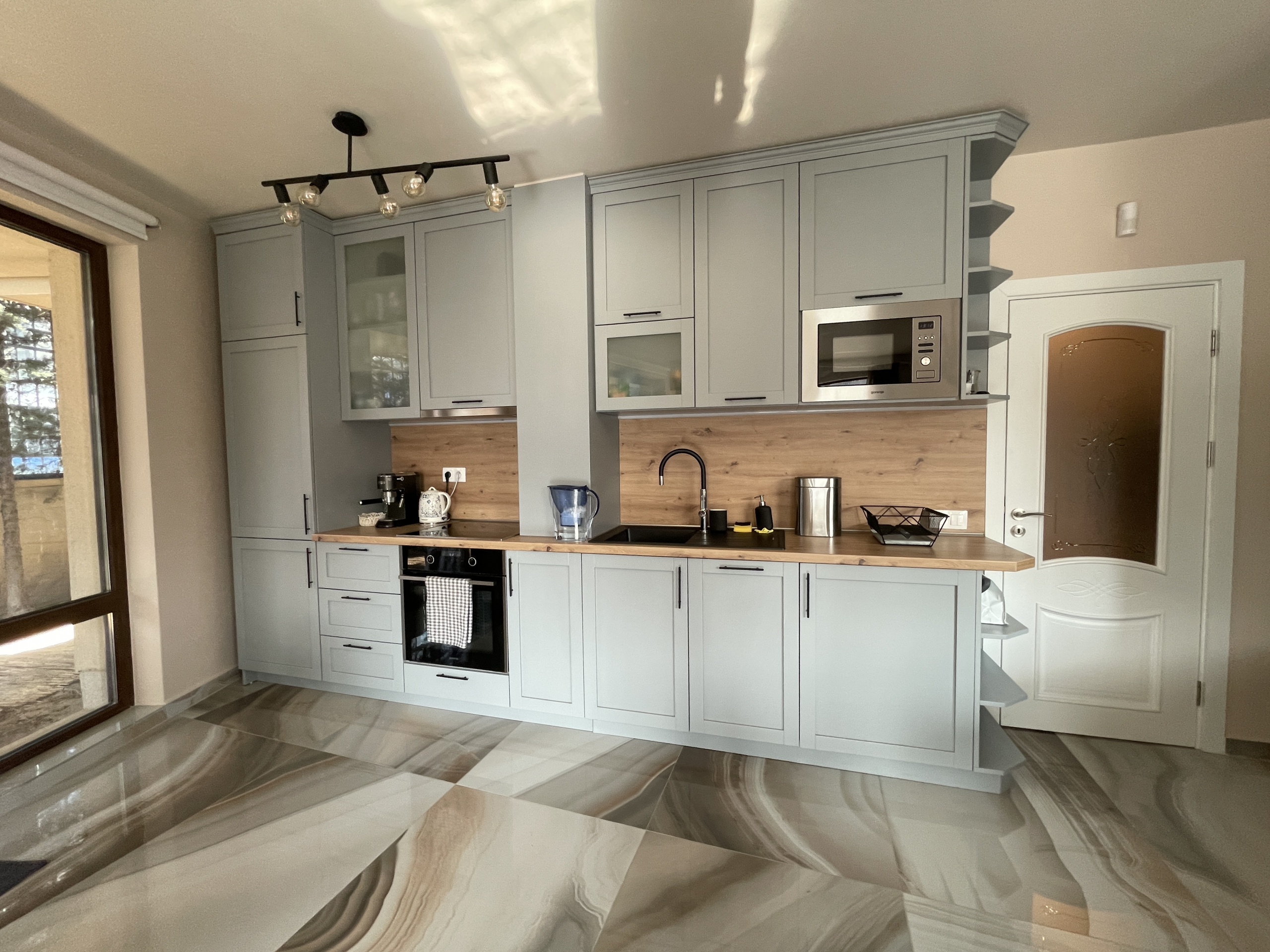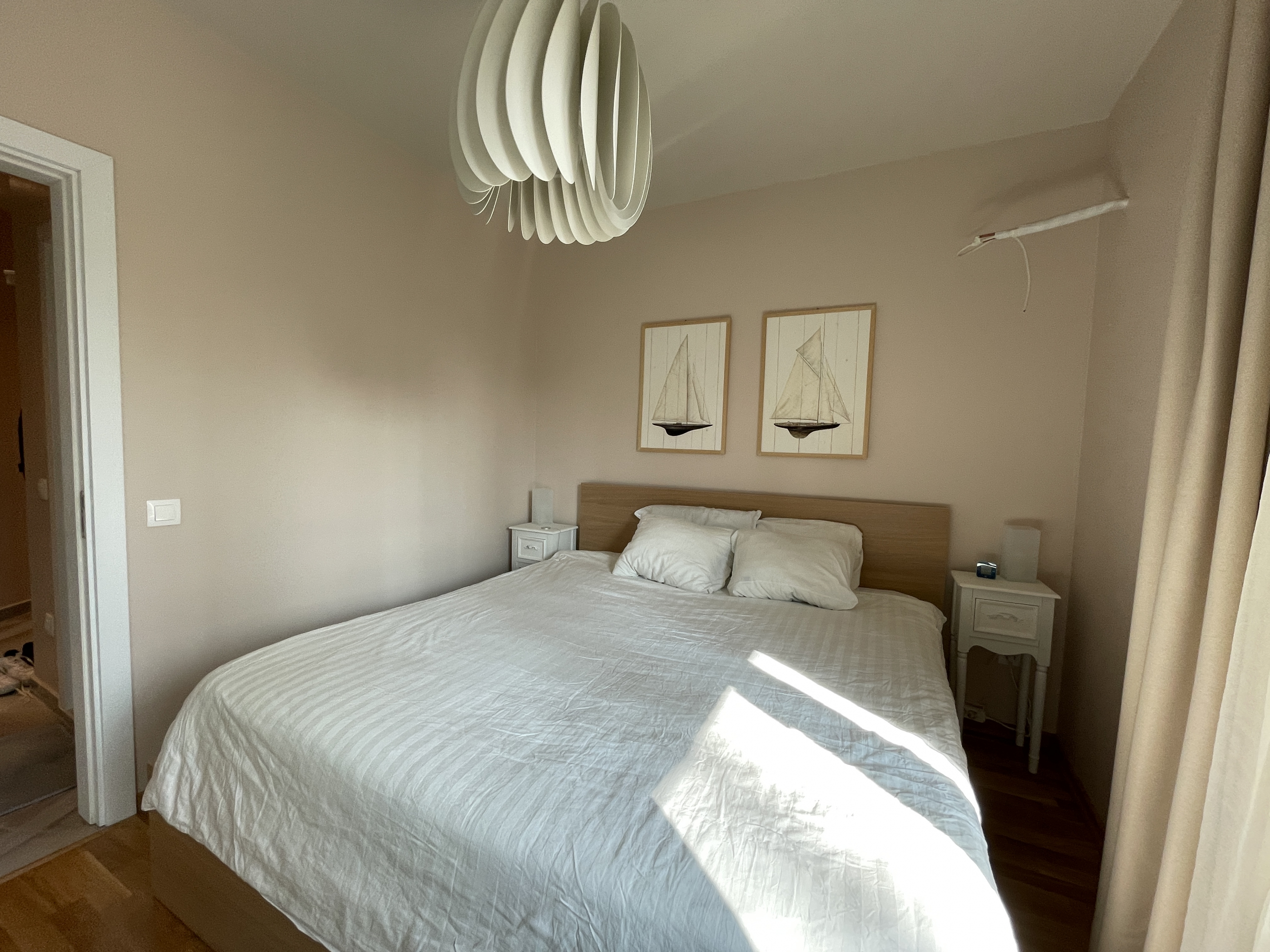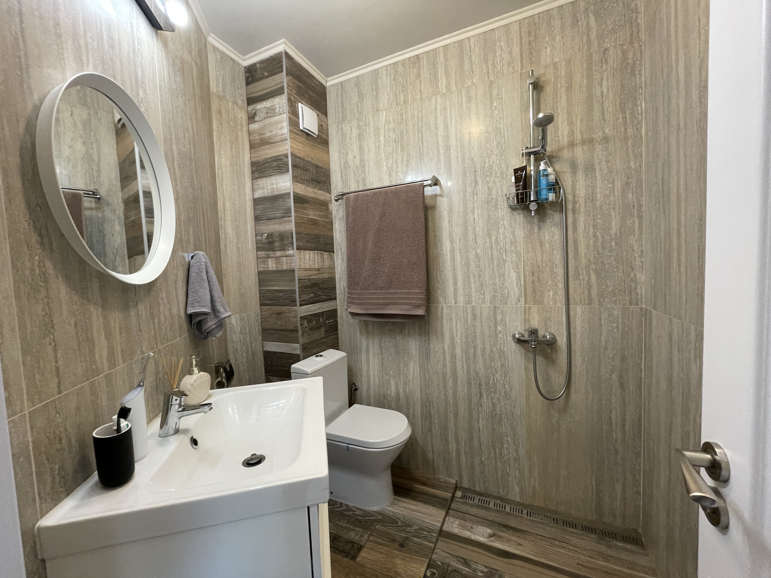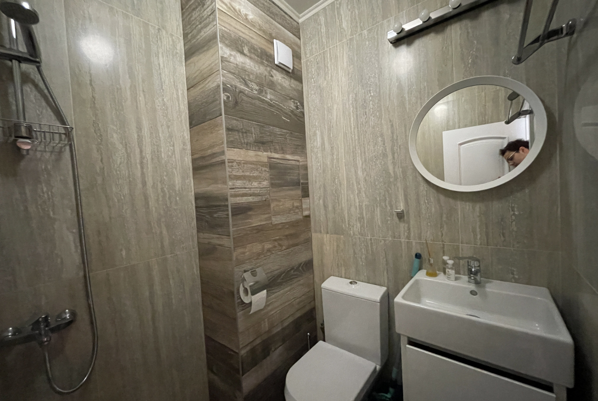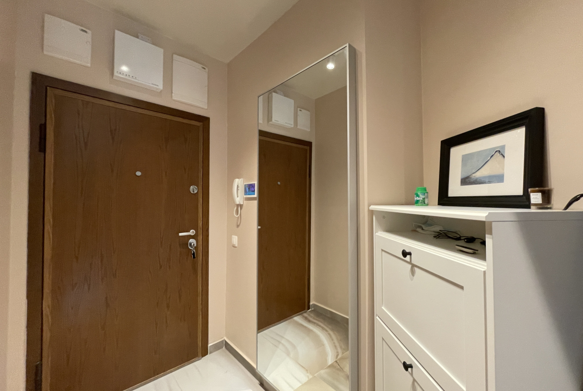 Уютен и модерно обзаведен апартамент в индустриален стил, намиращ се в новa луксозна сграда от 2018 година. Апартаментът е светъл и просторен като разполага с площ 82 кв.м., функционално разпределена на коридор, всекидневна с кухненски бокс, 2 спални и 2 бани с тоалетна. Жилището се намира на партерен етаж от затворен жилищен комплекс, което осигурява директен достъп до прилежащ уютен двор. Възможност за наемане и на подземно паркомясто - 100 евро!