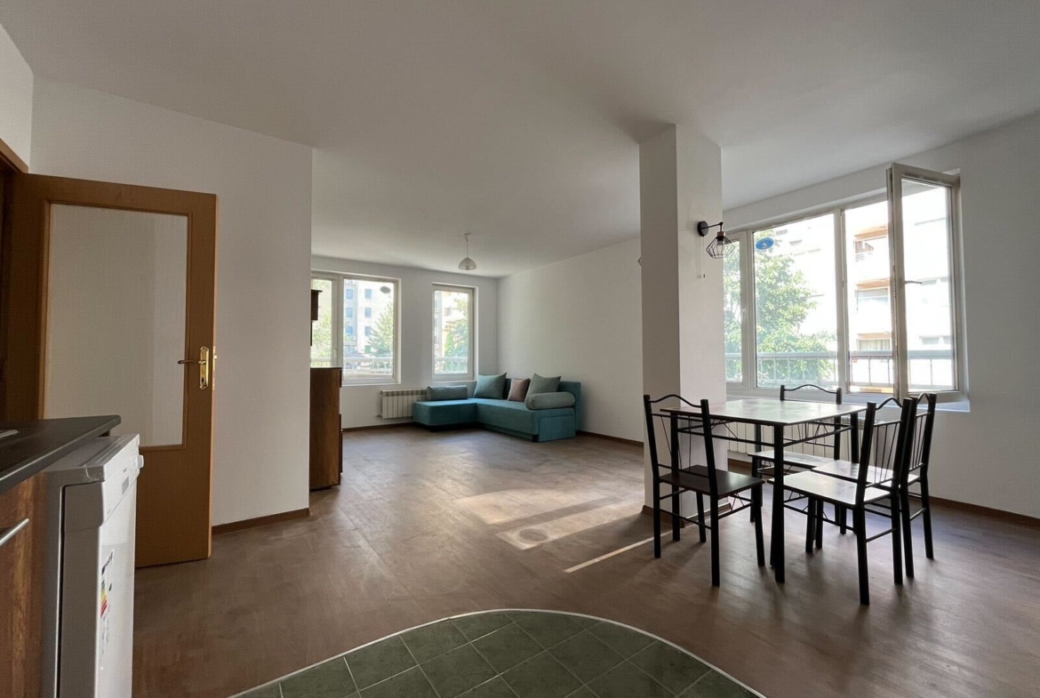 Уютен и просторен тристаен апартамент, разположен в един от най-желаните софийски квартали- ж.к. Стрелбище. С площ от 95 кв. м., жилището предлага комфорт и функционалност в едно със своето разпределение- коридор, просторен хол с кухня и трапезария, 2 спални, които се предлагат напълно обзаведени, баня с тоалетна, мокро помещение и тераса. Към апартамента принадлежи и голямо мазе, подходящо за съхранение на допълнителни вещи и принадлежности, което ще бъде на разположение на наемателите.