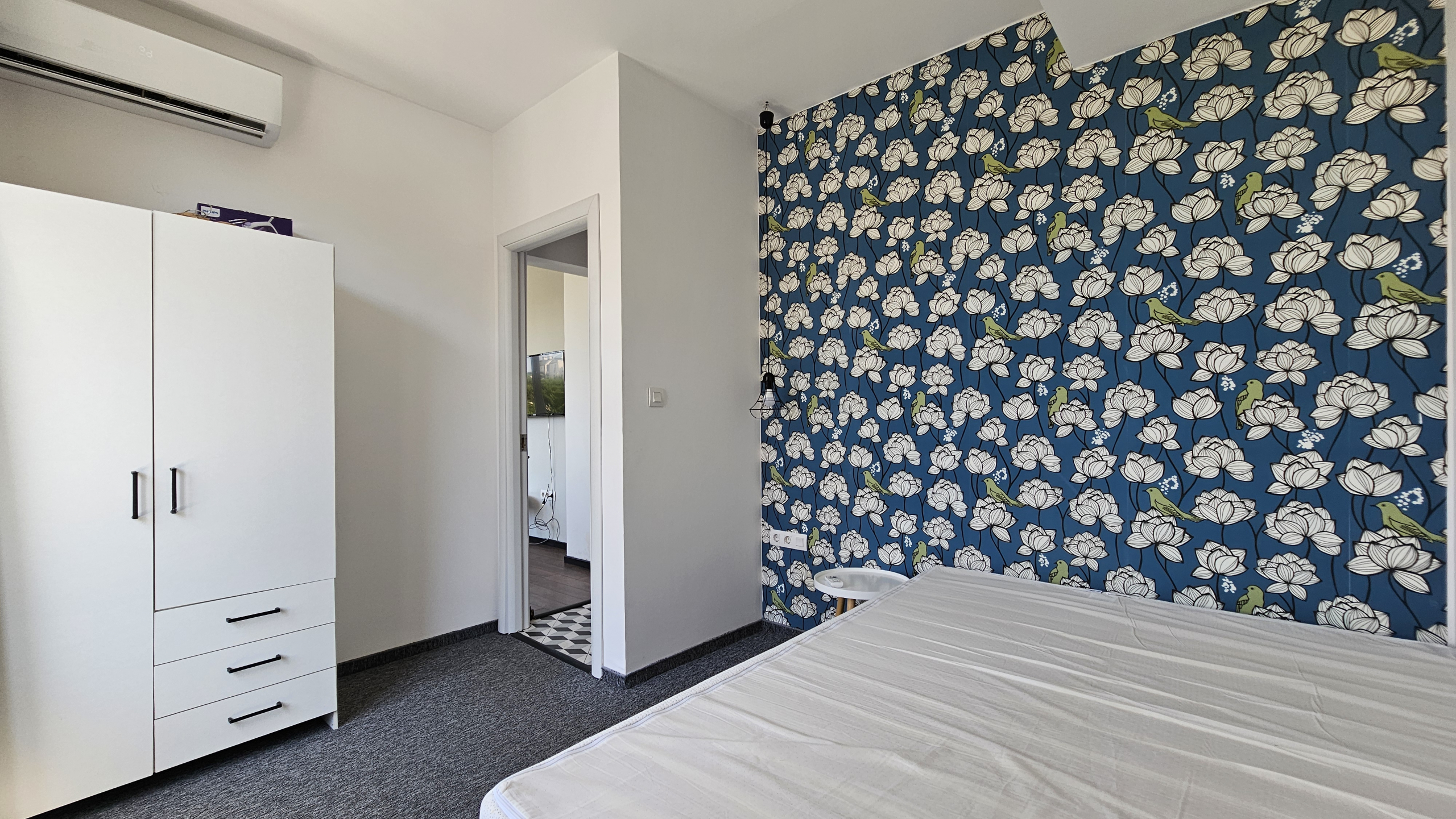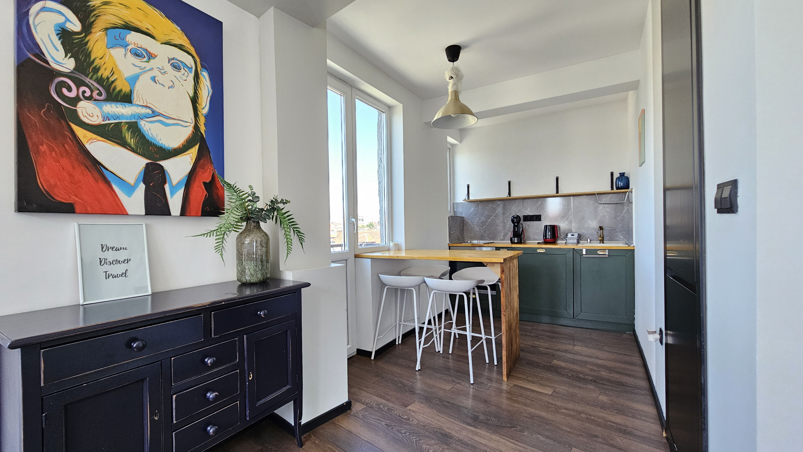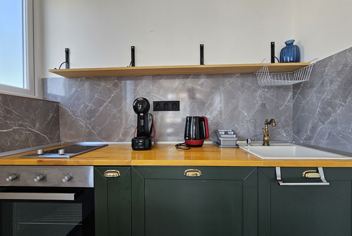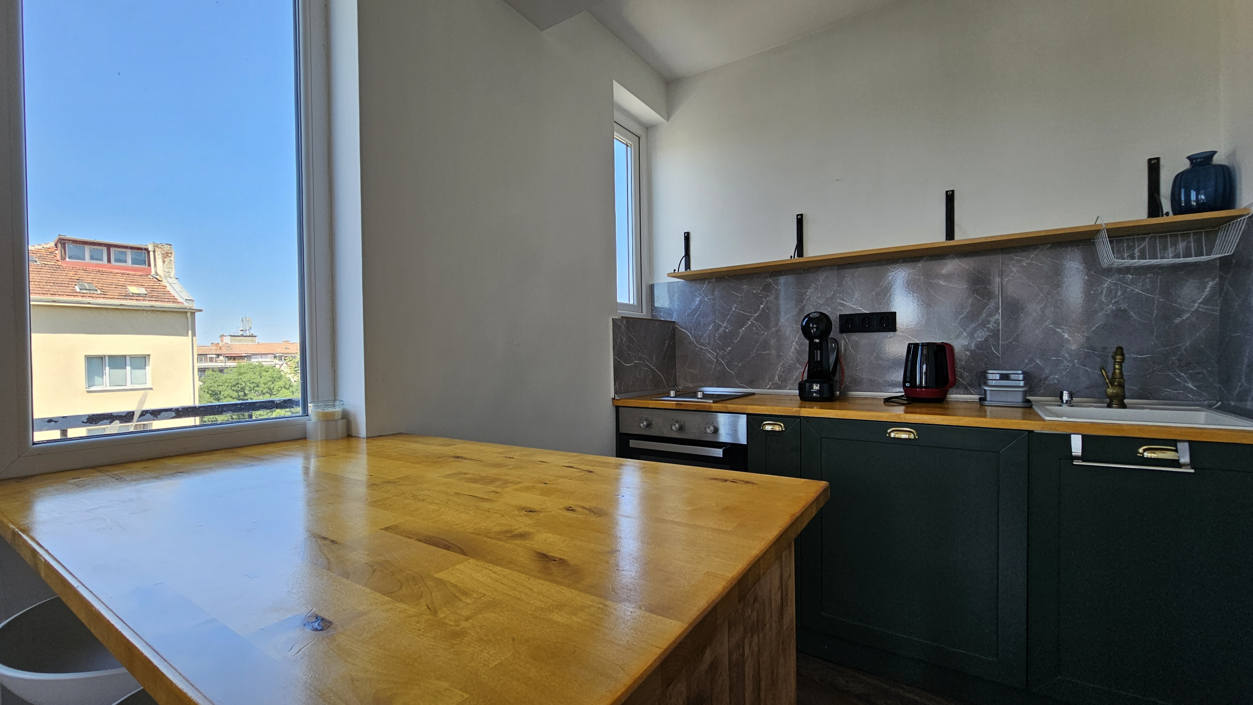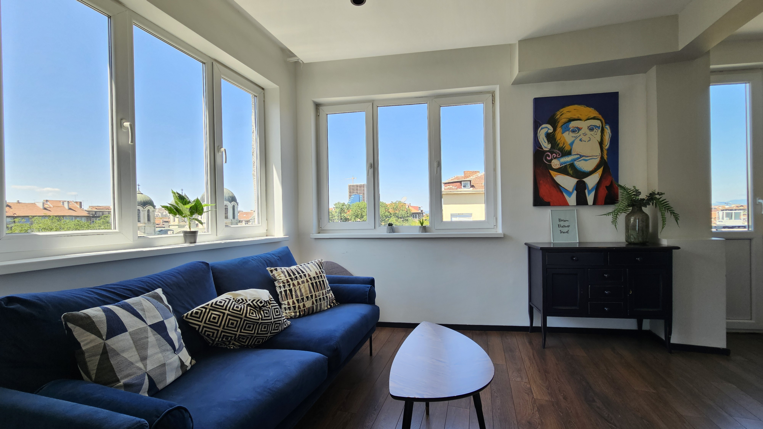 Модерно обзаведен тристаен апартамент, разположен на удобно и комуникативно място в сърцето на града до НДК и пешеходната част на бул. Витоша. С площ от 71 кв.м. апартаменът е функционално разделен на: отворена и светла дневна зона с интегрирана оборудвана кухня, две просторни спални включващи гардероб и климатик, съвременна и стилна баня, оборудвана с всички необходими удобства и тераса- перфектното място за отдих с хубава гледка.