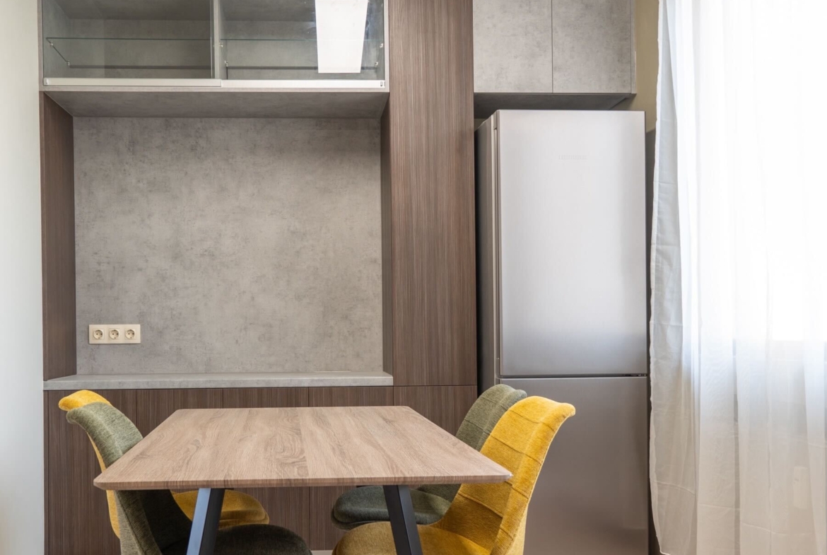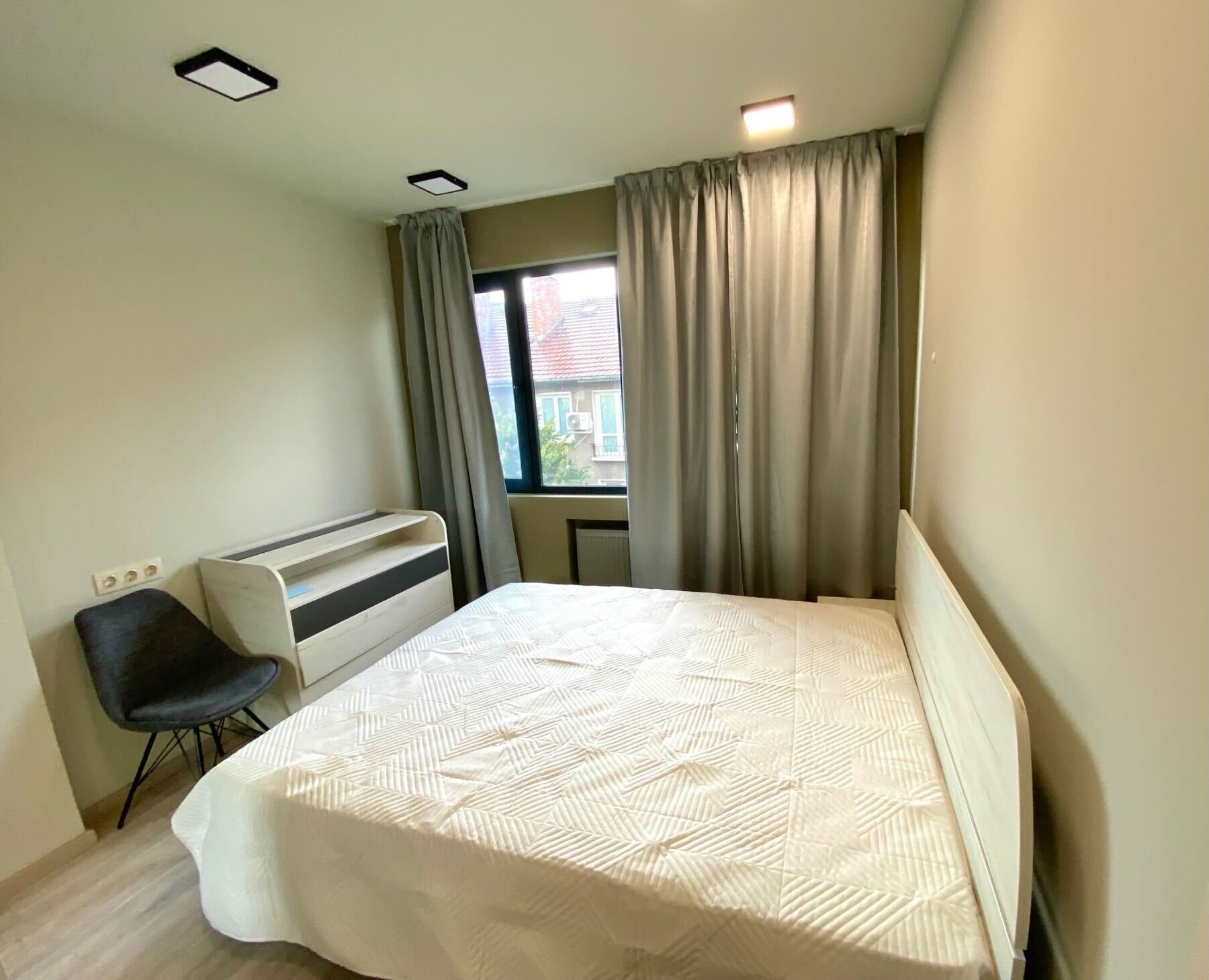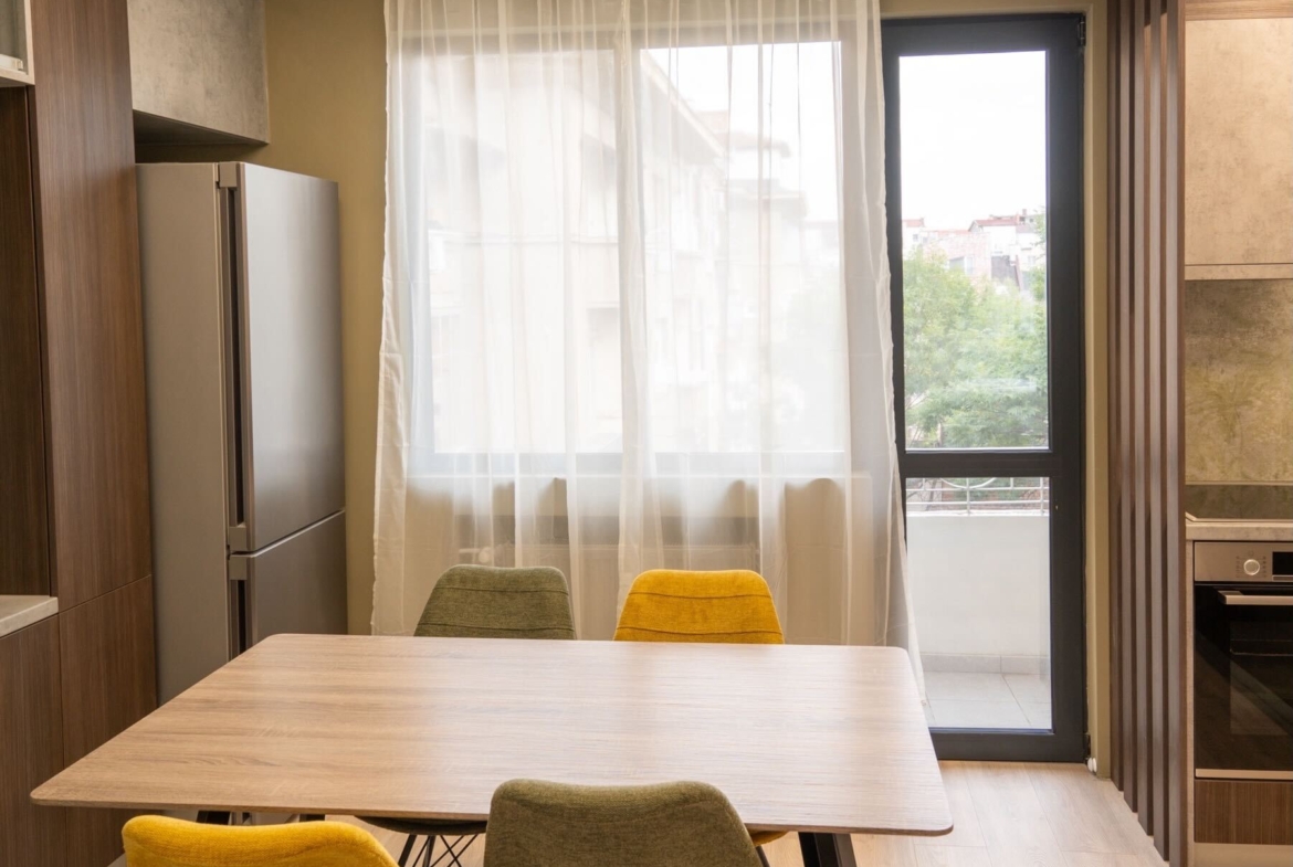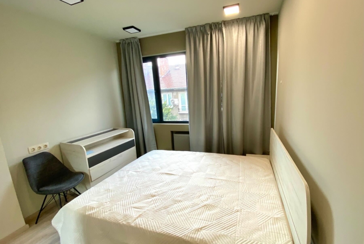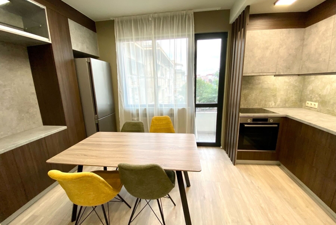 Дизайнерски обзаведен двустаен апартамент в топ центъра на София, разположен на ул. Княз Борис I, №90 – само на крачка от пешеходната част на бул. Витоша. Апартаментът е с площ от 60 кв.м и предлага удобно и функционално разпределение: светла всекидневна с преход към модерно оборудвана кухня и трапезария, стилно обзаведена спалня, съвременна баня с тоалетна и тераса с красива гледка към околностите. Жилището е изцяло новоремонтирано през 2024г и обзаведено по дизайнерски проект с висококачествени материали и всякакъв вид електроуреди включително и не само пералня, сушилна, съдомиялна и други. Оборудвано с внимание към детайла, готово да посрещне първите си наематели.
