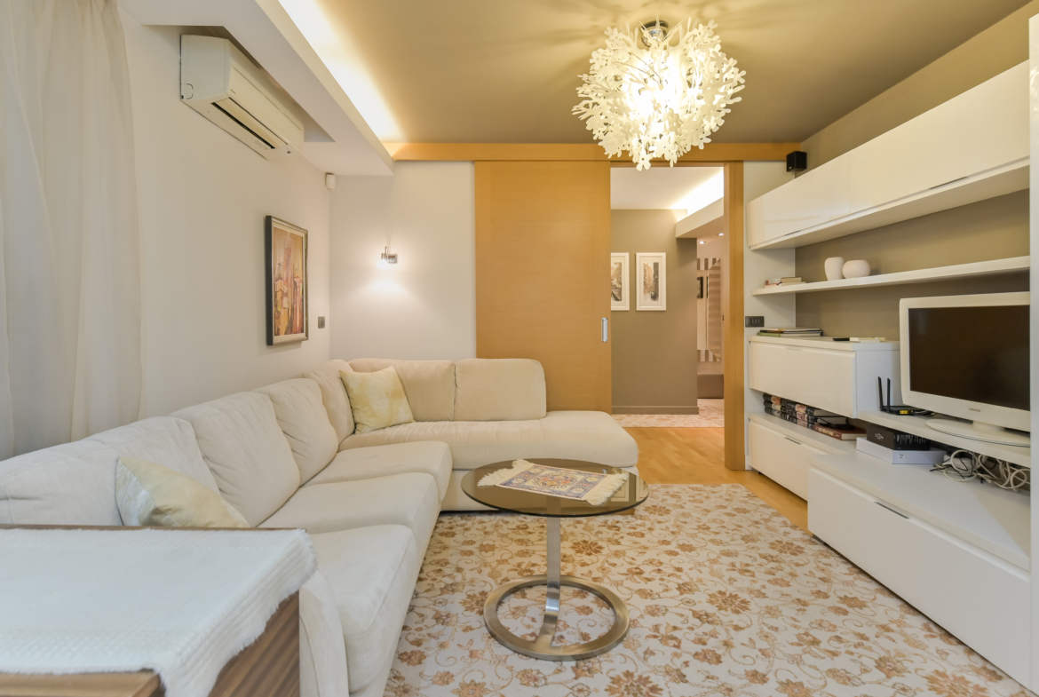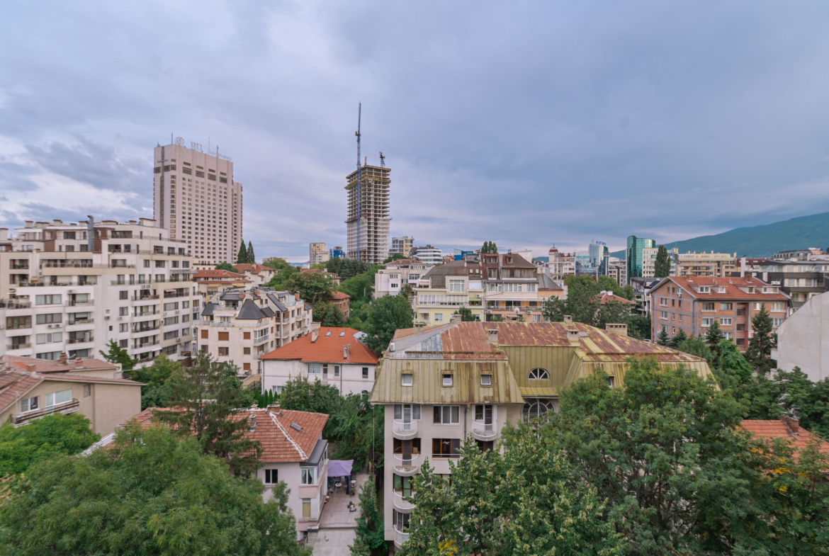 Стилно обзаведен и напълно оборудван едностаен апартамент, разположен в сърцето на един от най-желаните квартали в София – Лозенец. Жилището се намира в оживен, но изключително спокоен район, само на 8 минути пеша от зеленината на Южния парк и емблематичния Хотел Маринела. Разположен на висок етаж, апартаментът предлага впечатляваща панорамна гледка към града.