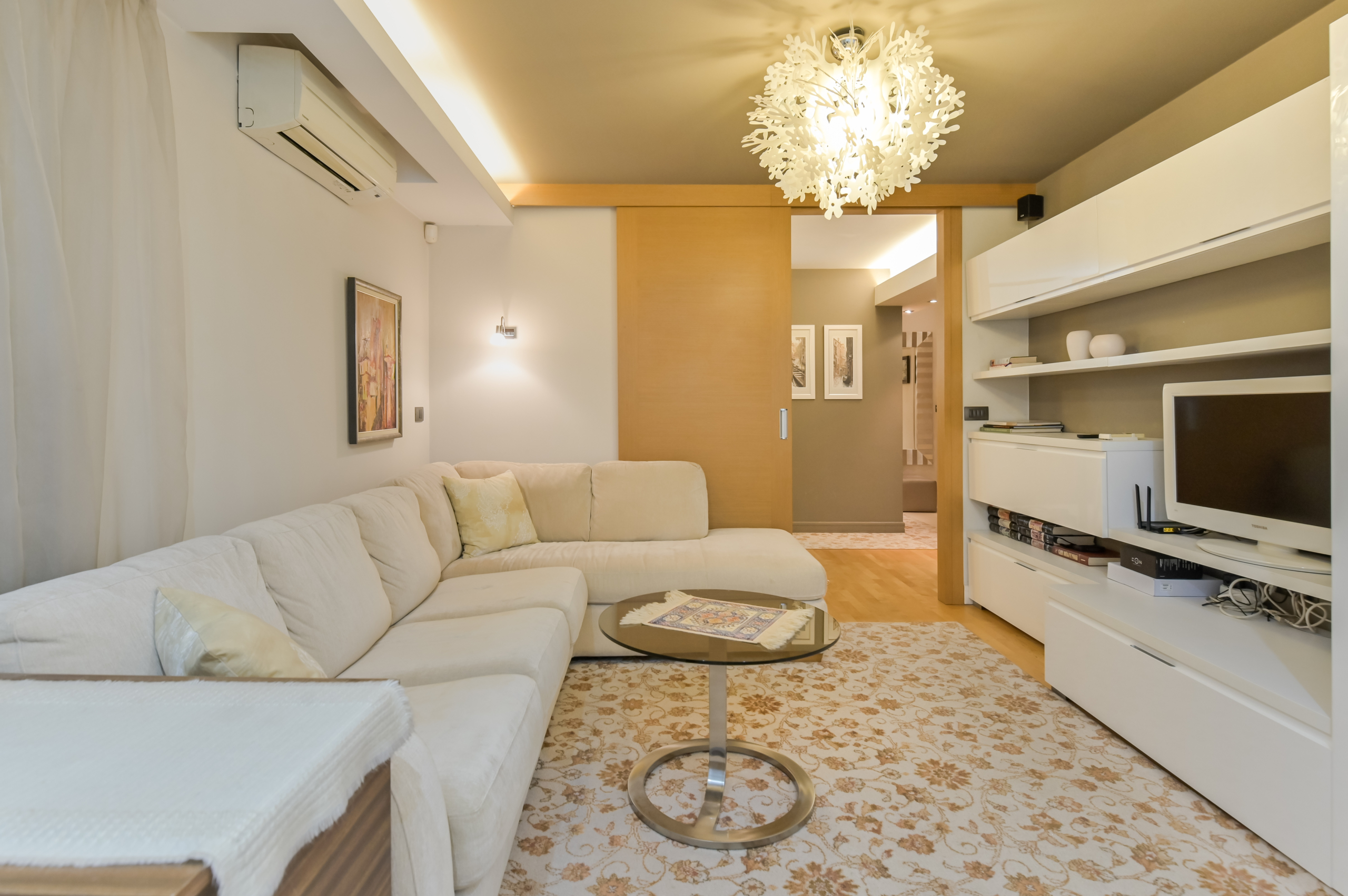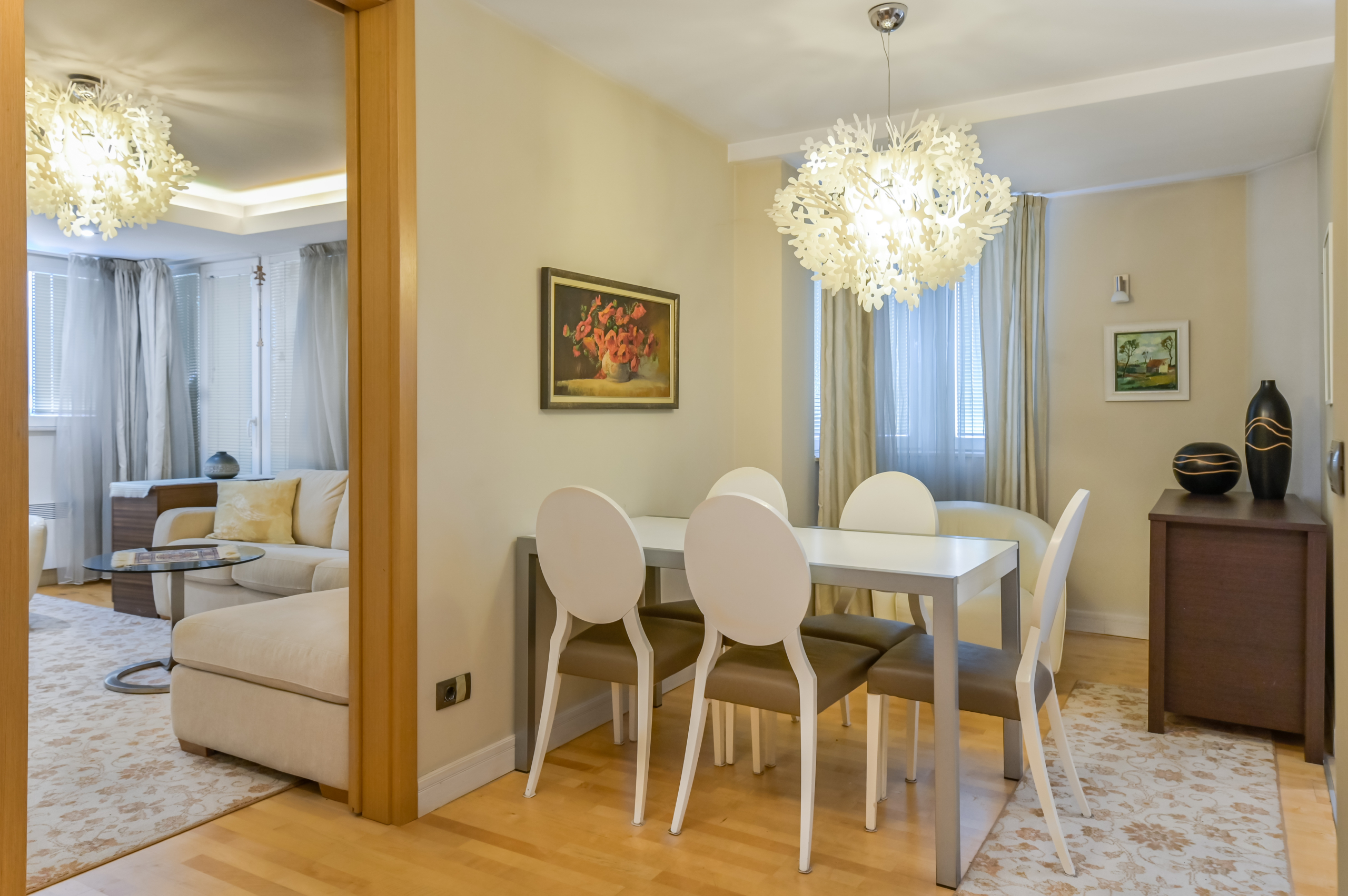 С обща площ от 65 кв.м, разпределението включва: входно антре, просторна всекидневна, отделна кухня с трапезария, уютна спалня и напълно оборудвана баня. Жилището разполага и с остъклена тераса – идеална за сутрешно кафе. Всеки детайл в интериора е подбран с вкус и внимание, за да ви създаде наповторимо усещане за домашен уют.
