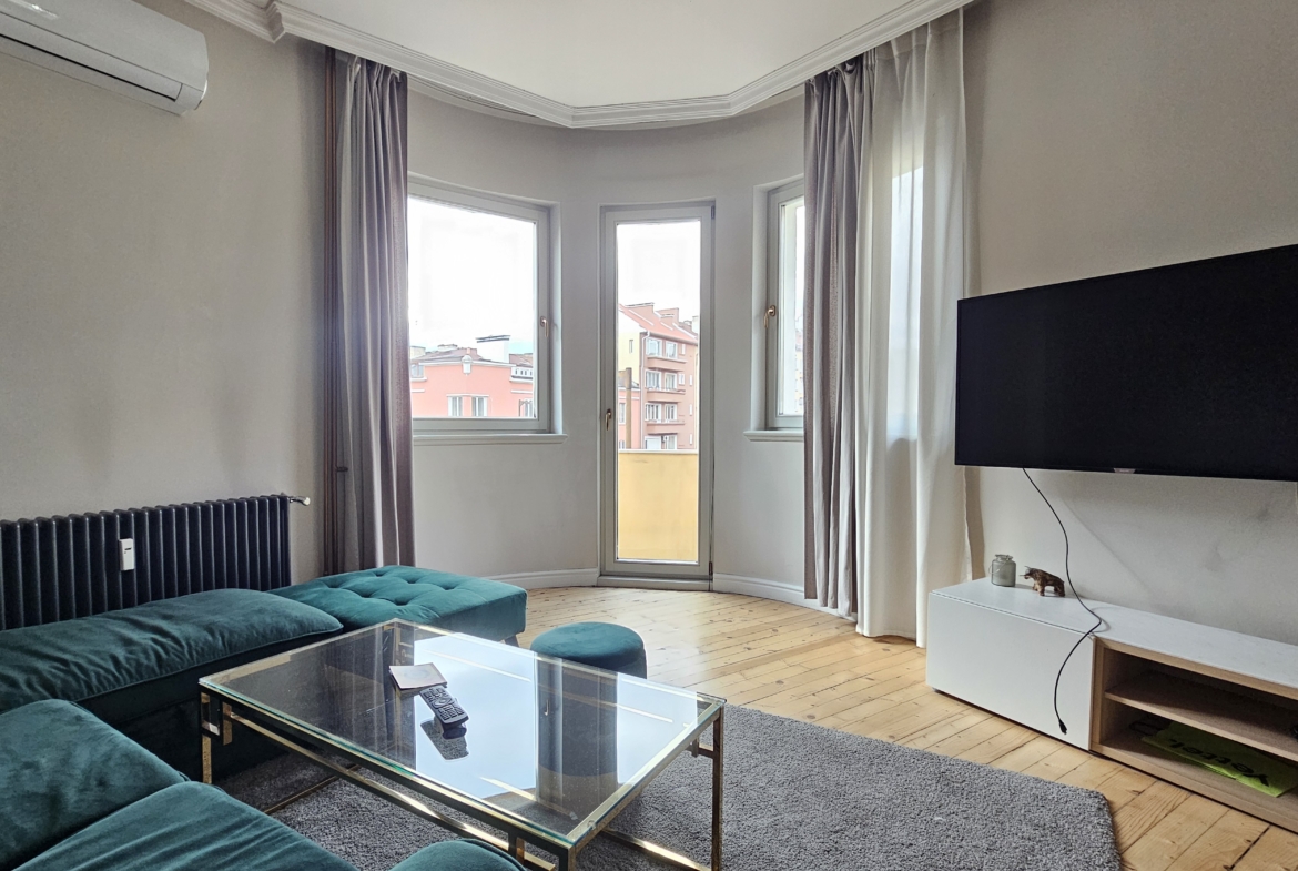 Предлагаме под наем чисто нов, просторен апартамент с площ от 90 кв.м, разположен на 3-ти етаж от 5 в добре поддържана сграда на ул. Раковска 191. Жилището разкрива красива градска гледка и впечатлява с модерно изпълнение и високо качество на материалите.