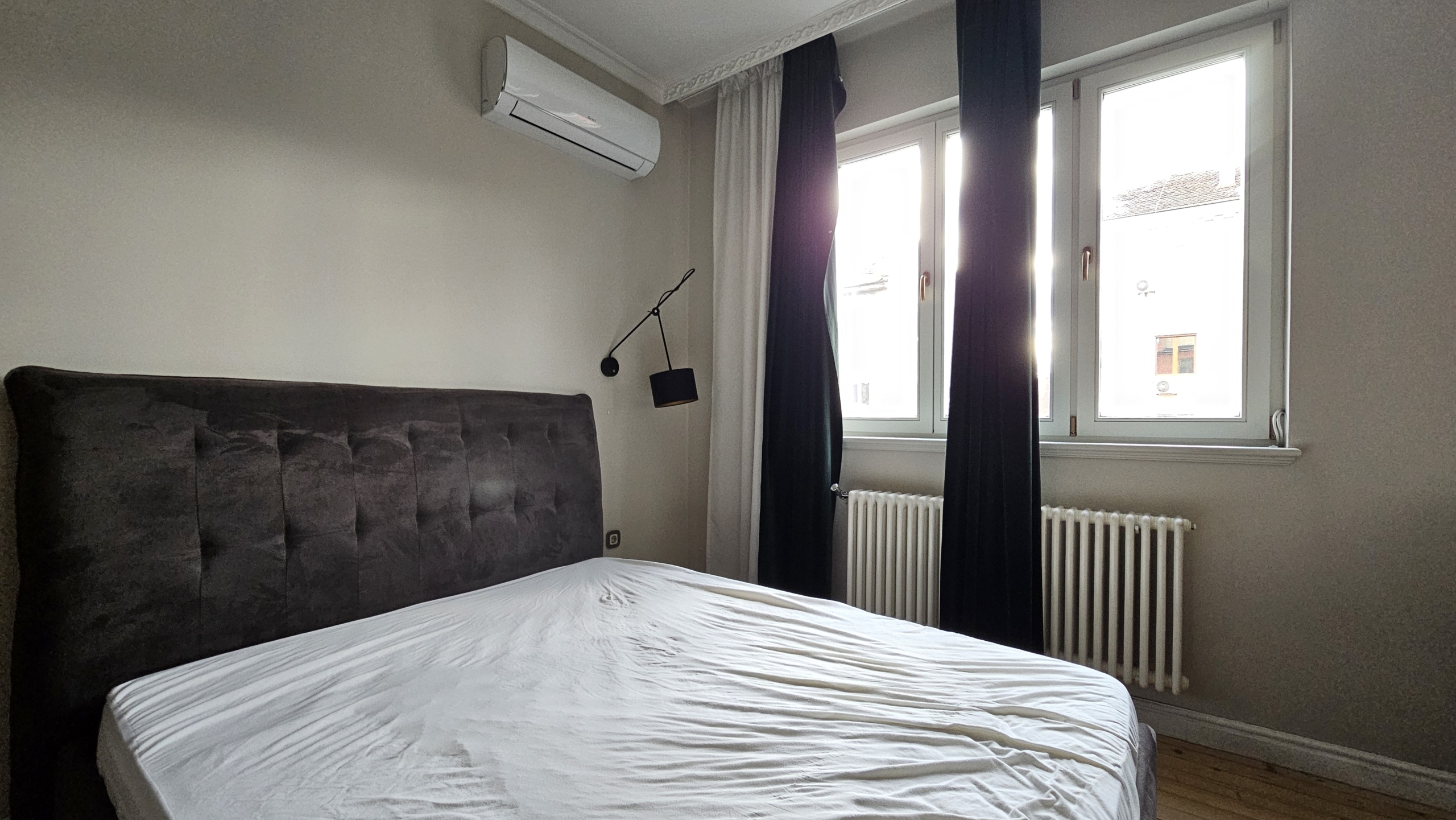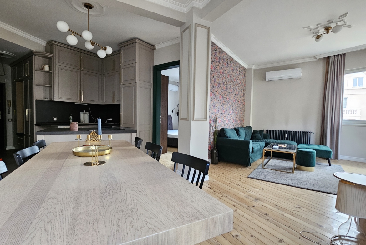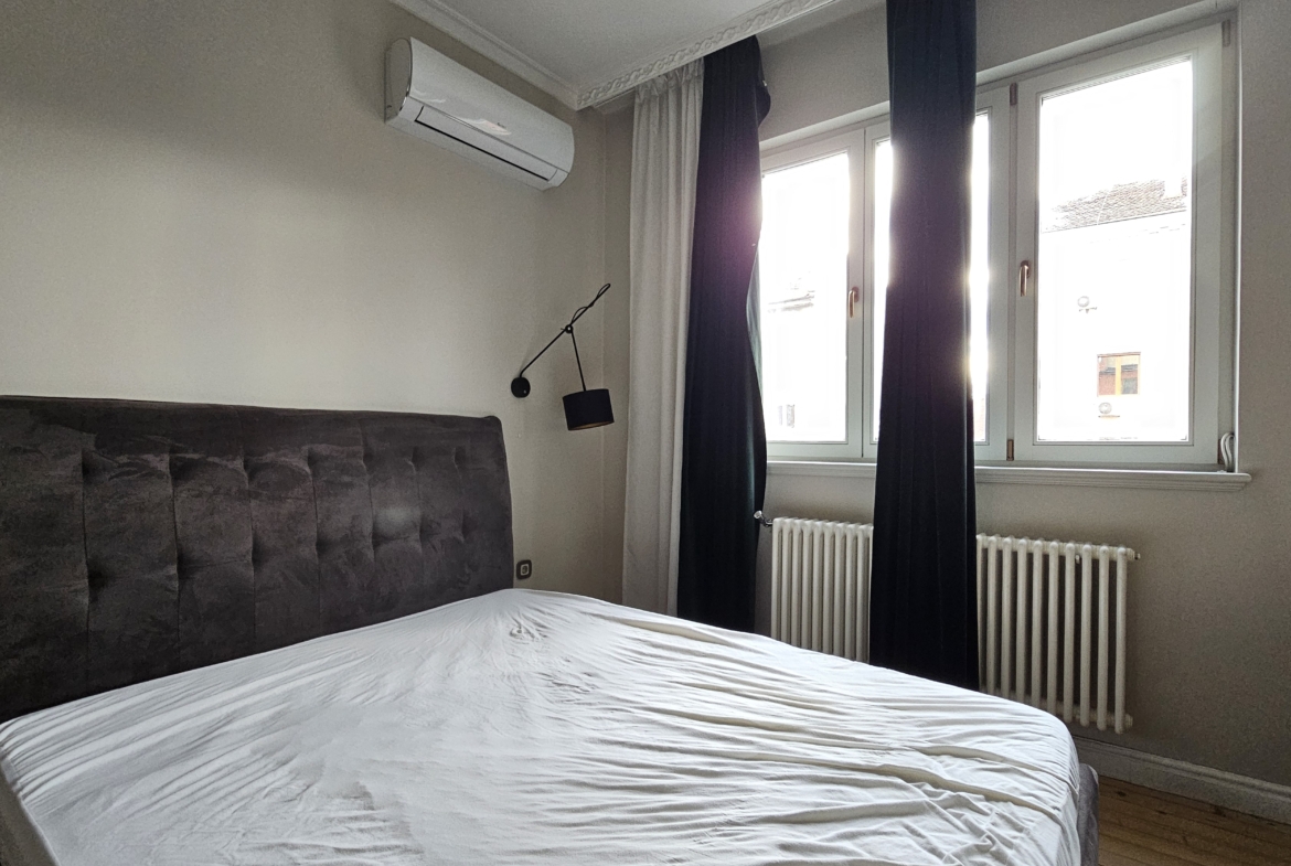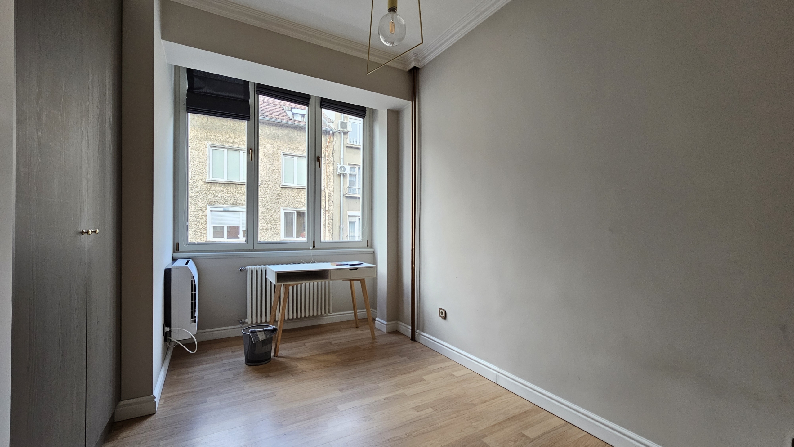 Апартаментът е с висококачествена дограма, осигуряваща отлична шумо- и топлоизолация, което гарантира комфорт и тишина въпреки централната локация. Имотът е чисто нов и очаква първите си наематели. Разпределението включва просторна мастър спалня, голям хол с трапезария и кухненски бокс с излаз към тераса, допълнителна спалня, която е подходяща за офис, както и една самостоятелна баня.