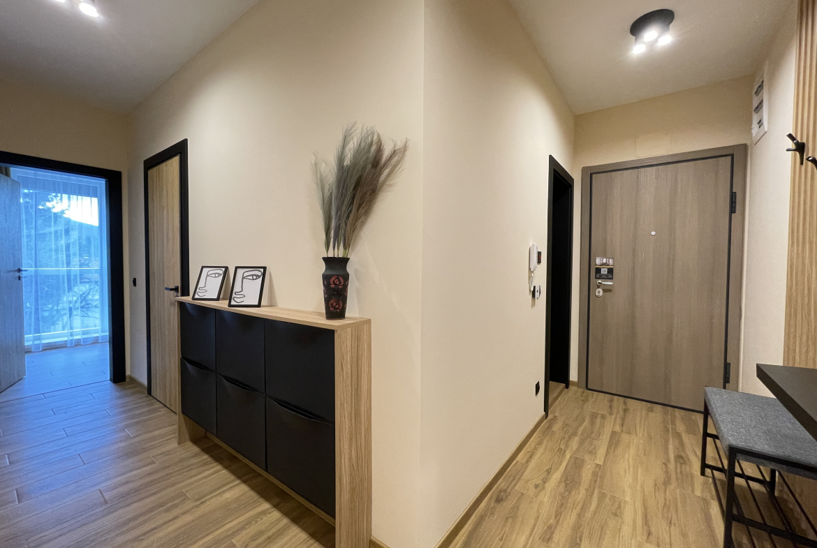 Модерен и напълно обзаведен апартамент с паркомясто, включено в наемната цена в нова сграда в ж.к. Симеоново-Север Витоша. Апартаментът е с площ от 91 кв.м. и следното разпределение: