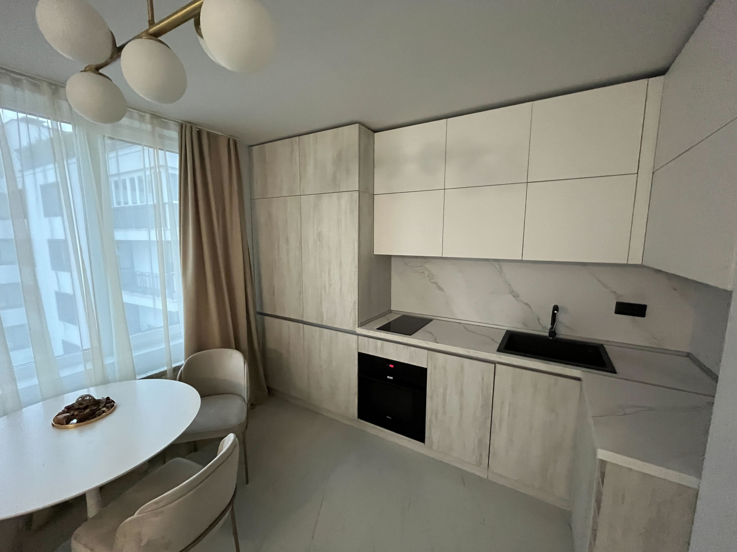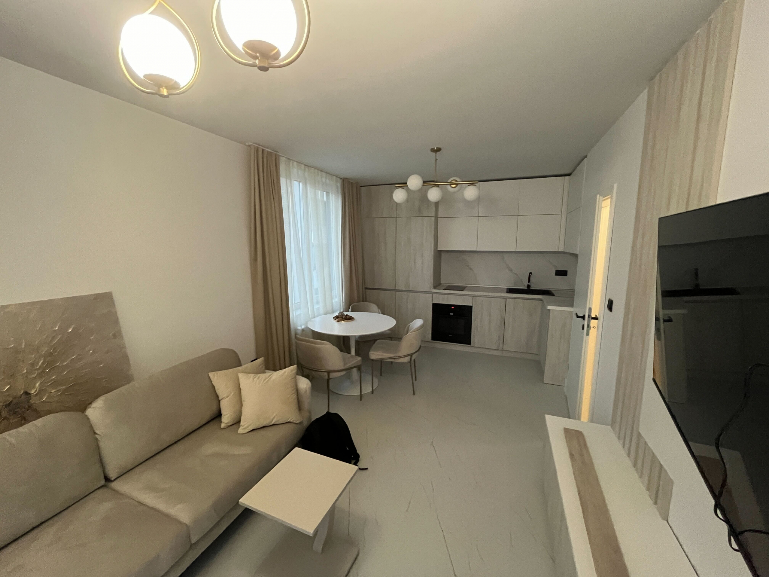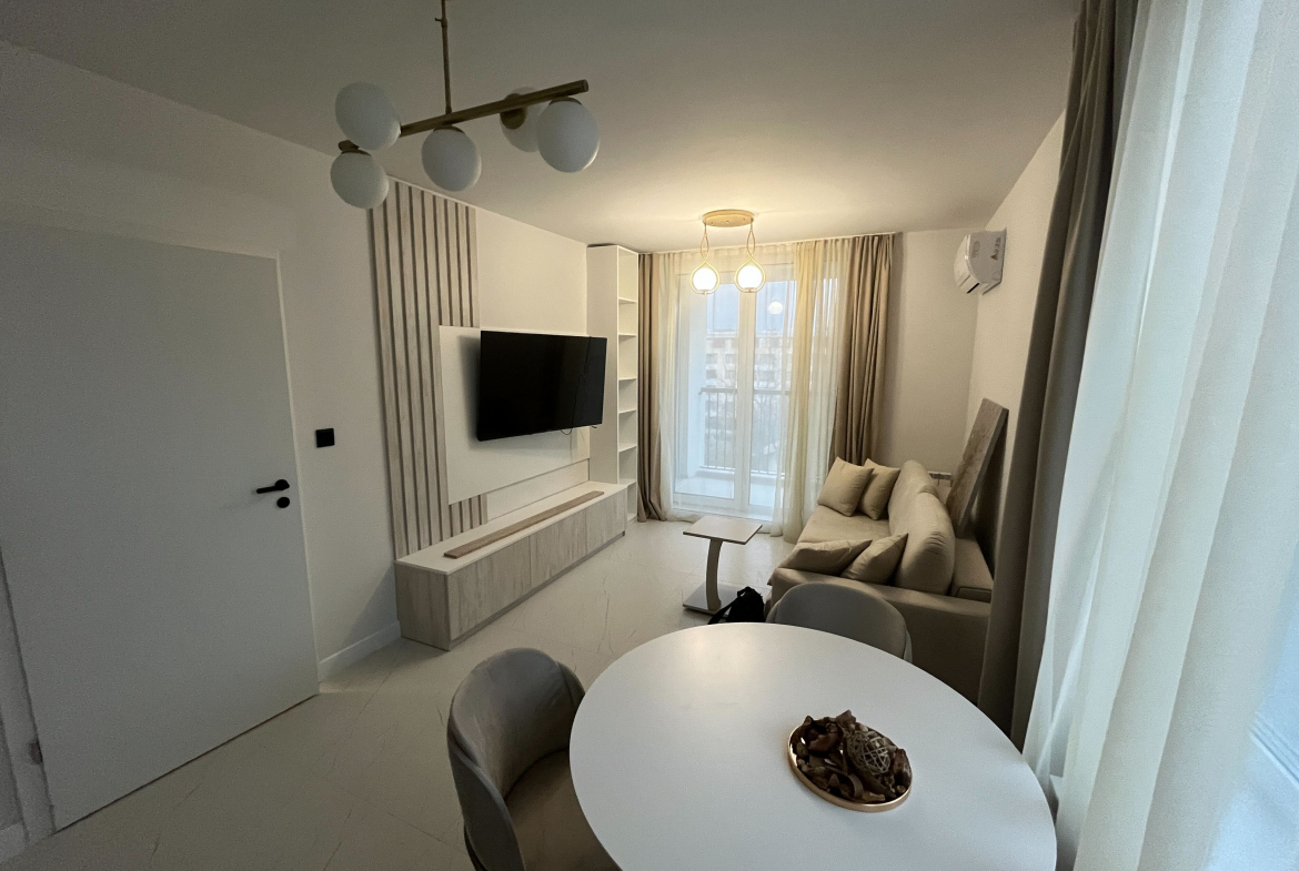 Стилен двустаен апартамент в нов комплекс, съчетаващ комфорт, практичност и лукс. Жилището разполага с площ от 60кв.м., функционално разпределена на входно антре,кухня с трапезария,спалня,санитарен възел и балкон, откриващ зелена гледка. Изцяло новообзаведен с внимание към всеки детайл!