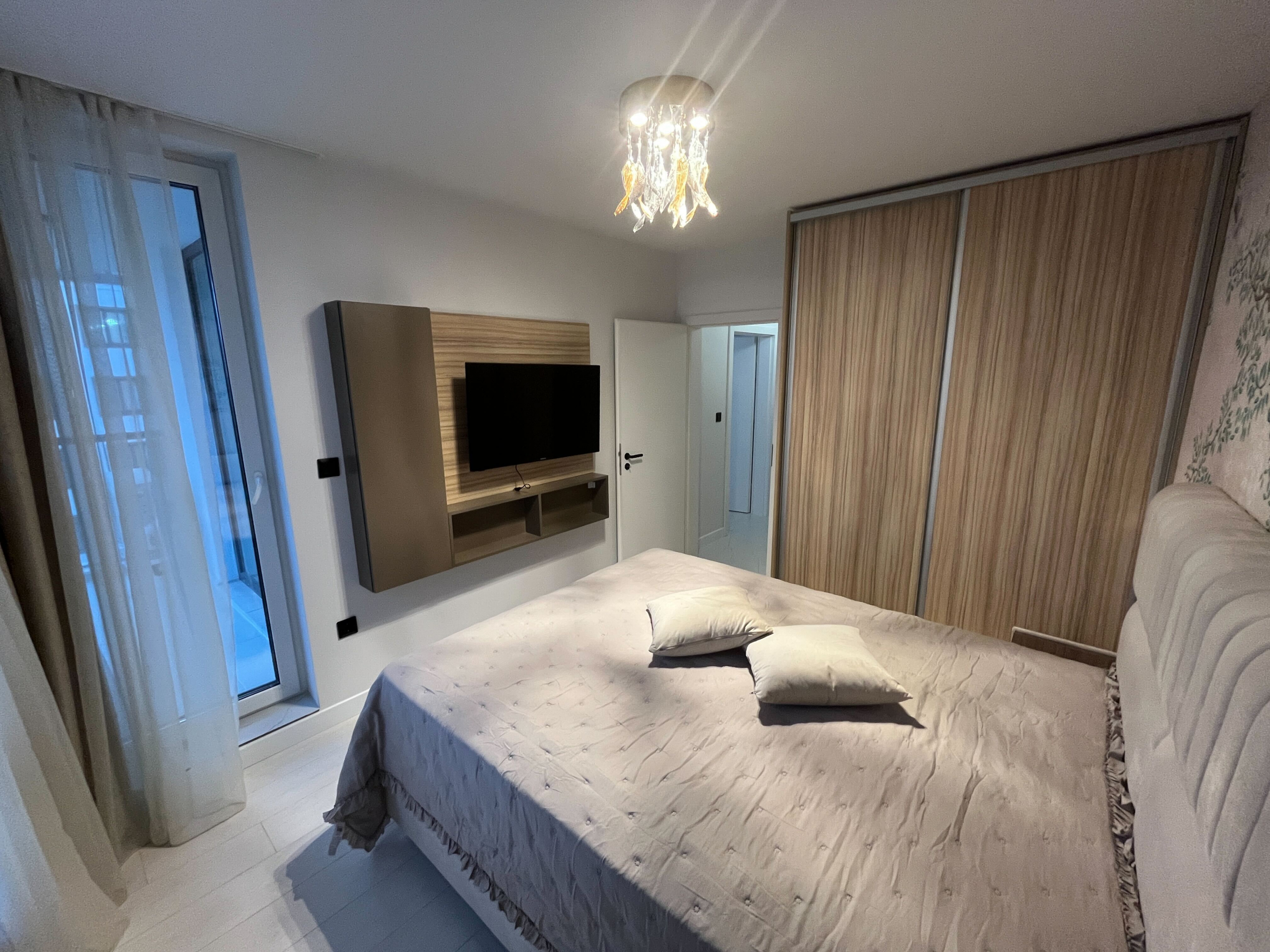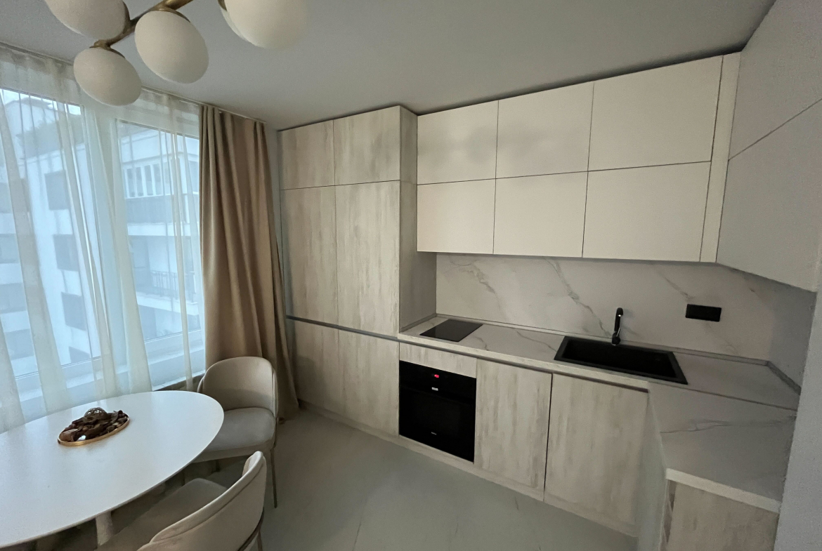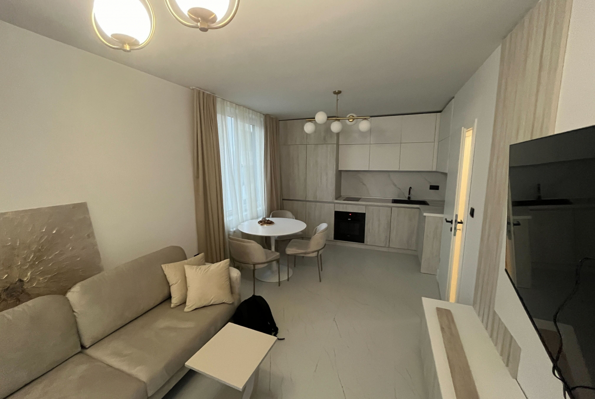 Стилен двустаен апартамент в нов комплекс, съчетаващ комфорт, практичност и лукс. Жилището разполага с площ от 60кв.м., функционално разпределена на входно антре,кухня с трапезария,спалня,санитарен възел и балкон, откриващ зелена гледка. Изцяло новообзаведен с внимание към всеки детайл!