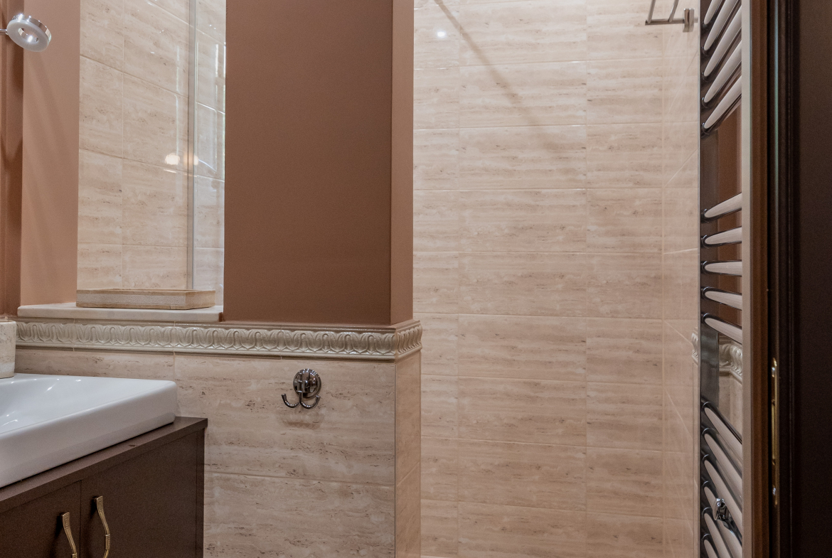 Страхотен напълно обзаведен тристаен апартамент с модерен дизайн, разположен в тиха и спокойна локация в центъра на града. Апартаментът е с площ от 92 квадратни метра и разполага със следното разпределение: