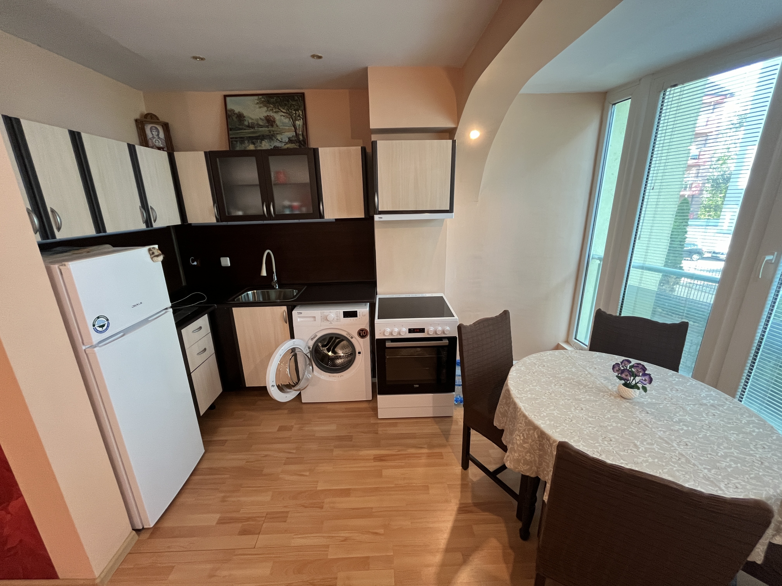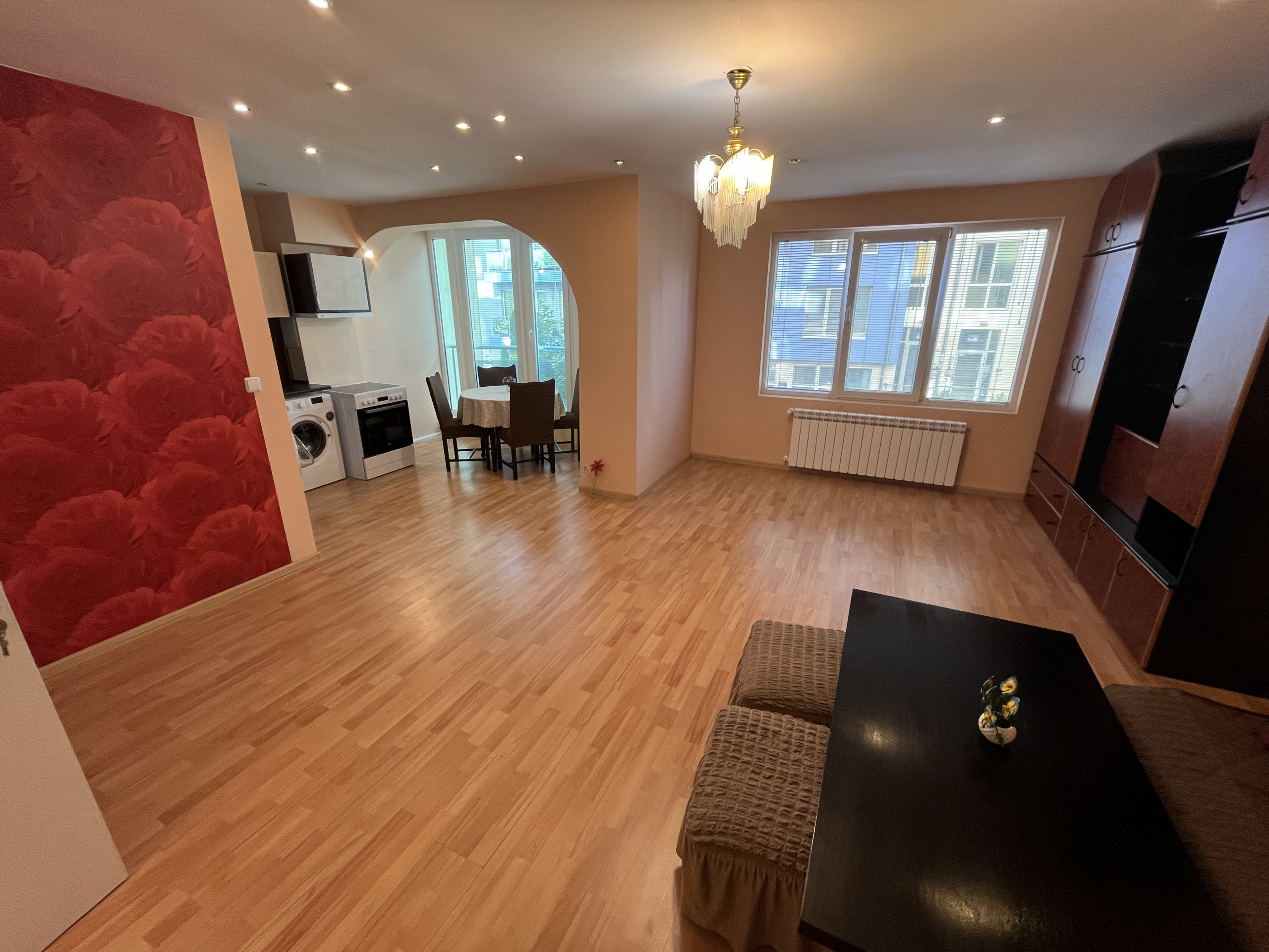 Слънчев и просторен тристаен апартамент на комуникативна локация в ж.к. Полигона. Апартаментът разполага с площ от 105 кв.м. и се състои от дълъг коридор, просторна всекидневна, оборудвана кухня с изцяло нови електроуреди, две спални, една баня с тоалетна, допълнително WC и широка тераса с кът за отдих. Напълно обзаведен, готов за незабавно нанасяне, с отлична изолация, осигуряващи комфорт и топлина. В нова сграда, с поддържани общи части и ТЕЦ отопление! Свободно паркиране пред блока.