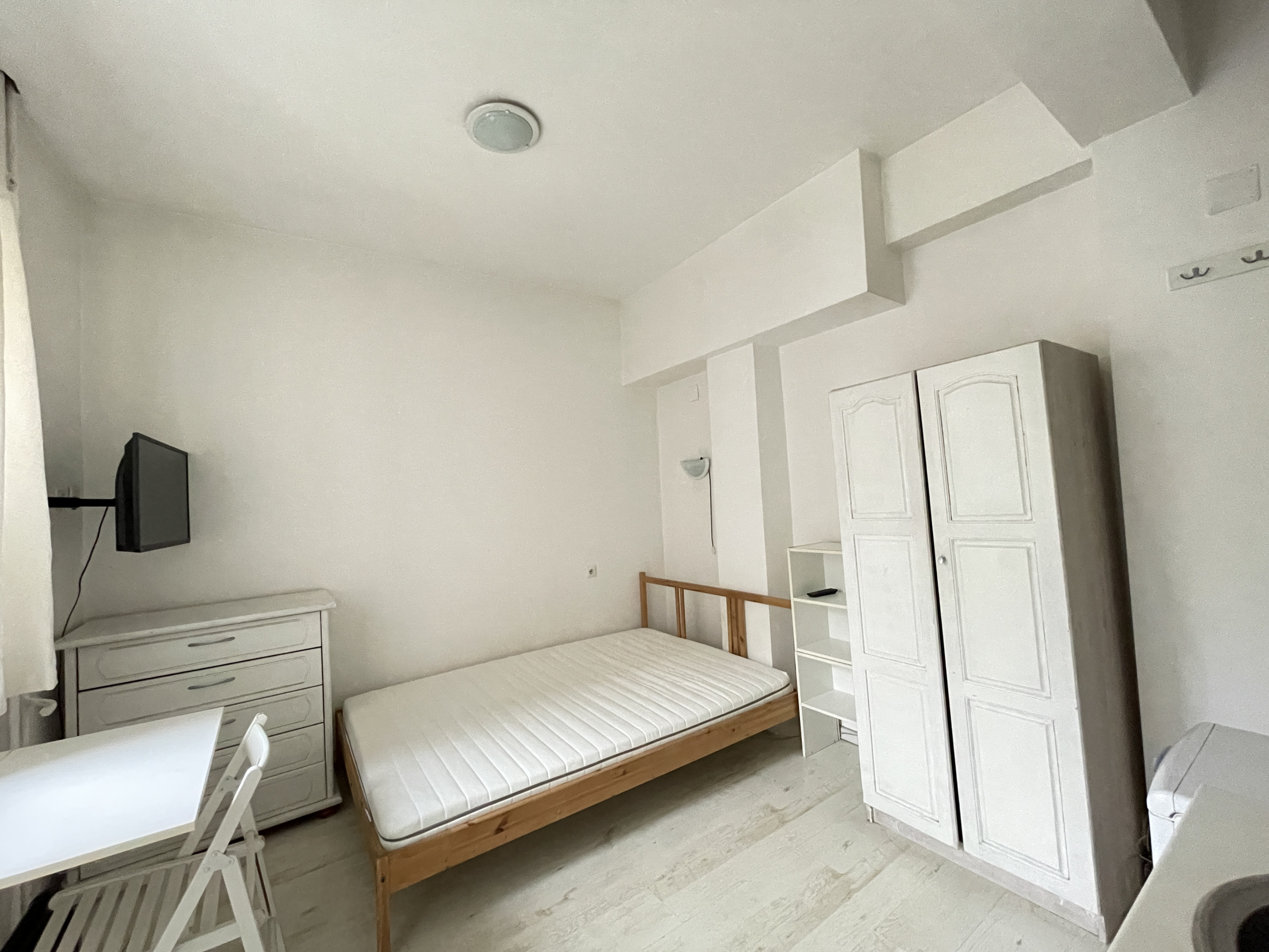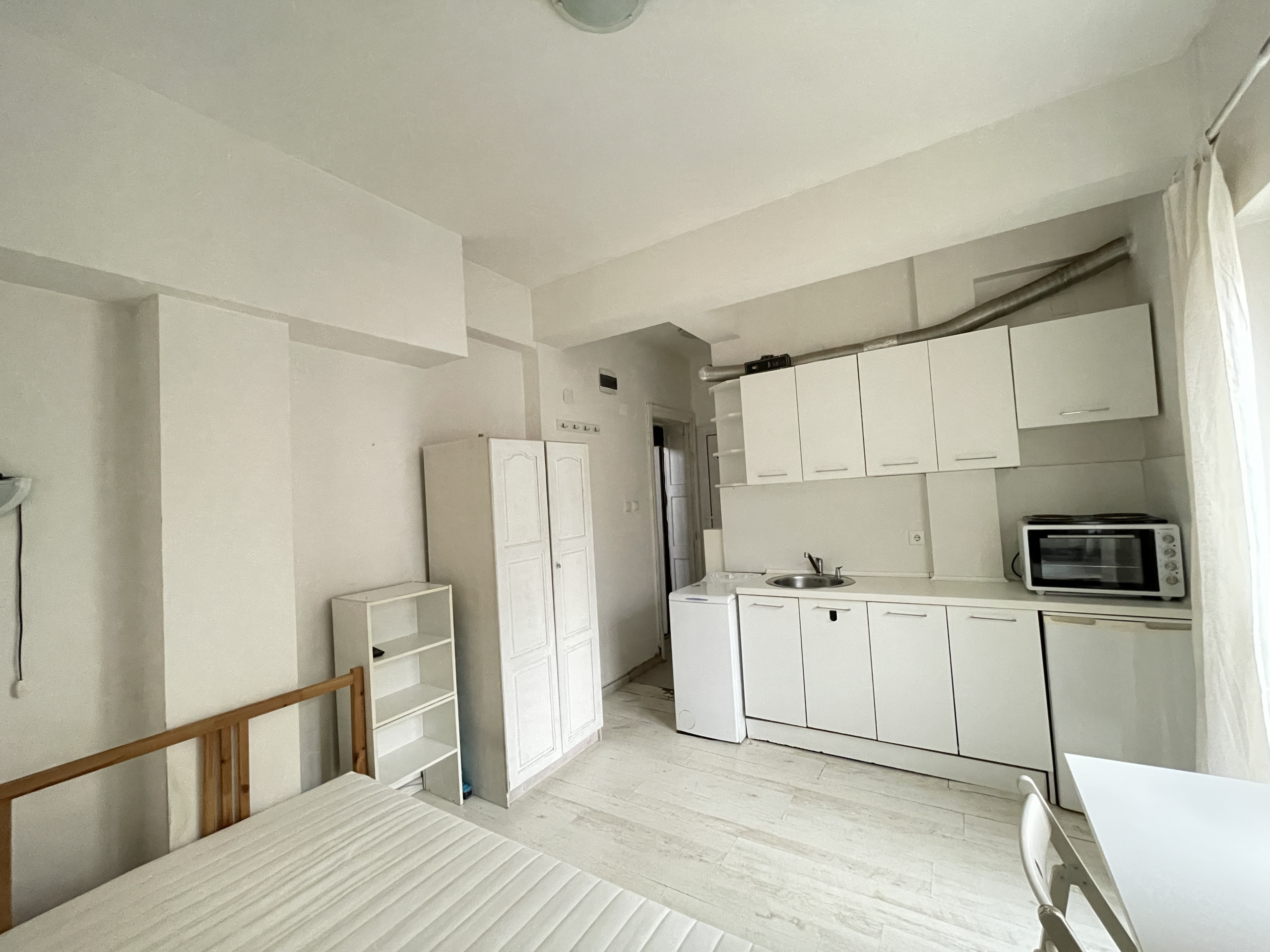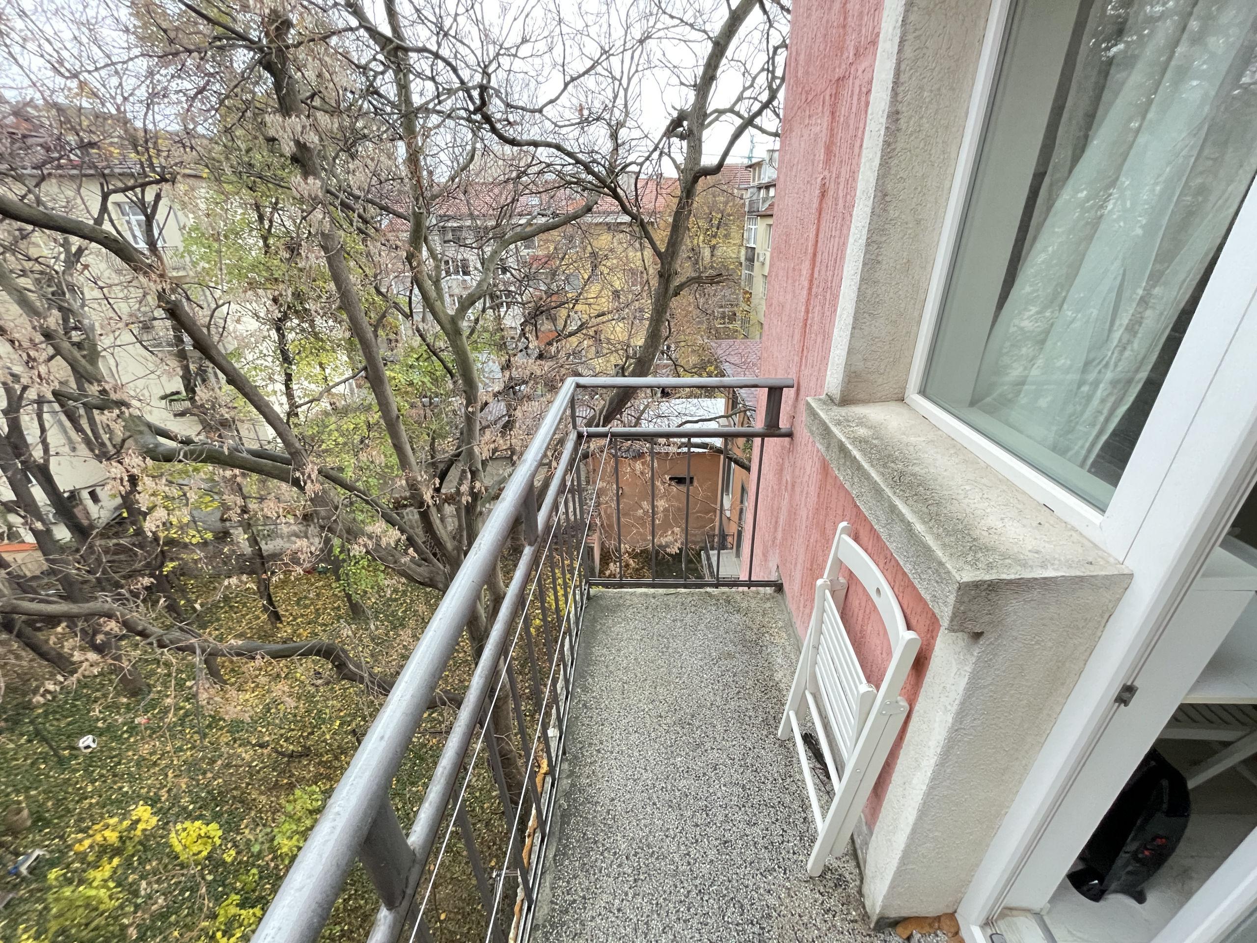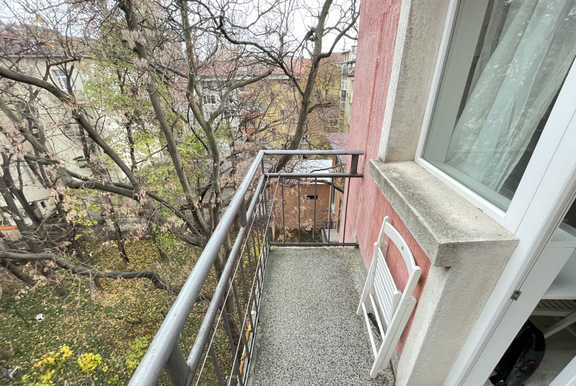Прекрасен светъл едностаен апартамент-студио с отлична локация в идеалния център на София. Апартаментът е с площ от 20 кв.м. и предлага функционално разпределение на пространството: уютен спален кът, изцяло оборудван кухненски бокс, балкон, баня с тоалетна. Южно изложение!